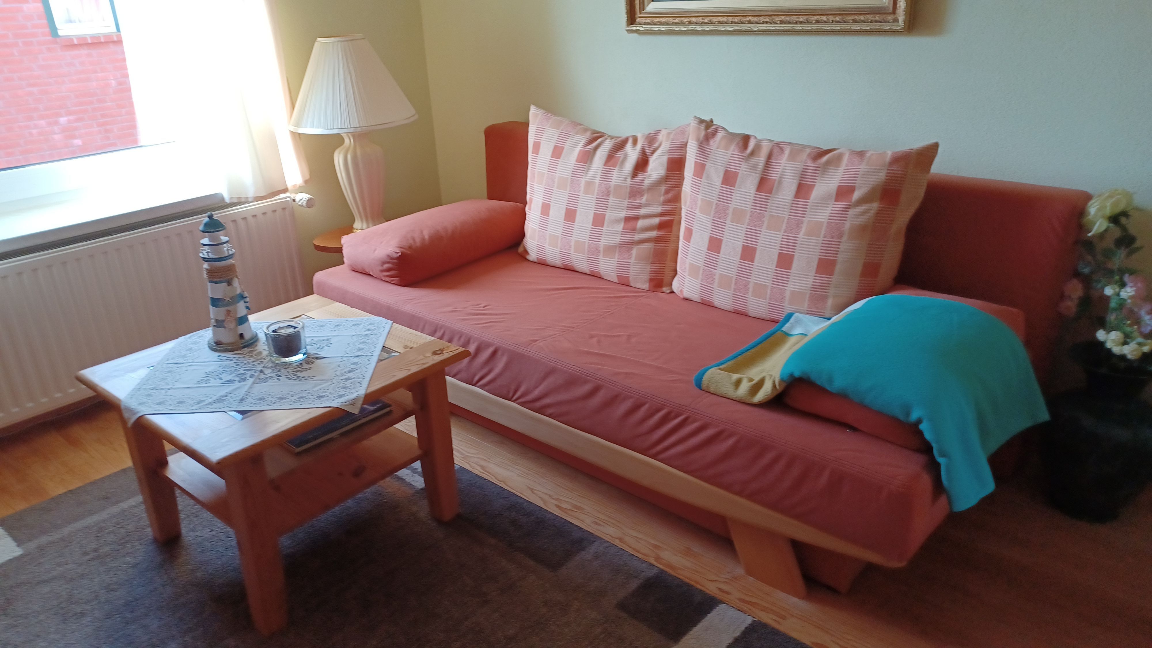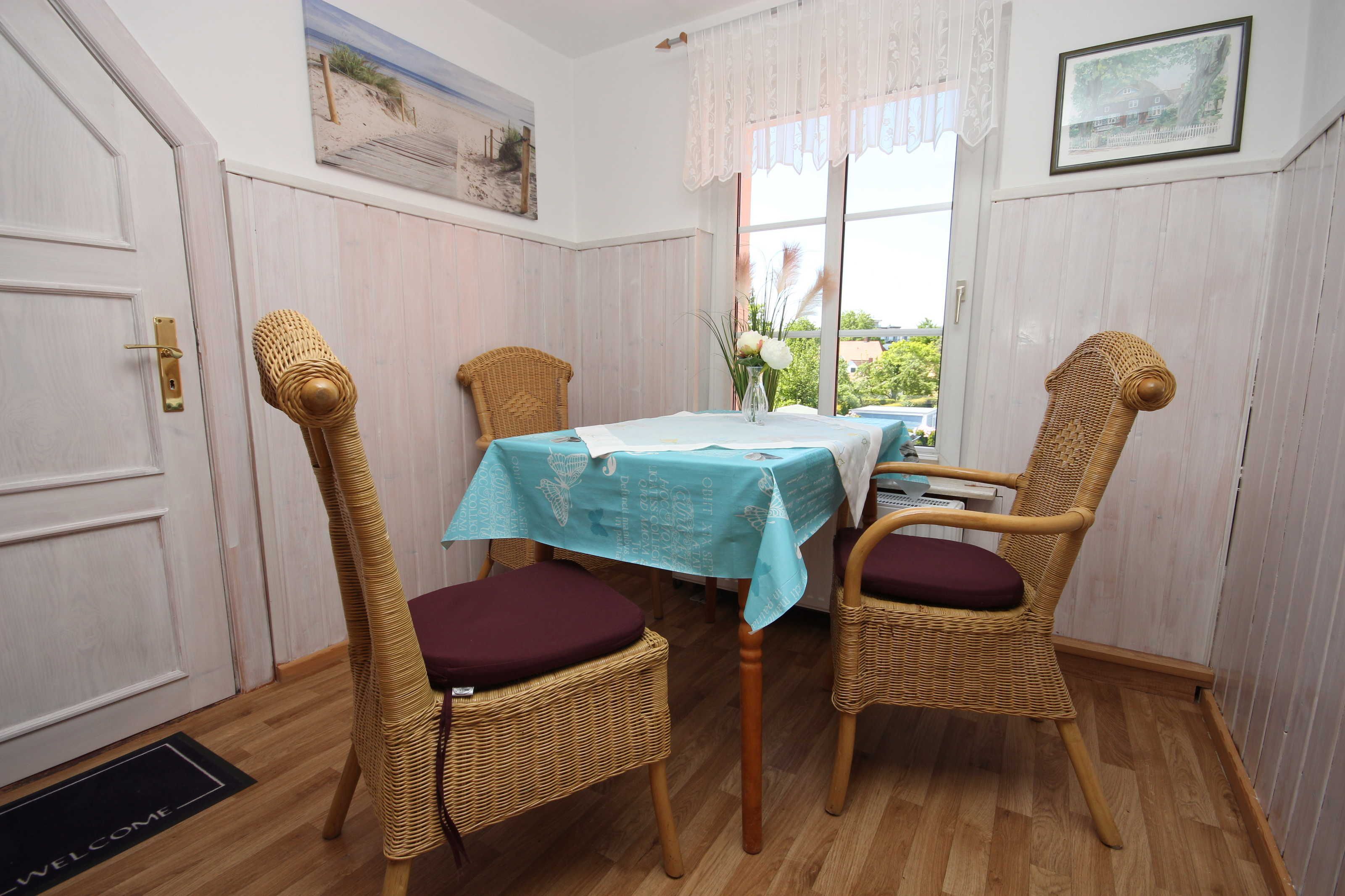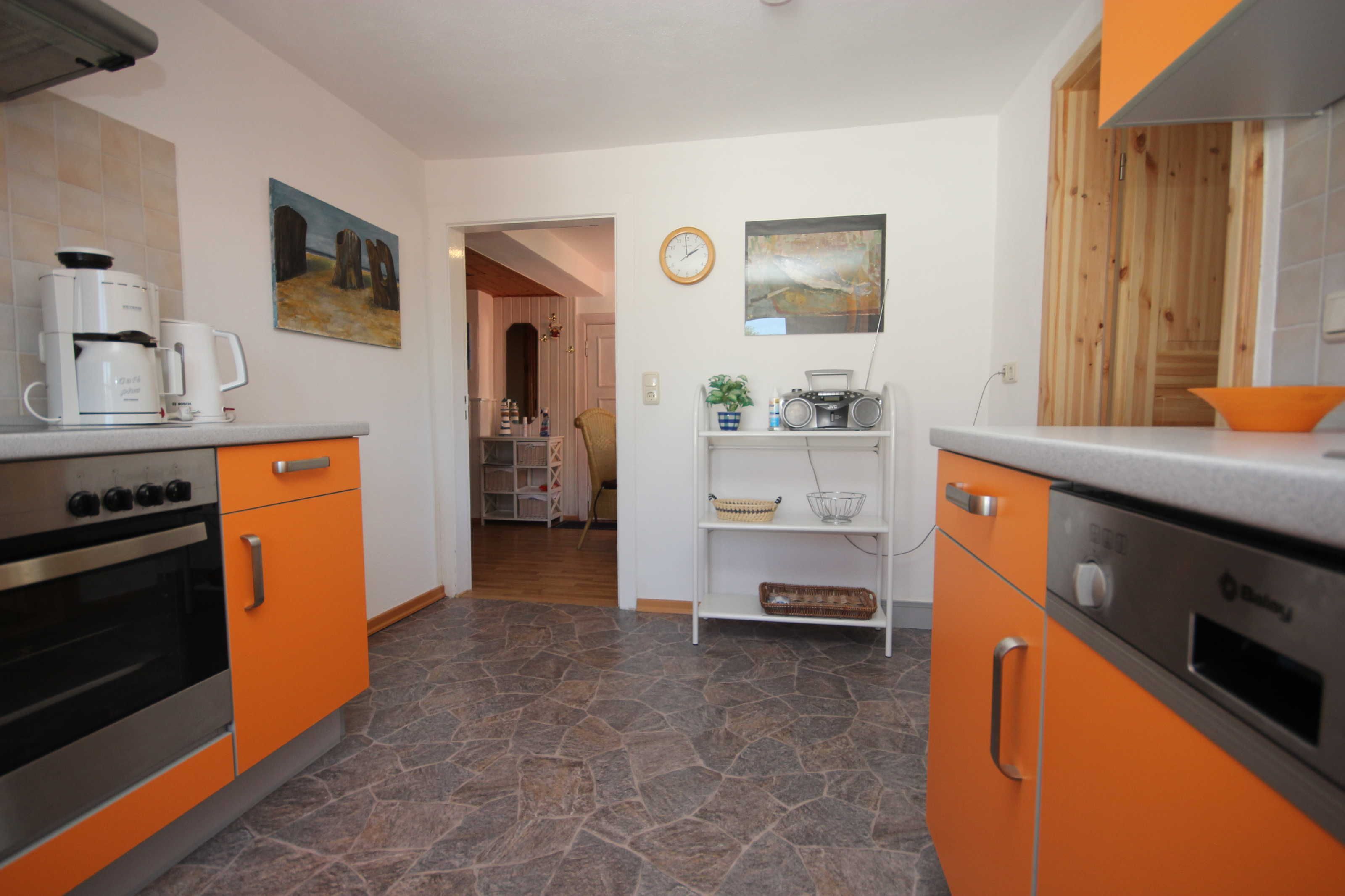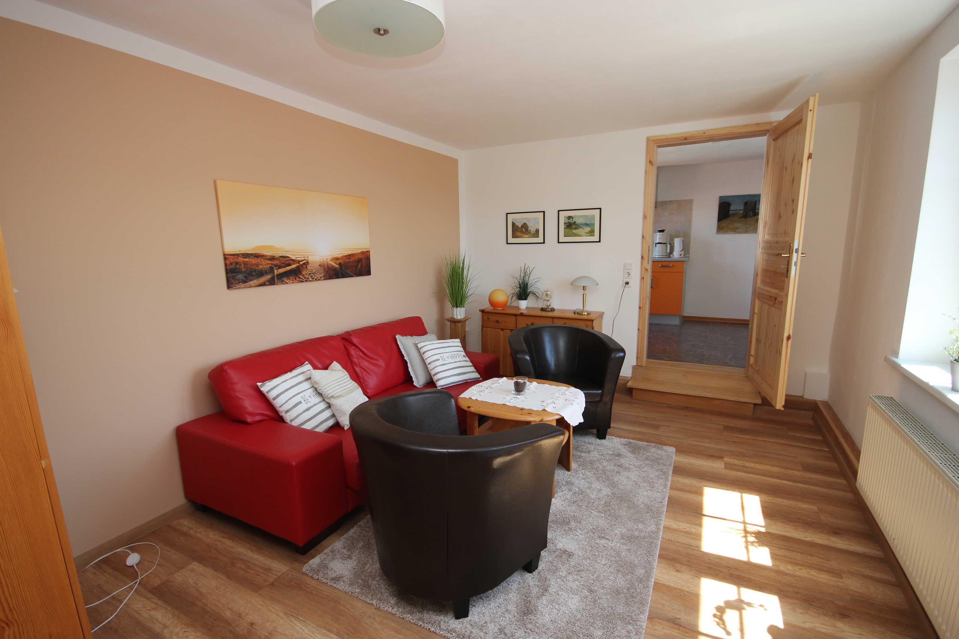 Der kleine Hafen und das Zentrum , sowie den feinsandigen Strand erreichen Sie in ca.10 Gehminuten Die Ferienwohnung liegt im 1. Obergeschoss. Das Wohnzimmer verfügt über eine gemütliche Couch und SAT- TV. Im Schlafzimmer befindet sich ein Doppelbett 180 x 200 cm (mit getrennten Matratzen). Im Lesezimmer ist eine Schlafcouch. Die Küche ist ausgestattet mit Geschirrspüler, Kaffeemaschine, Toaster, Wasserkocher, Herd mit Cerankochfeld und Backofen, Ein kleiner Essplatz lädt zum frühstücken ein. Das moderne Bad hat eine ebenerdige Dusche. Die Fliegengaze im Wohn- und Schlafzimmer halten unangenehme Mücken fern. Das Haus verfügt über einen kostenlosen WLAN- Anschluß. Die Wohnung wird inclusive Bettwäsche übergeben, Handtücher können in der Zimmervermittlung für 7,00 € pro Person (1 Badetuch, 1 Handtuch) dazugebucht werden.