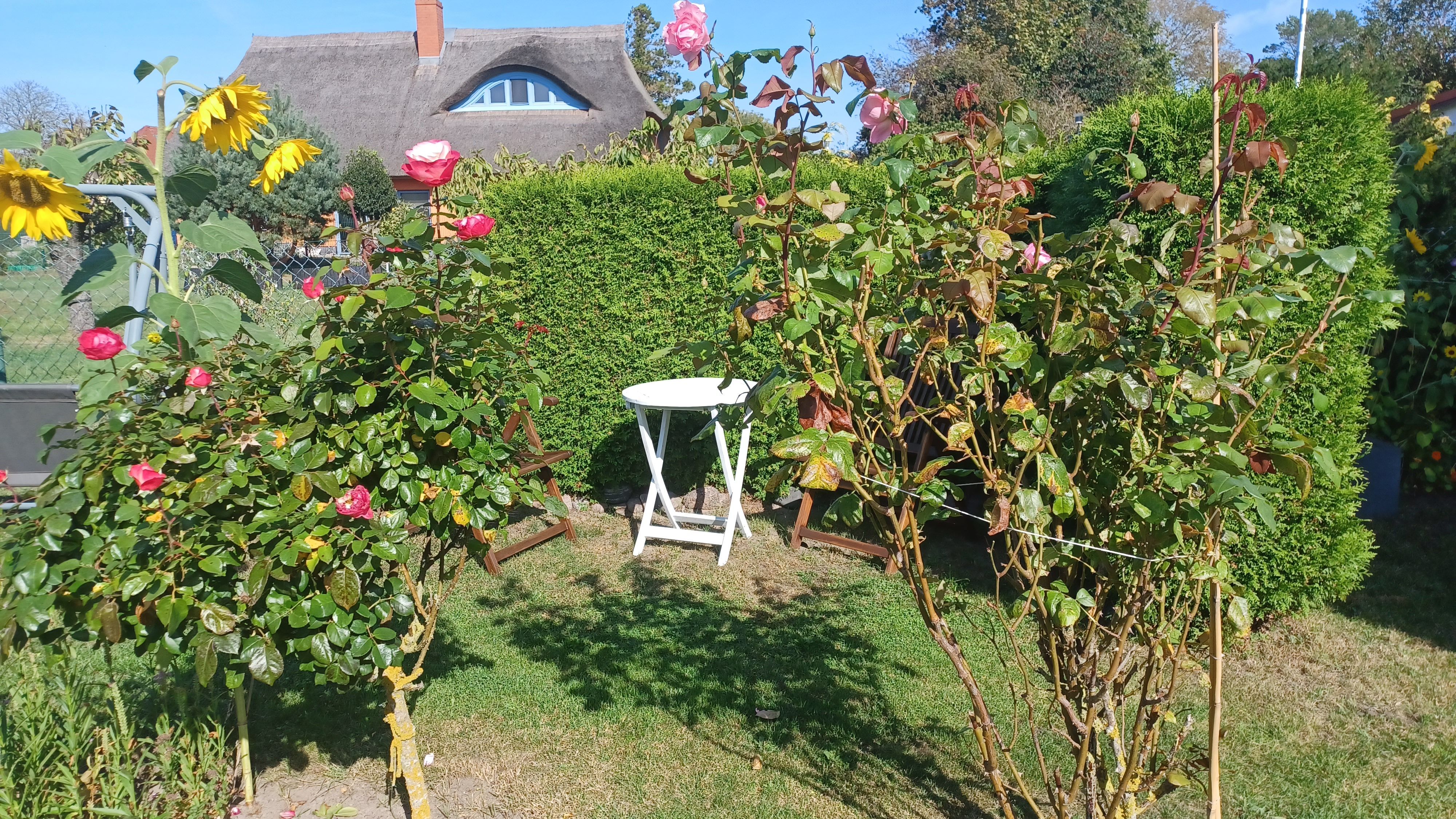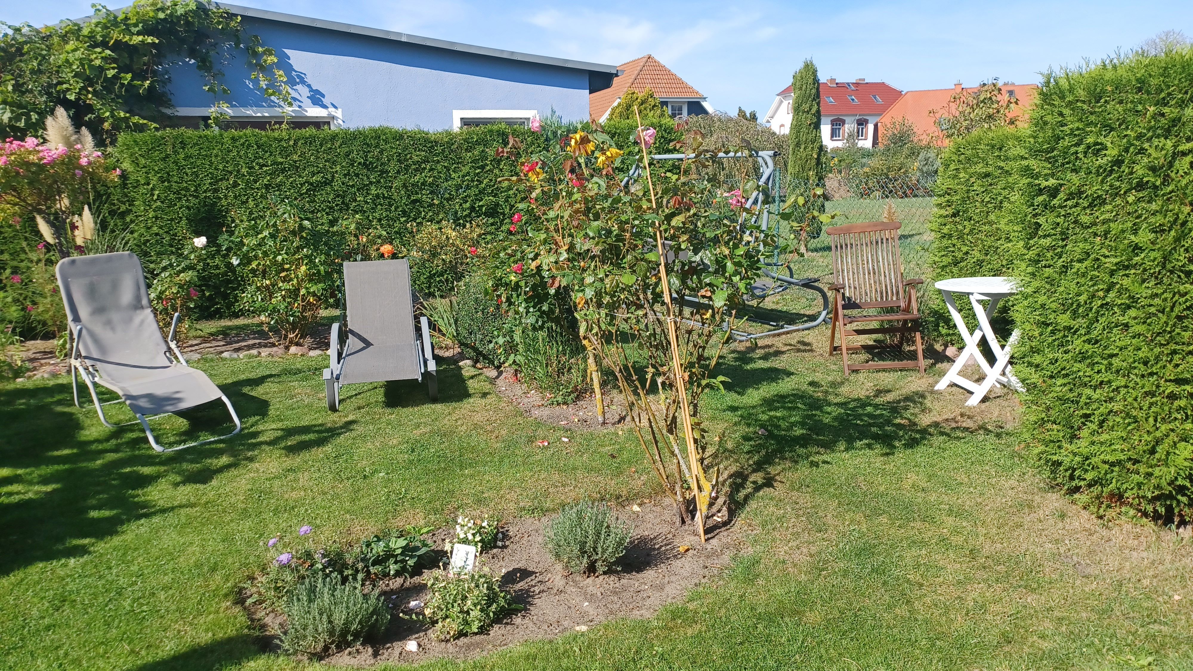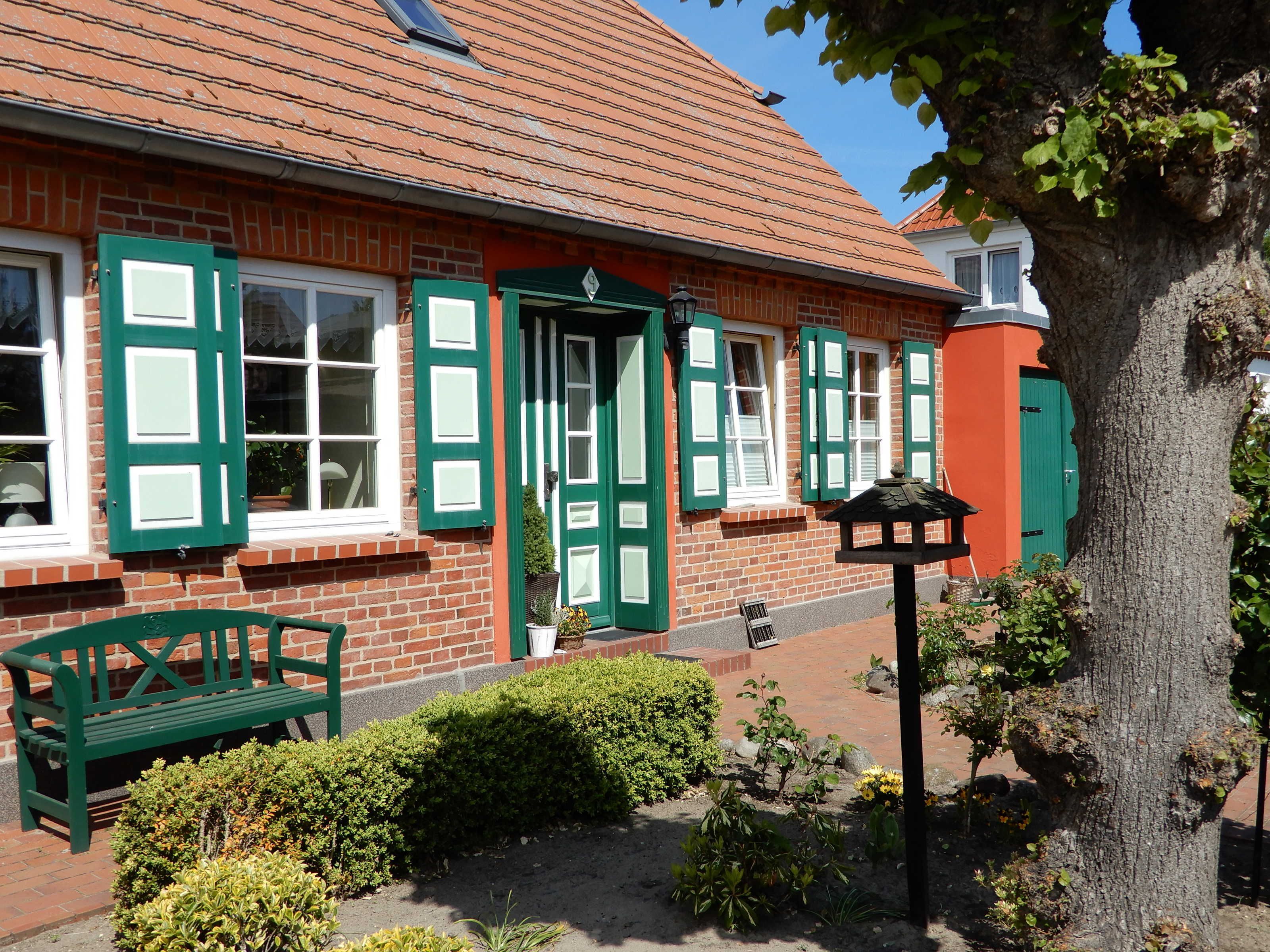 gemütliche Ferienwohnung in ruhiger Ortslage in einem alten Kapitänshauses. Die Sitzecke befindet sich im Garten und lädt auch am Abend zu einem gemütlichen Ausklang des Tages mit einem guten Glas Wein ein.