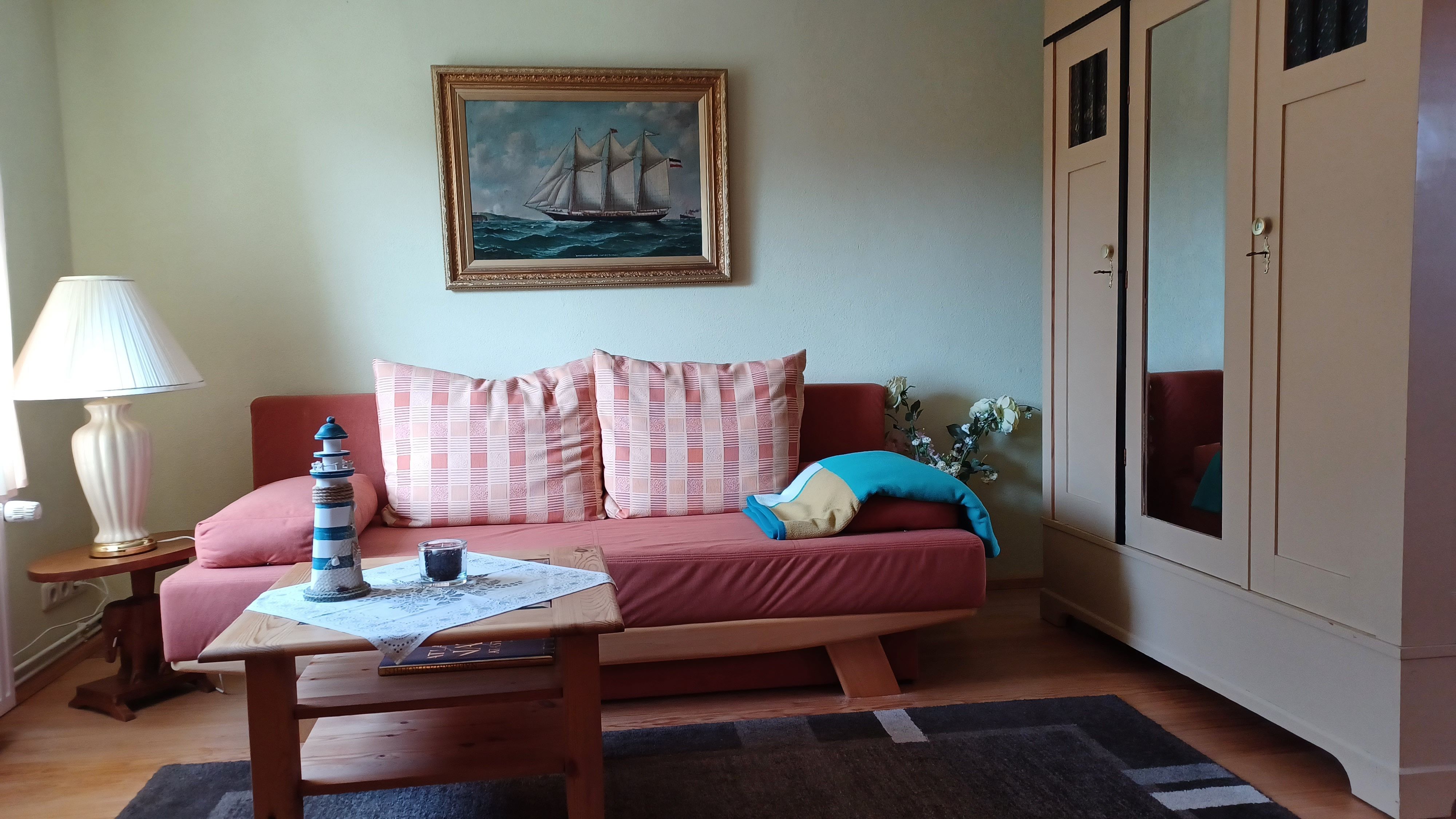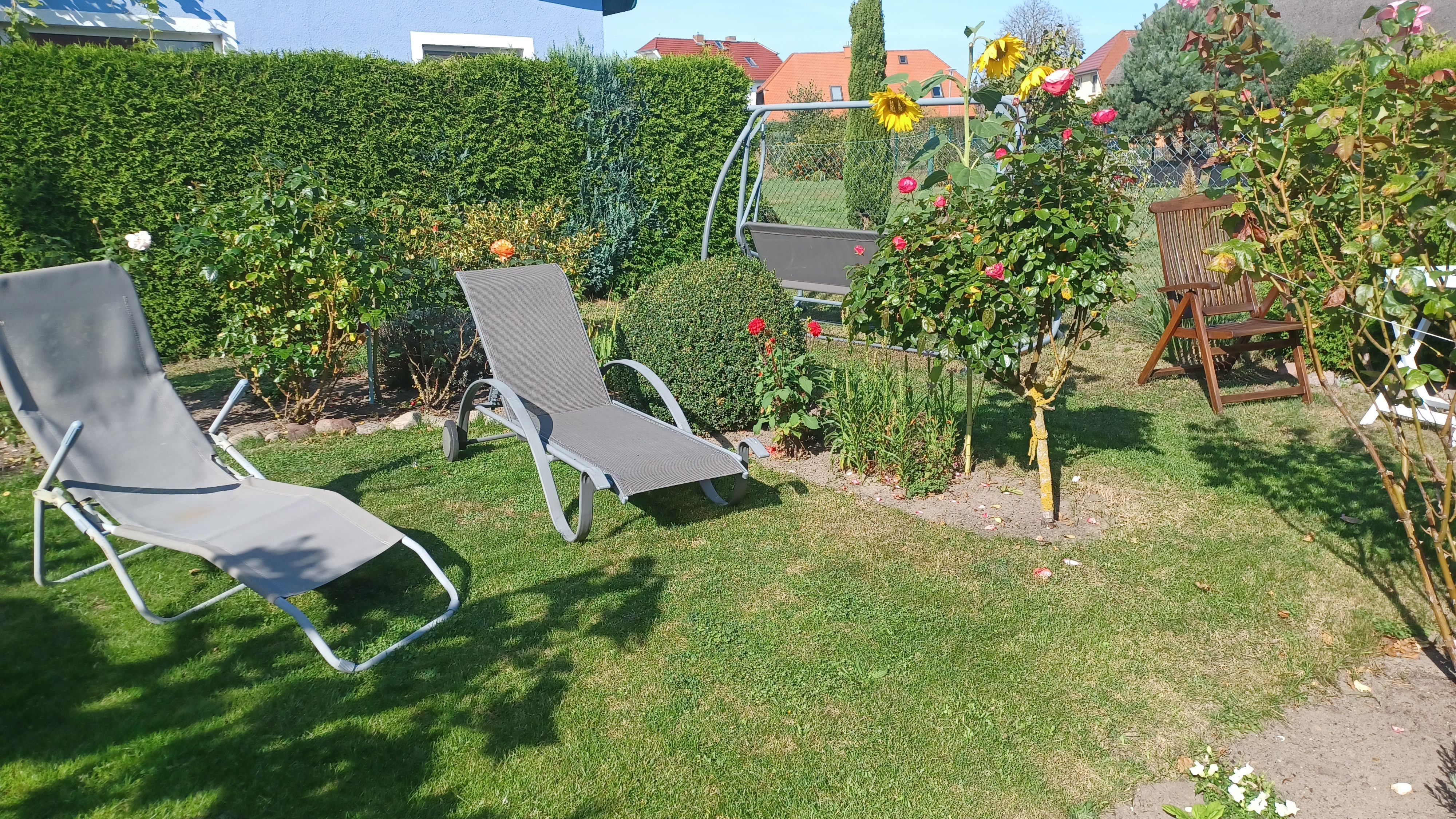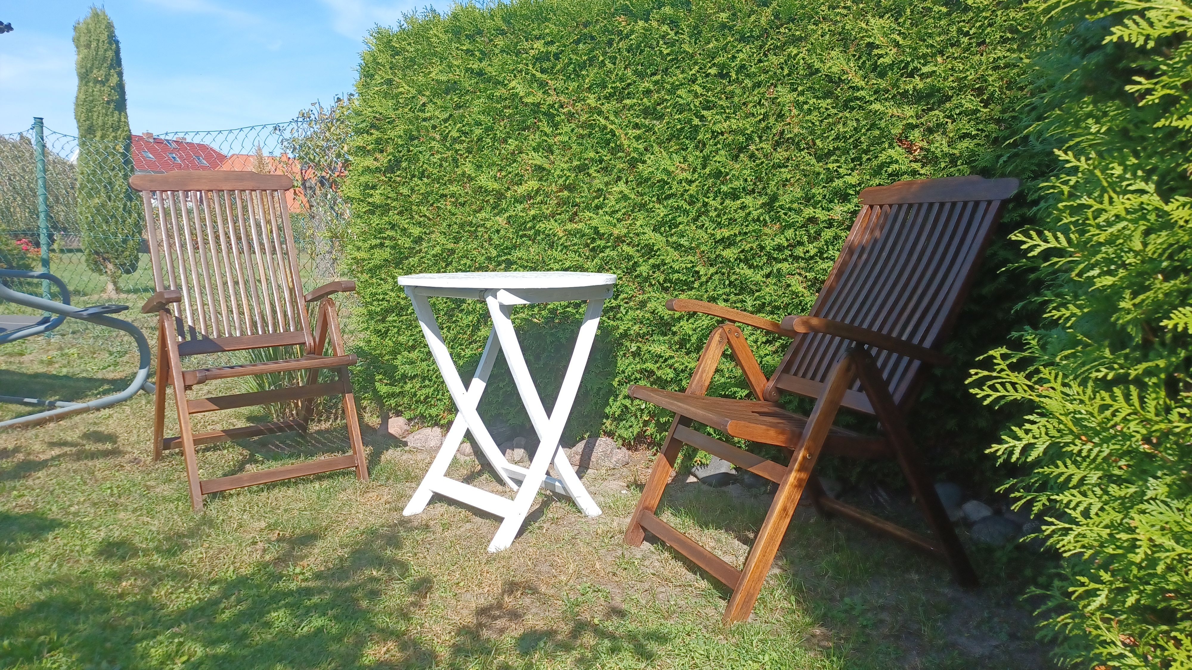 gemütliche Ferienwohnung in ruhiger Ortslage in einem alten Kapitänshauses. Die Sitzecke befindet sich im Garten und lädt auch am Abend zu einem gemütlichen Ausklang des Tages mit einem guten Glas Wein ein.