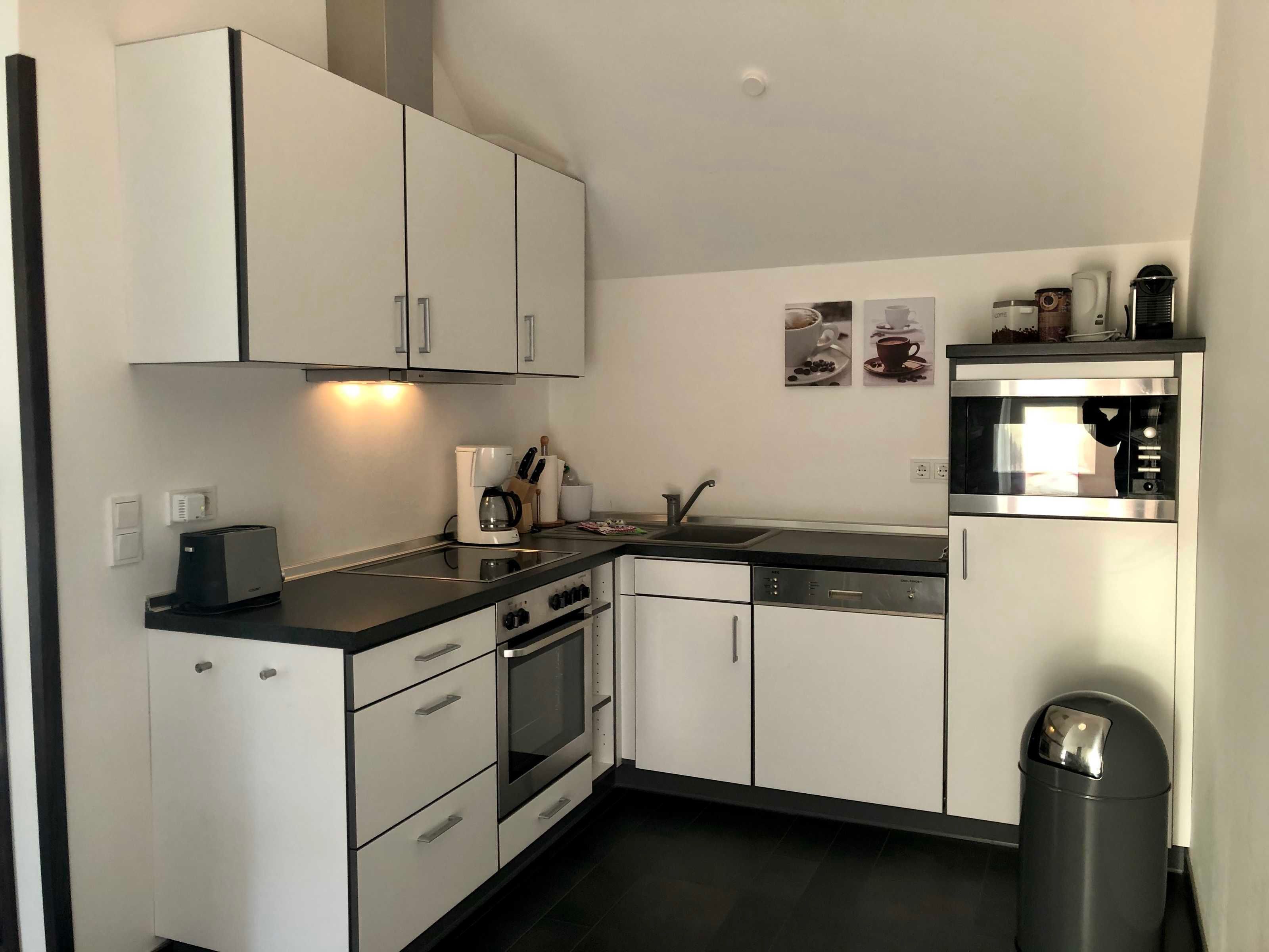 Küchenzeile: Wasserkocher, Toaster, Mikrowelle, Geschirrspüler, Kaffeemaschine, Herd mit Backofen, Gefrierfach im Kühlschrank, Warmwasser, Digital-TV, Heizung, separater Eingang, WLAN