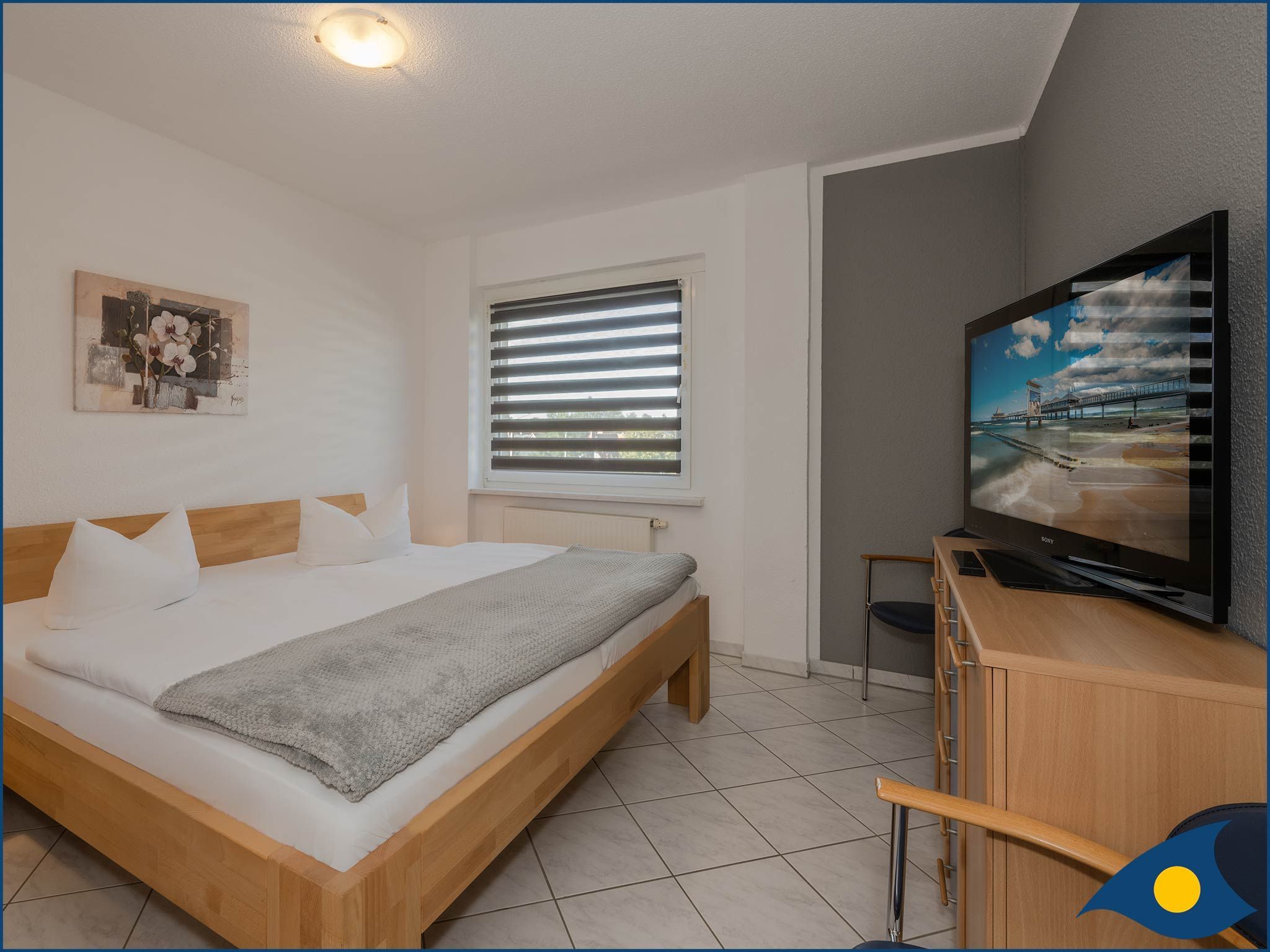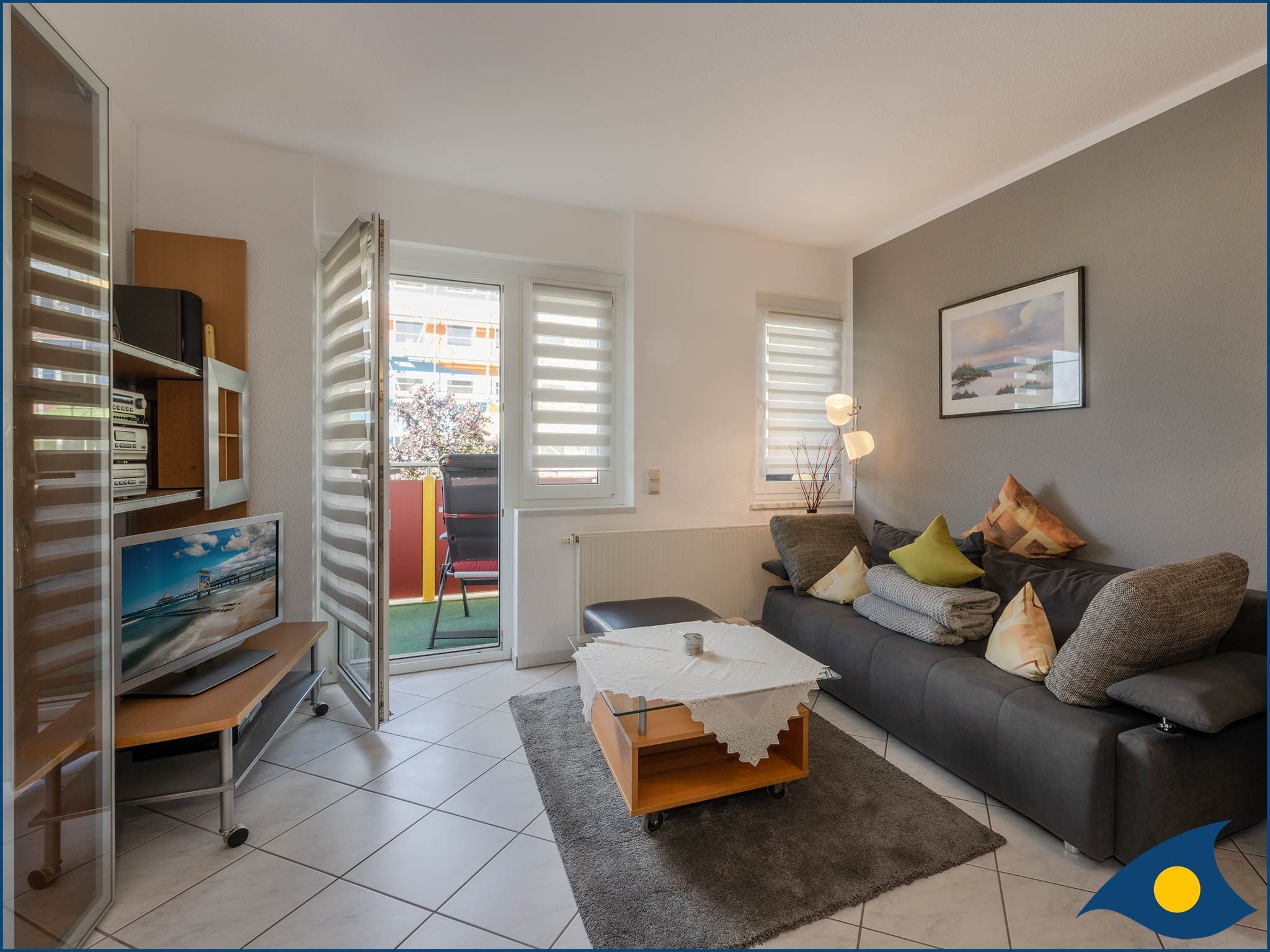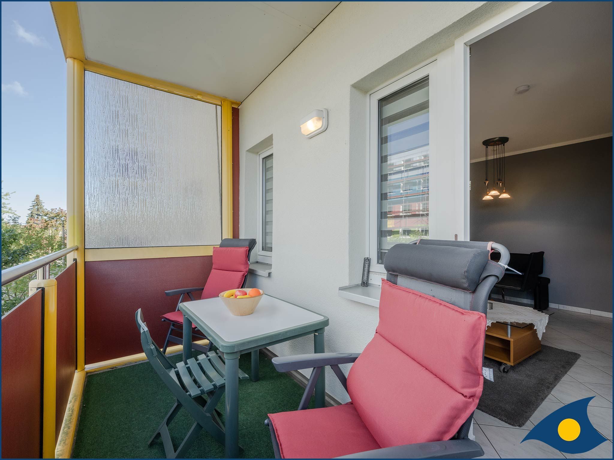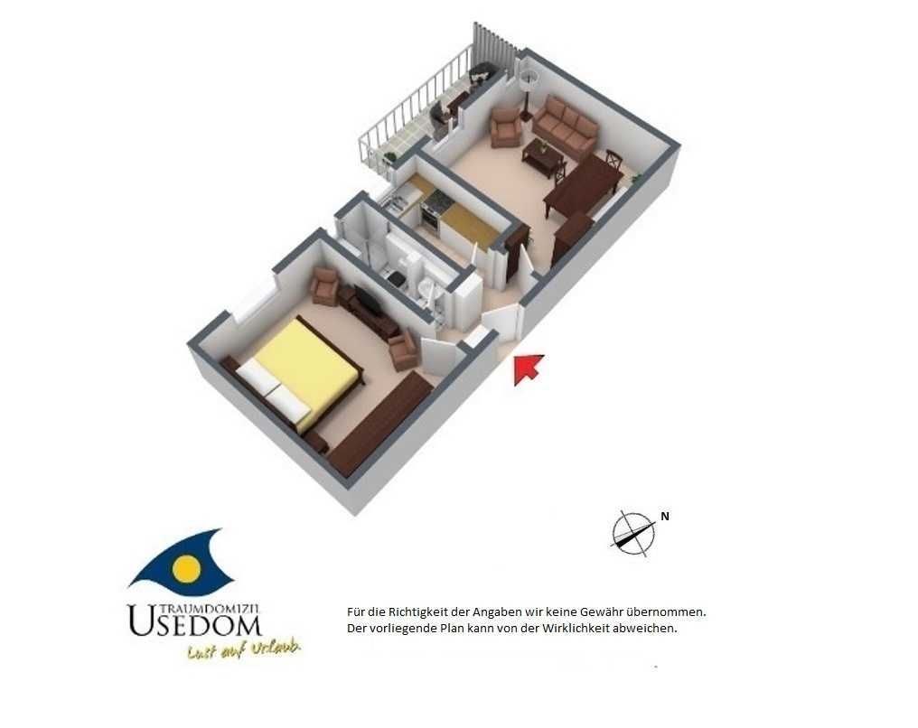Dieser gibt den Blick über das Seebad Heringsdorf frei und lädt zum Lesen Ihrer Urlaubslektüre, zum Sonnenbaden oder zu einem gemütlichen Gläschen Wein ein. Das Badezimmer ist mit WC und Dusche, sowie einer Waschmaschine ausgestattet. Das Schlafzimmer mit dem bequemen Doppelbett und den vielen Ablagemöglichkeiten beherbergt zudem ein 2. TV-Gerät.