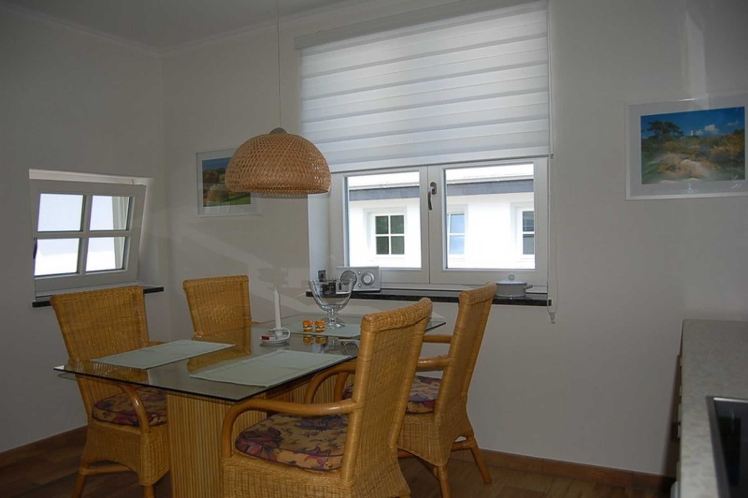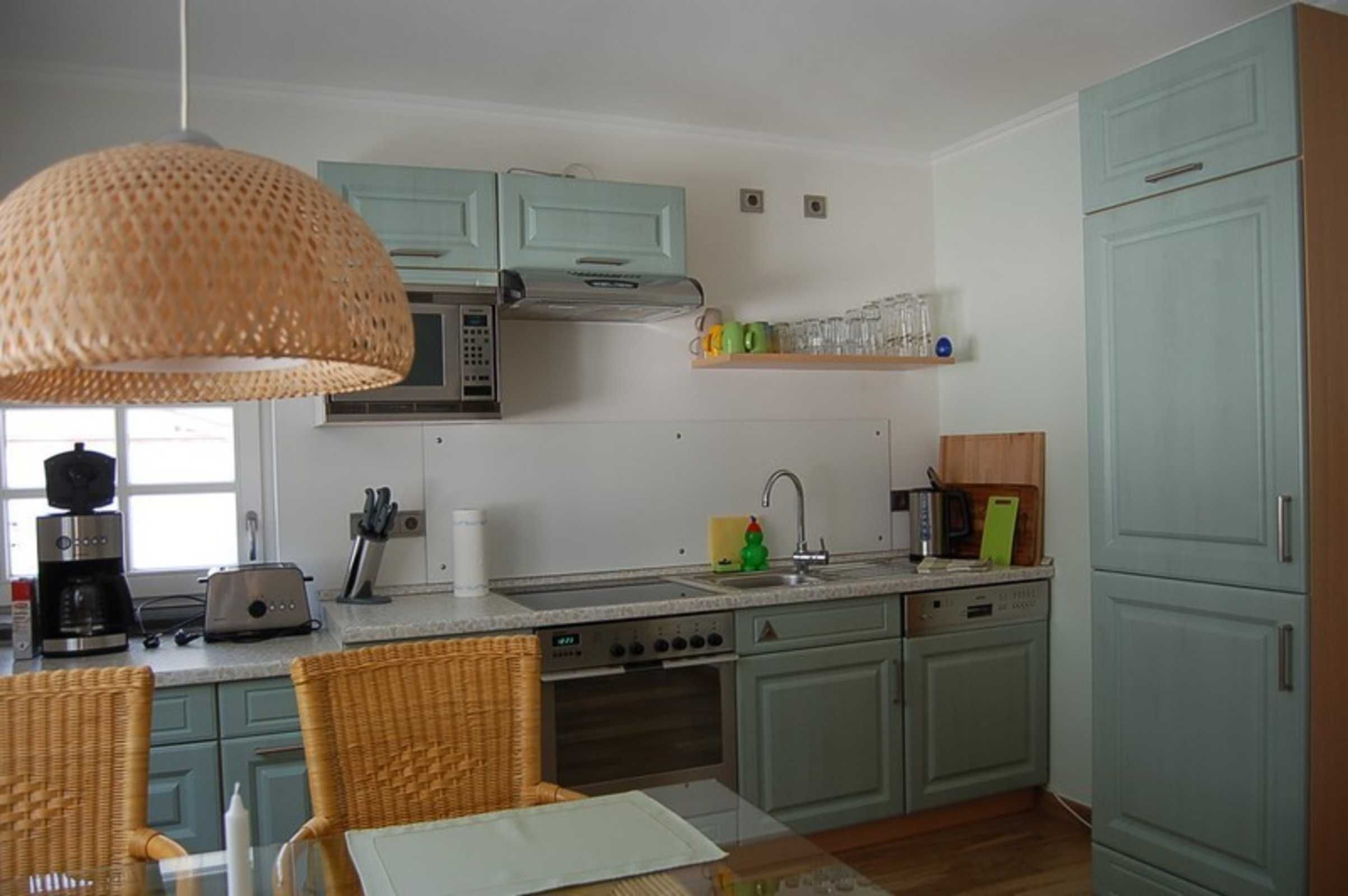 Die Kücheneinrichtung ist umfassend und befindet sich in einem separaten Raum. Hier werden Ihnen alle Annehmlichkeiten einer komfortablen Selbstversorgung geboten: Kühlschrank und Tiefkühlschrank, Backofen mit 4-fach Ceranfeld, Geschirrspüler, Mikrowelle, Kaffeemaschine, Toaster, Wasser- und Eierkocher. Geschirr, Gläser, Bestecke und „Küchenwerkzeuge“ sind mehr als reichlich vorhanden. Der große Küchentisch mit bis zu 5 Stühlen bietet auch für Besucher noch reichlich Platz.