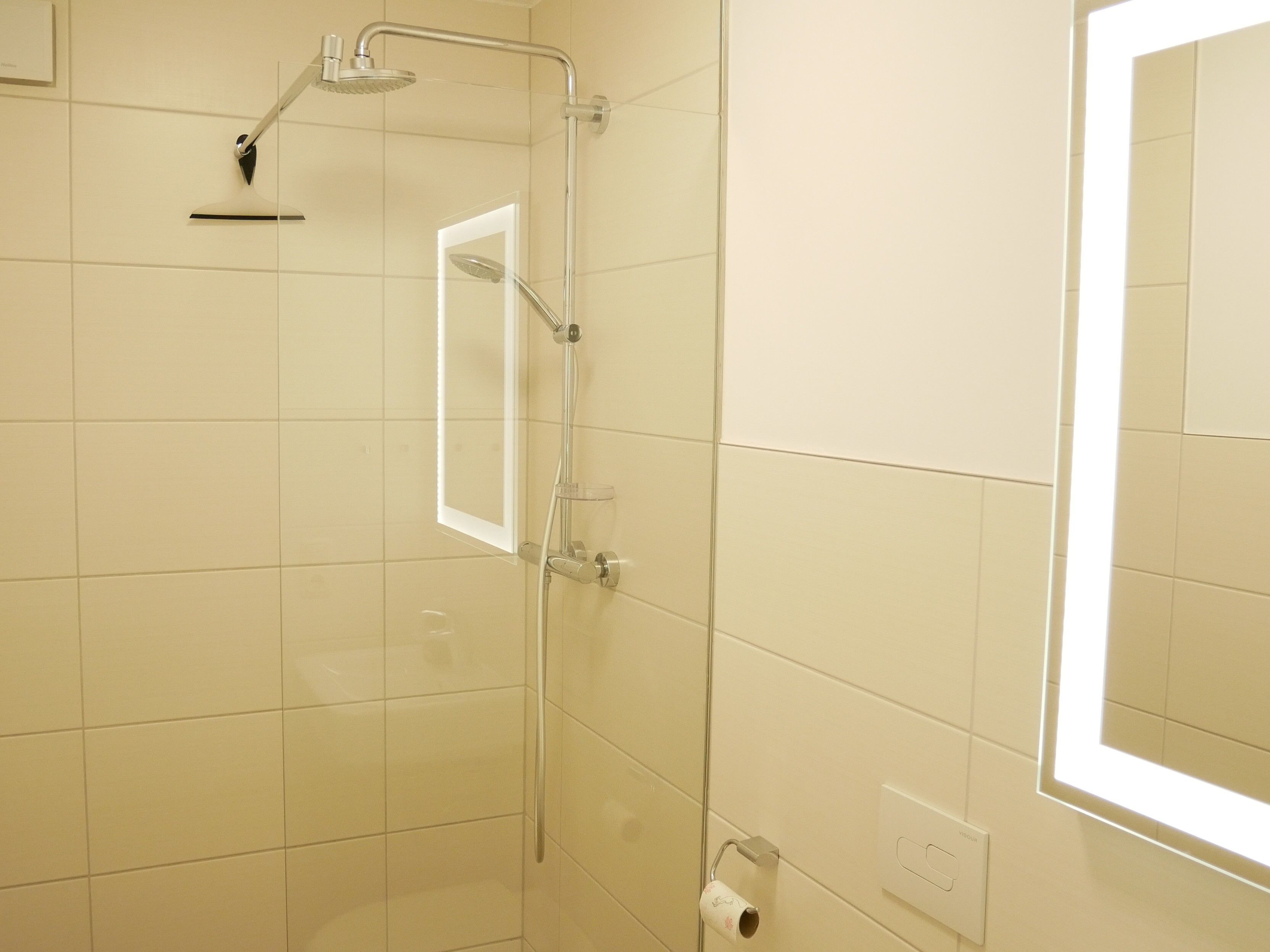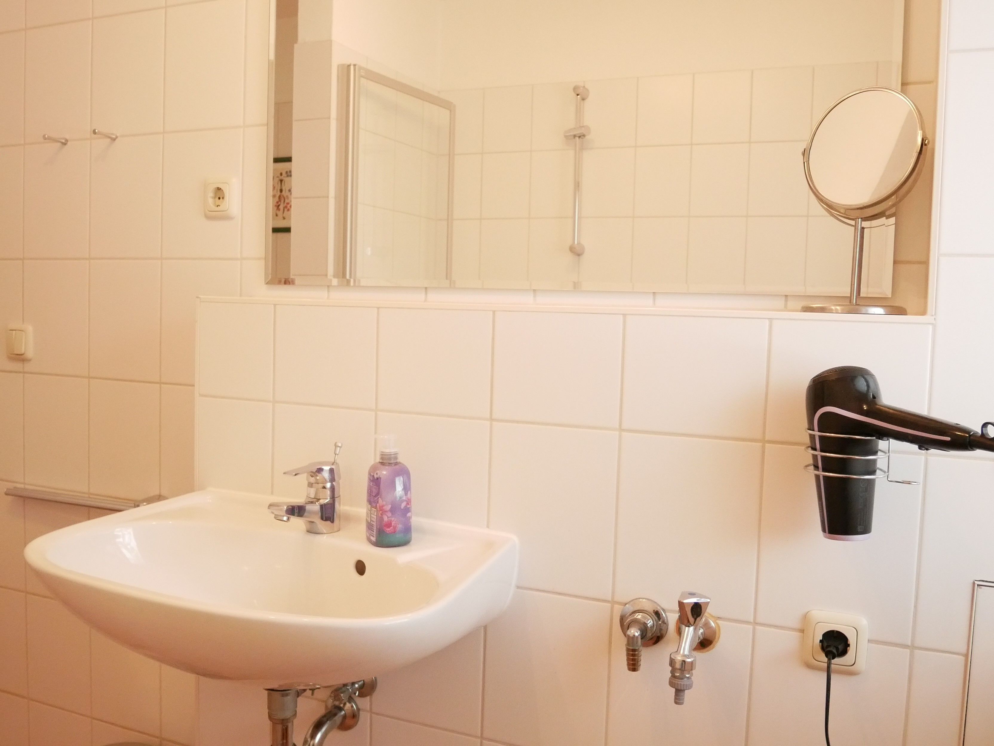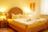 Das erste der beiden Schlafzimmer ist mit einem Doppelbett ausgestattet, das zweite Schlafzimmer mit 2 Einzelbetten. Es erwarten Sie 2 Badezimmer, eines mit einer ebenerdigen Dusche/WC und das zweite mit einer Badewanne/WC. Des Weiteren stehen Ihnen Bügeleisen, Bügelbrett und Wäscheständer zur Nutzung zur Verfügung. Ein Kinderhochstuhl ist bei Bedarf vorhanden, ein Kinderreisebett kann gegen Gebühr gemietet werden.