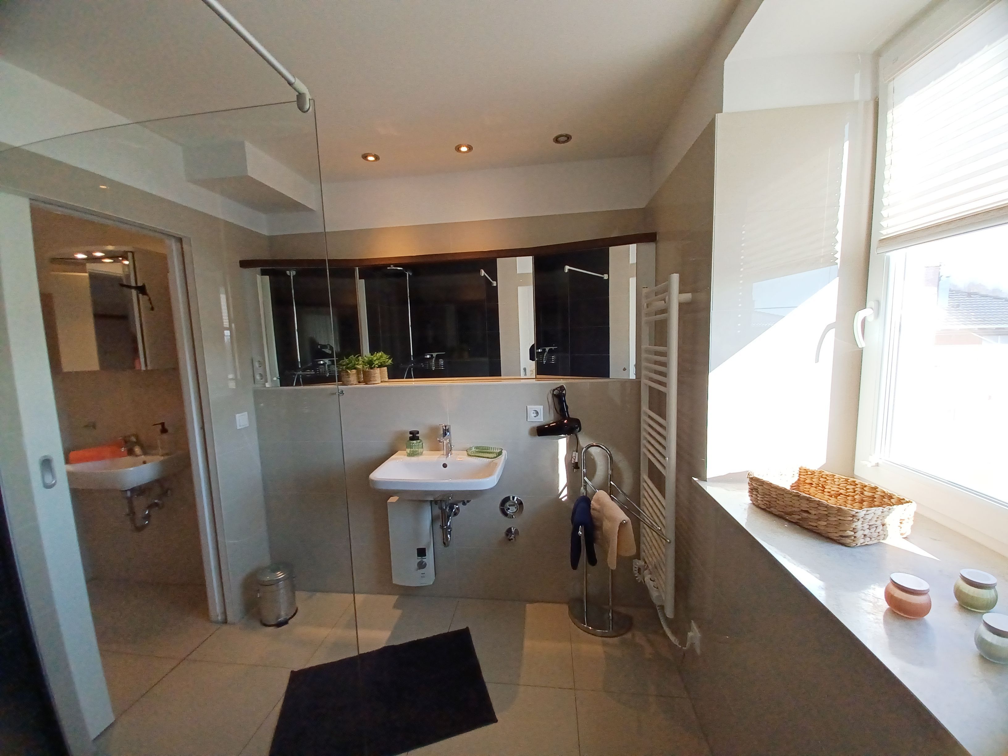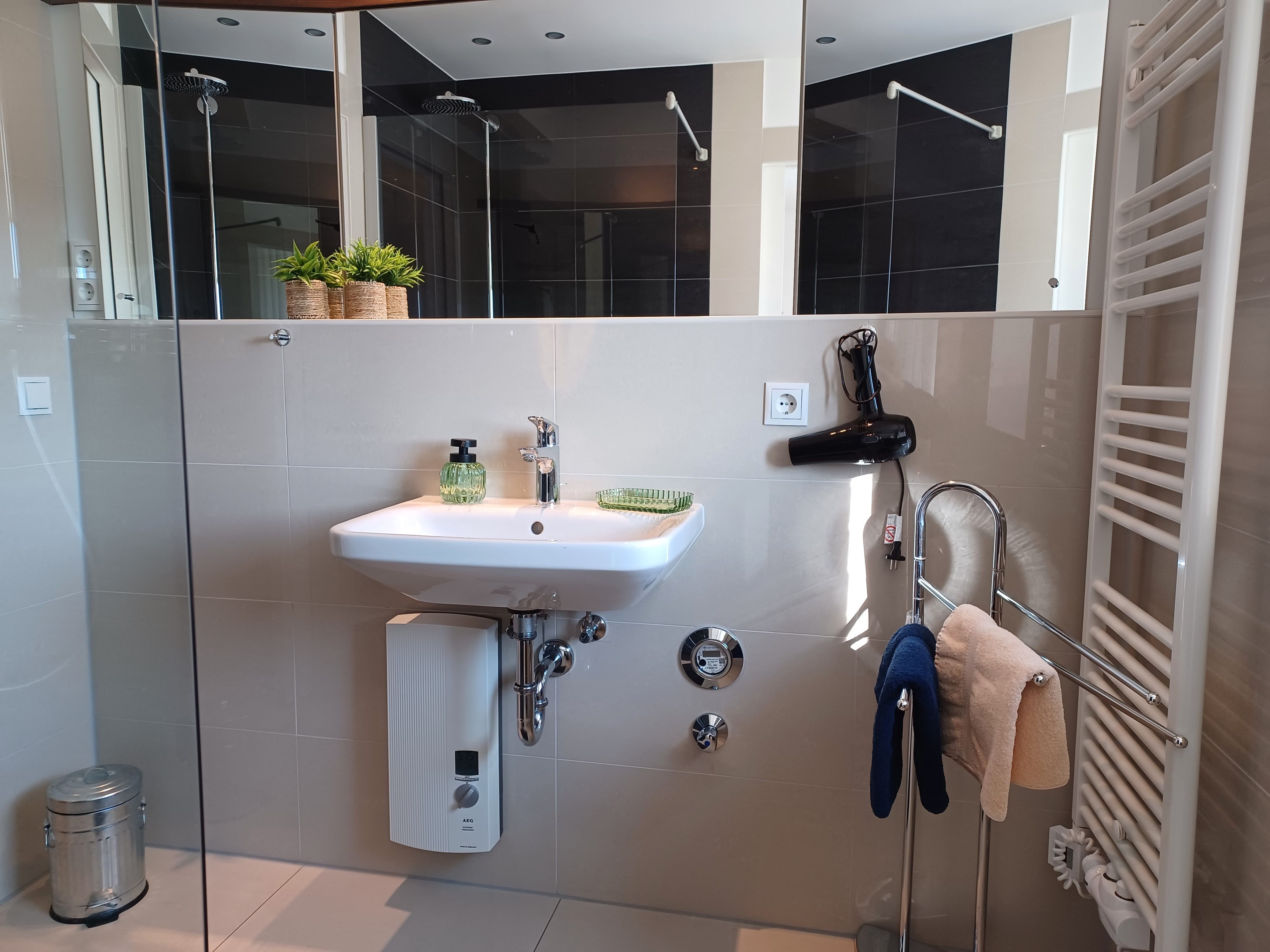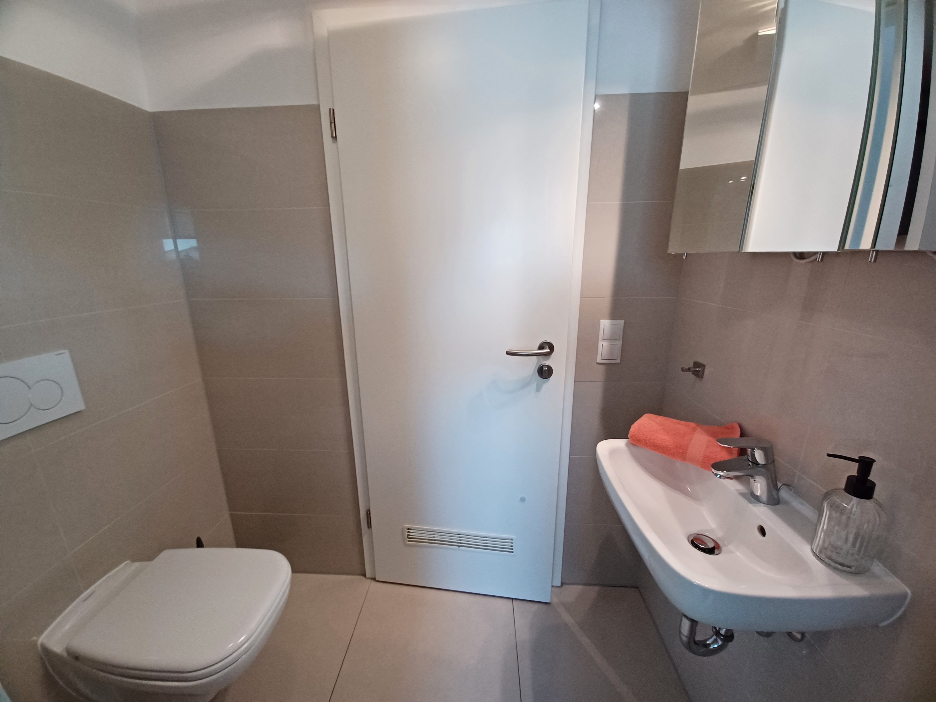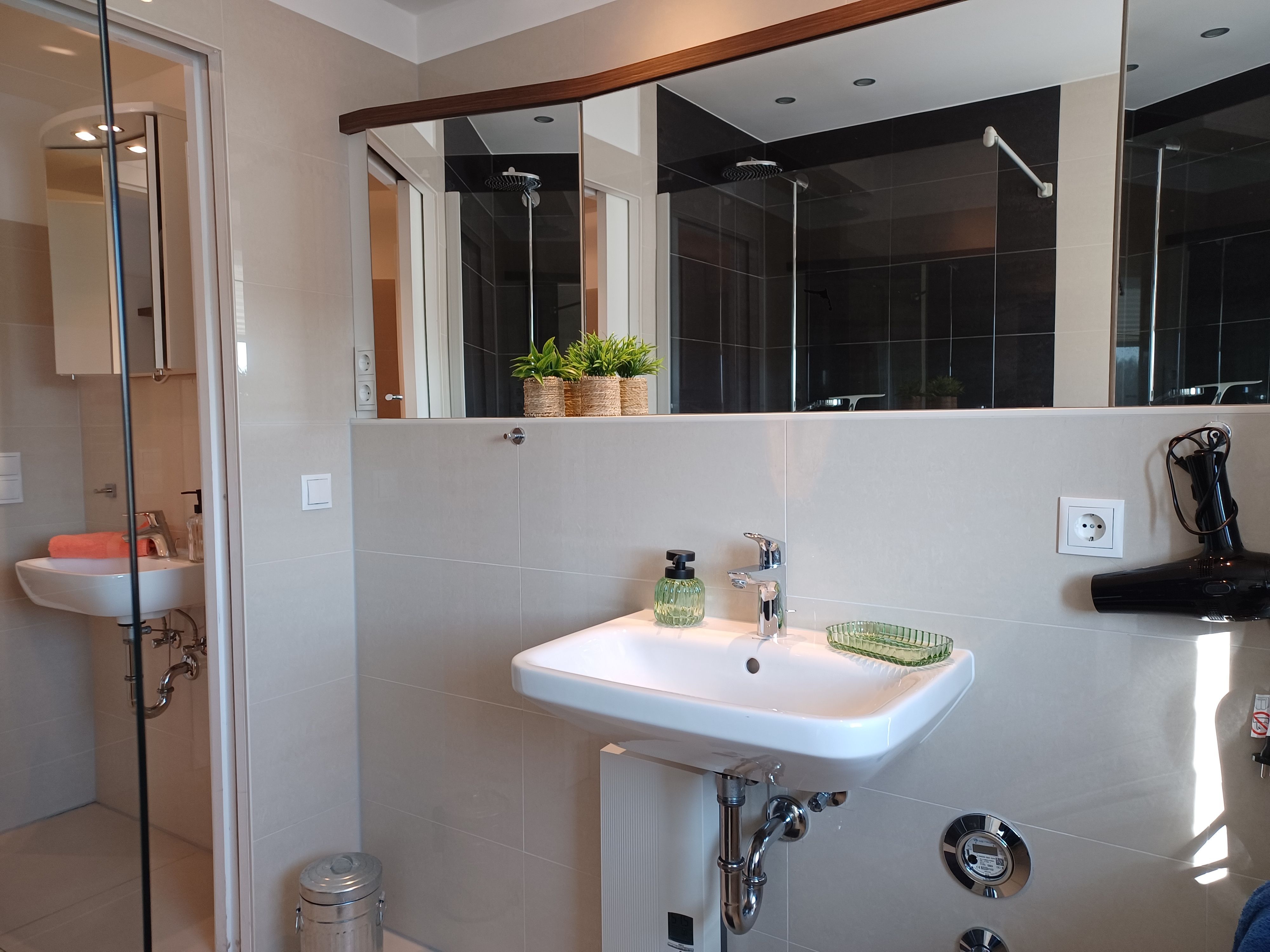 Ausstattung: Bad mit Dusche und Waschbecken: 1, separate Toilette mit Waschbecken: 1, TV, Schlafsofa: 1, Küchenzeile, Kühlschrank, Toaster, Wasserkocher, Mikrowelle, Geschirrspüler, Spüle, Herd mit Backofen, Gefrierfach im Kühlschrank,