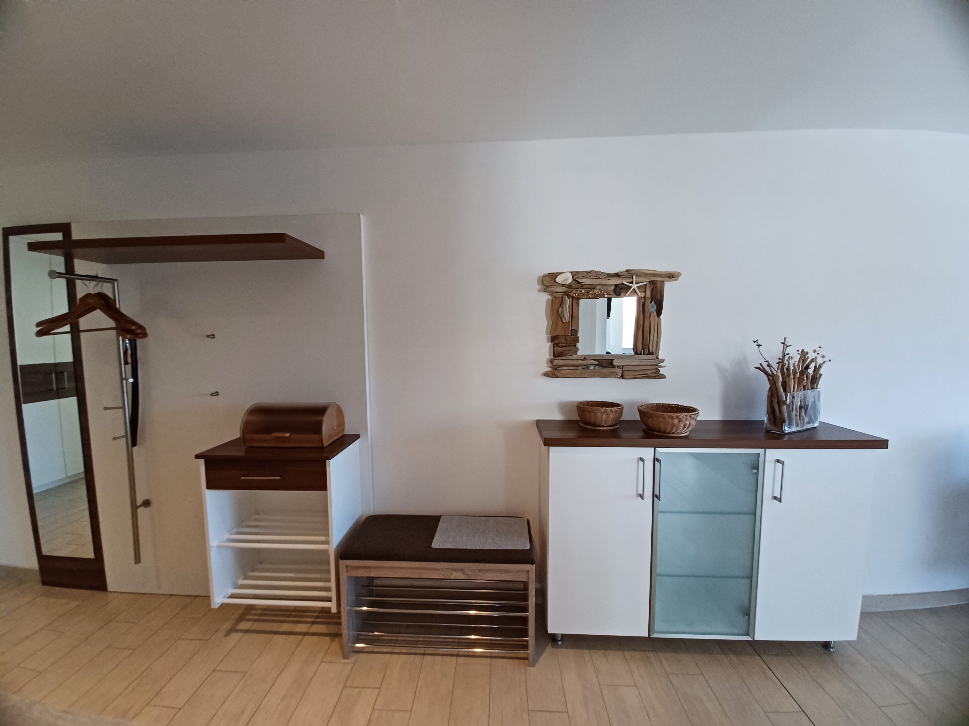 die geschmackvoll und modern eingerichtete Ferienwohnung im 2. Obergeschoss der Ferienanlage Käpt` Brass mit dem Nord- Westseitigem Balkon lädt zu frühstücken ein, mit seinem weiläufigen Blick. Der feinsandige Strand befindet sich in etwa 200 m. Unsere Gäste aus dem Appartement 27 können den kostenlosen Strandkorb nutzen und dabei den Sonnenuntergang am Abend mit einem guten Glas Wein ausklingen lassen. Ein Fahrstuhl steht Ihnen im Eingangsbereich zur Verfügung. Die offene Küchenzeile ist mit allen notwendigen Küchenutensilien ausgestattet. Das offene Wohnzimmer verfügt über eine Couch mit Schlaffunktion kostenlosem WLAN- Zugang und SAT- TV. Für Ihre Nachtruhe steht ein Schlafzimmer mit Doppelbett 1,80 x 2,00 m und getrennten Matratzen und einem großen Schrank mit viel Stauraum bereit. Das Bad mit einer ebenerdigen Dusche und ein separates WC schließen sich an.Beide sind vom Schlafzimmer erreichbar. Der Parkplatz befindet sich direkt vor dem Haus, einen abschließbaren Fahrradabstellraum befindet sich vor dem Hauptgebäude rechts. Alle unsere Wohnungen sind Nichtraucherwohnungen. Der Strandkorb ist von Mai- September direkt am Strand verfügbar (wetterbedingt) Die Wohnung wird inclusive Bettwäsche übergeben, Handtücher können in der Zimmervermittlung für 7,00 € pro Person (1 Badetuch, 1 Handtuch) dazugebucht werden.