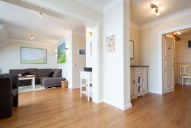 Ganz oben im Haus Meeresblick liegt die Wohnung 5.12. Sie genießen einen herrlichen Panoramablick über den Strand von Kühlungsborn und die Ostsee. Über die Strandpromenade gelangen Sie in einer Minute an den Strand und können dort herrliche Spaziergänge machen, in der Ostsee schwimmen, oder einfach die Seele im Standkorb baumeln lassen. In diesem Juwel unter den Ferienwohnungen in Kühlungsborn können Sie unvergessliche Sonnenuntergänge auf der Loggia erleben oder an stürmischen Tagen aus Ihrer Wohnung die Surfer auf den Wellen der Ostsee bewundern. Lassen Sie sich faszinieren von dem Charme dieser luxuriösen Wohnung und genießen Sie einige unbeschwerte Urlaubstage.