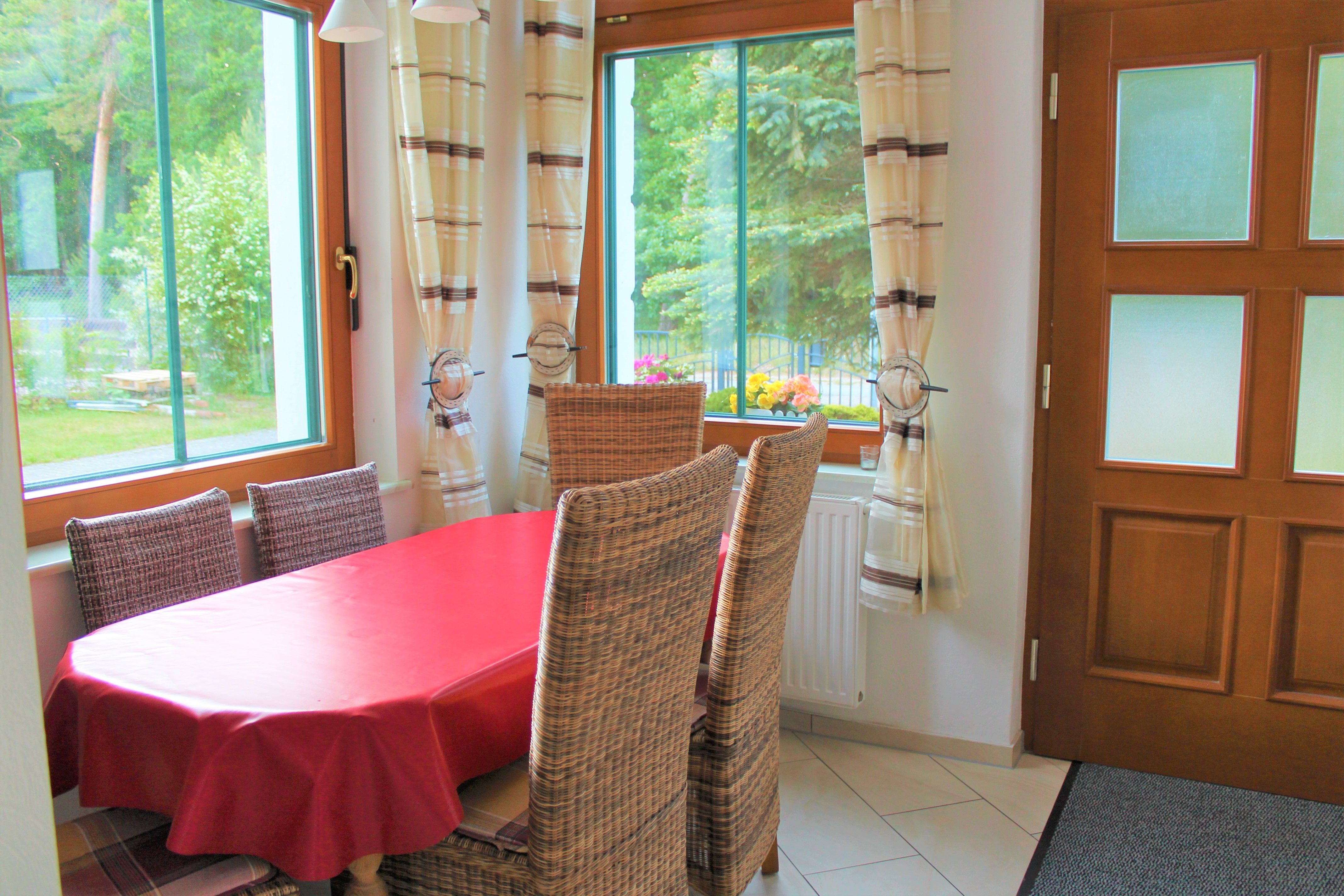 In der Veranda mit Essecke und kleiner Garderobe können Sie gut von einem schönen Tag erzählen, bei einer Tasse Kaffee entspannen oder sich mit Spielen einen spannenden Nachmittag oder Abend gestalten.