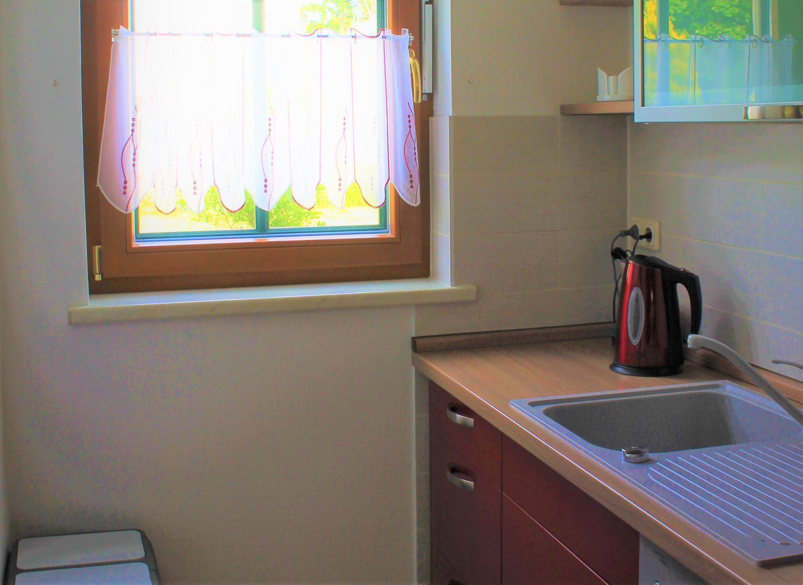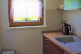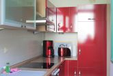 Die voll ausgestattete Küche verfügt neben Wasserkocher, Kaffeemaschine, Toaster, Herd mit Ceranfeld, Kühl-Gefrierkombination und einer Mikrowelle auch über einen Geschirrspüler.
