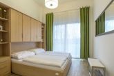 Das helle und freundliche Schlafzimmer ist mit einem Doppelbett und hochwertigen, separaten Matratzen eingerichtet.