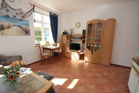 die ruhig gelegene Ferienwohnung im Erdgeschoss liegt im Ortszentrum von Wustrow. Den Strand erreichen Sie in etwa 10 Gehminuten, ebenso den Hafen. Die Terrasse vor der Wohnung liegt südseitig und lädt zum gemeinsamen Frühstück oder zum Tagesausklang ein. Die Wohnung hat einen separaten Eingang und liegt in ruhiger Lage. Der Parkplatz befindet sich direkt am Haus. Das Wohnzimmer mit der Couch, SAT- TV, Fußbodenheizung und der offenen Küchenzeile ist perfekt für 2 Personen geeignet. Die offene Küchenzeile verfügt über ein 2-Platten Cerankochfeld, Kühlschrank mit Gefrierfach und eine Mikrowelle, sowie Kaffeemaschine, Toaster und Wasserkocher. Das Schlafzimmer wurde mit einem Doppelbett (1,80 x 2,00 m) und getrennten Matratzen ausgestattet. Das Bad verfügt über eine Dusche. Die Wohnung wurde teilweise mit einem Insektenschutzrollo ausgestattet. Eine Aufbettung á 10,- € pro Nacht für Kinder bis 3 Jahren ist möglich. Die Wohnung wird inklusive Bettwäsche übergeben. Handtücher können in der Zimmervermittlung für 7,00 € pro Person (1 Badetuch, 1 Handtuch) dazugebucht werden. Alle Wohnungen sind Nichtraucherwohnungen. Eine TouchLife Massage & Reiki ist nach Absprache möglich, Haustiere sind nicht erlaubt.