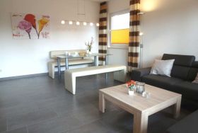 Die großzügige und modern eingerichtete 3-Zimmerwohnung (75m²) liegt im Erdgeschoss der 2014 erbauten Villa Hügel. Die Wohnung verfügt über zwei Schlafzimmer. Ein großes Schlafzimmer mit Doppelbett und ein kleines mit Schlafcouch (1,60cm Breite). Im großen Wohnzimmer befindet sich eine komplett eingerichtete Küchenzeile, ein Essplatz sowie eine gemütliche Sitzgruppe mit Flachbild-TV. Desweiteren verfügt die Wohnung über ein schönes Duschbad sowie ein Gäste-WC. Eine große, sonnige Terrasse in Südostlage mit Gartenmöbeln und Strandkorb rundet diese Wohnung ab. Ein Parkplatz und ein abschließbarer Fahrradraum sind inklusive. Ein WLAN-Netzwerk steht Ihnen kostenfrei zur Verfügung.