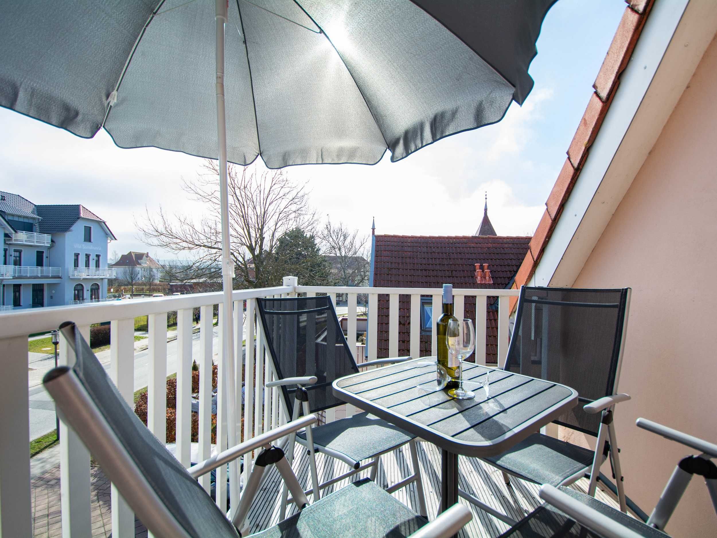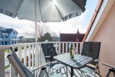 Vom Wohnbereich betreten Sie den möblierten Balkon, der nach Süd-Osten ausgerichtet ist. Hier können Sie Ihr Frühstück in der Morgensonne genießen oder einfach Sonne tanken und relaxen.