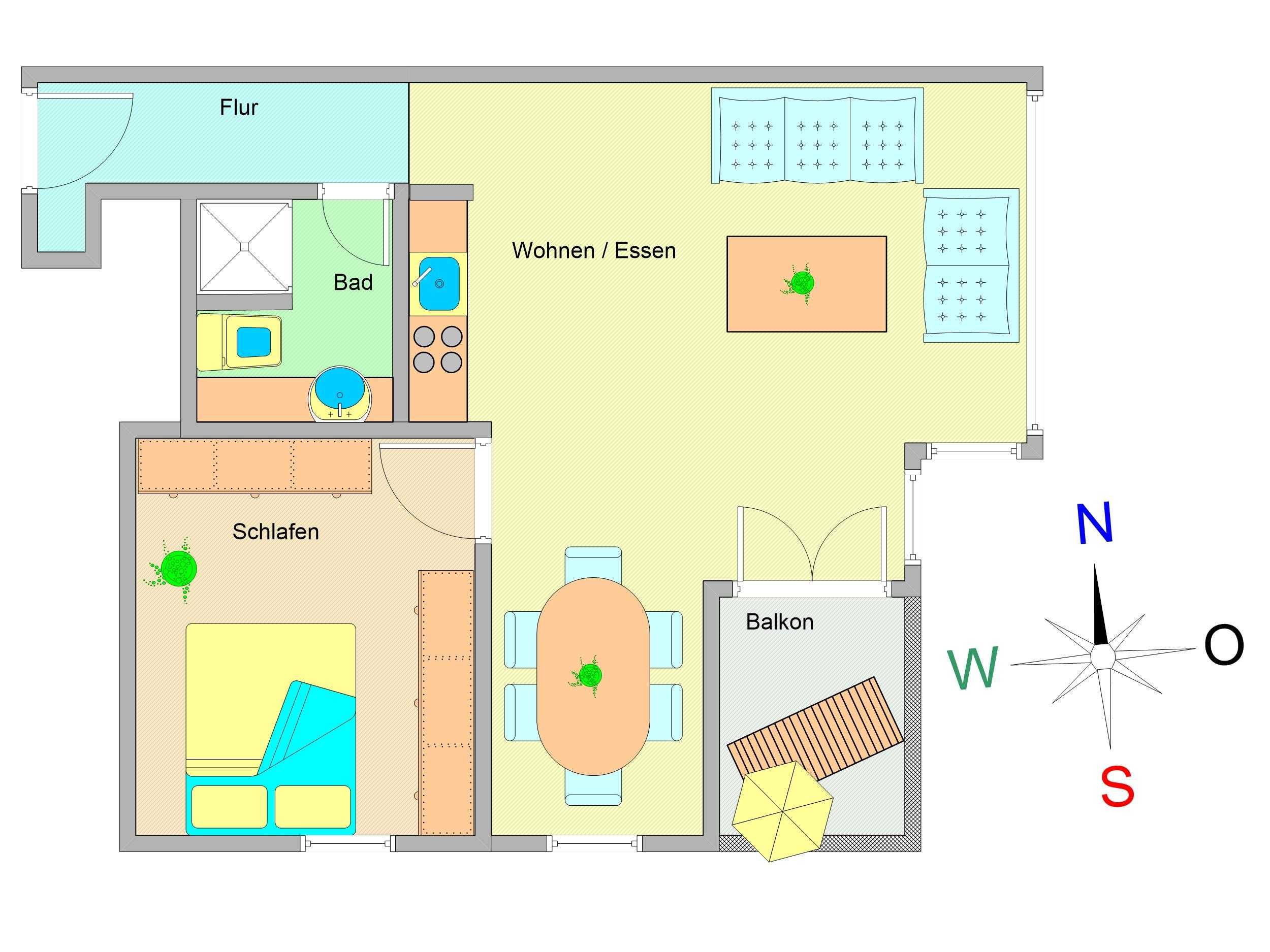 Wir bitten um Ihr Verständnis, dass das Rauchen nur auf dem Balkon gestattet ist, da es sich um eine Nichtraucherwohnung handelt. Tiere sind ebenfalls nicht erlaubt. Unseren Gästen steht ein kostenloser Pkw-Stellplatz am Haus zur Verfügung.