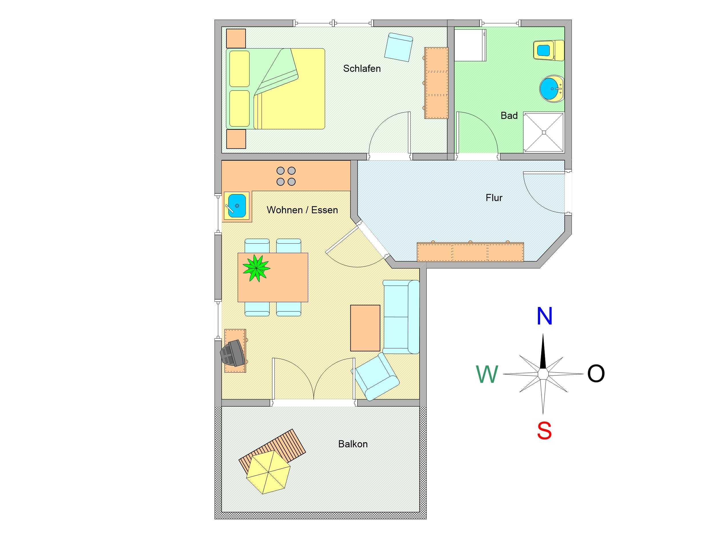 Hier fängt Urlaub an: Herzlich Willkommen in der Wohnung 3 in der Waldstraße 30! Die gemütlich eingerichtete 2-Raum-Ferienwohnung befindet sich im Erdgeschoss des Appartementhauses und bietet auf 55qm Grundfläche reichlich Platz für bis zu 3 Personen.