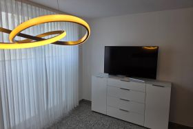 Die ca. 42 m² große Wohnung mit Balkon liegt in Süd-Ost Ausrichtung im Haus. Sie können den Wellnessbereich (Schwimmbad, Sauna) im Haus bequem im Bademantel mit dem Aufzug erreichen. Ein separates Schlafzimmer mit Doppelbett und Fernseher steht Ihnen zur Verfügung. Der Wohnbereich ist mit einer Sitz- und Essgruppe, 55 Zoll UHD Smart TV sowie einer Pantry-Küche mit Dreifach-Cerankochfeld, Neff Kompaktbackofen mit Mikrowelle, Geschirrspülmaschine, Kühlschrank, Kaffeemaschine, Toaster usw. versehen. Ein schönes Badezimmer mit Dusche, WC und großem Spiegel komplettieren die Ferienwohnungen. Beste Voraussetzungen für 1 bis 3 Personen in Binz einen erholsamen Urlaub zu verleben. Ein PKW-Parkplatz an der Tiefgarage ist im Preis enthalten. Kostenfreies WLAN steht zur Verfügung.