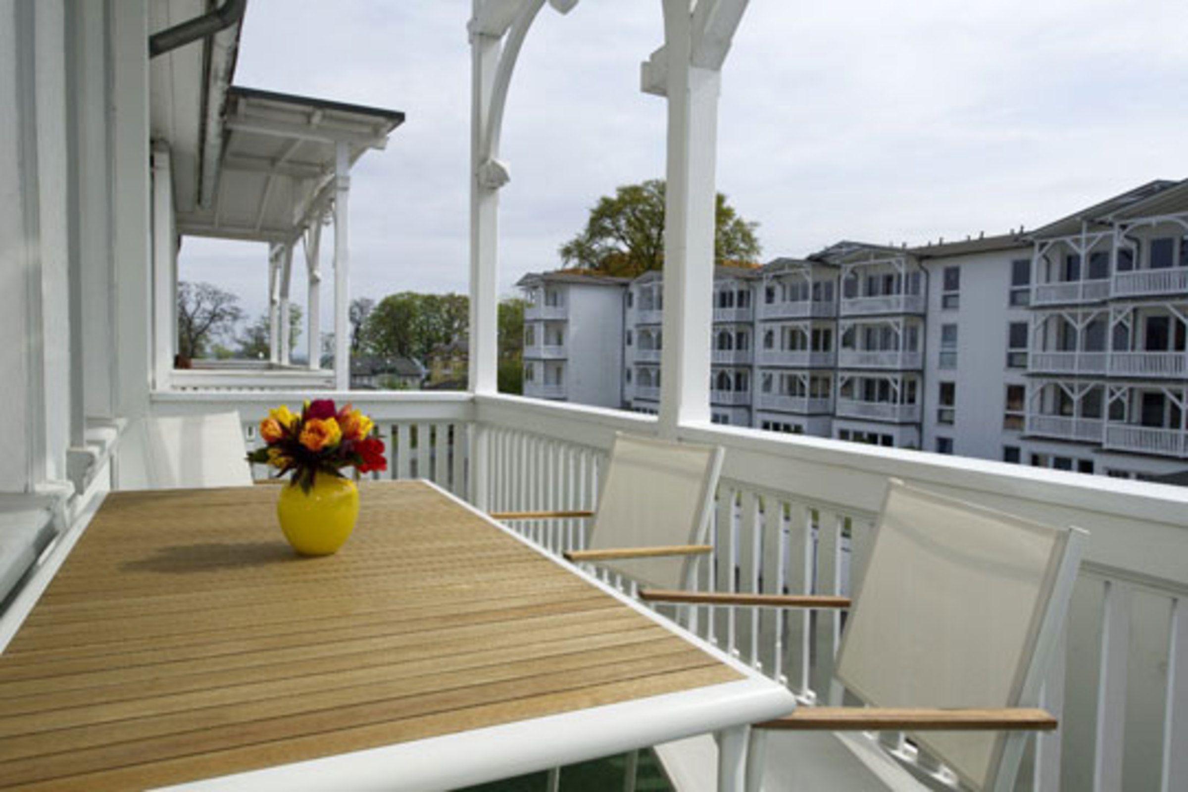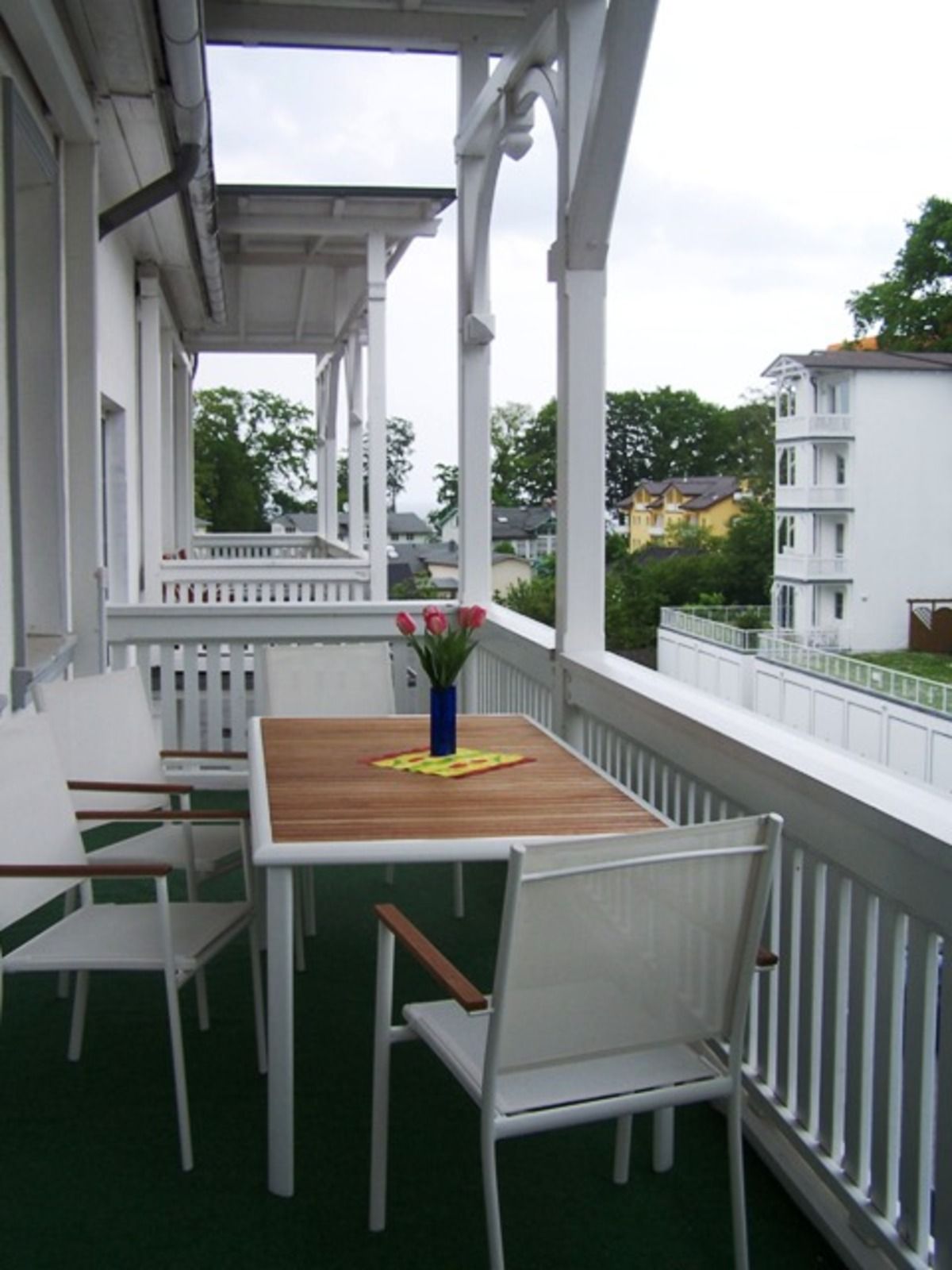 Vom großen SüdOst Balkon mit Gartenmöbel und Sonnenschrim haben Sie einen seitlichen Blick auf das Meer.