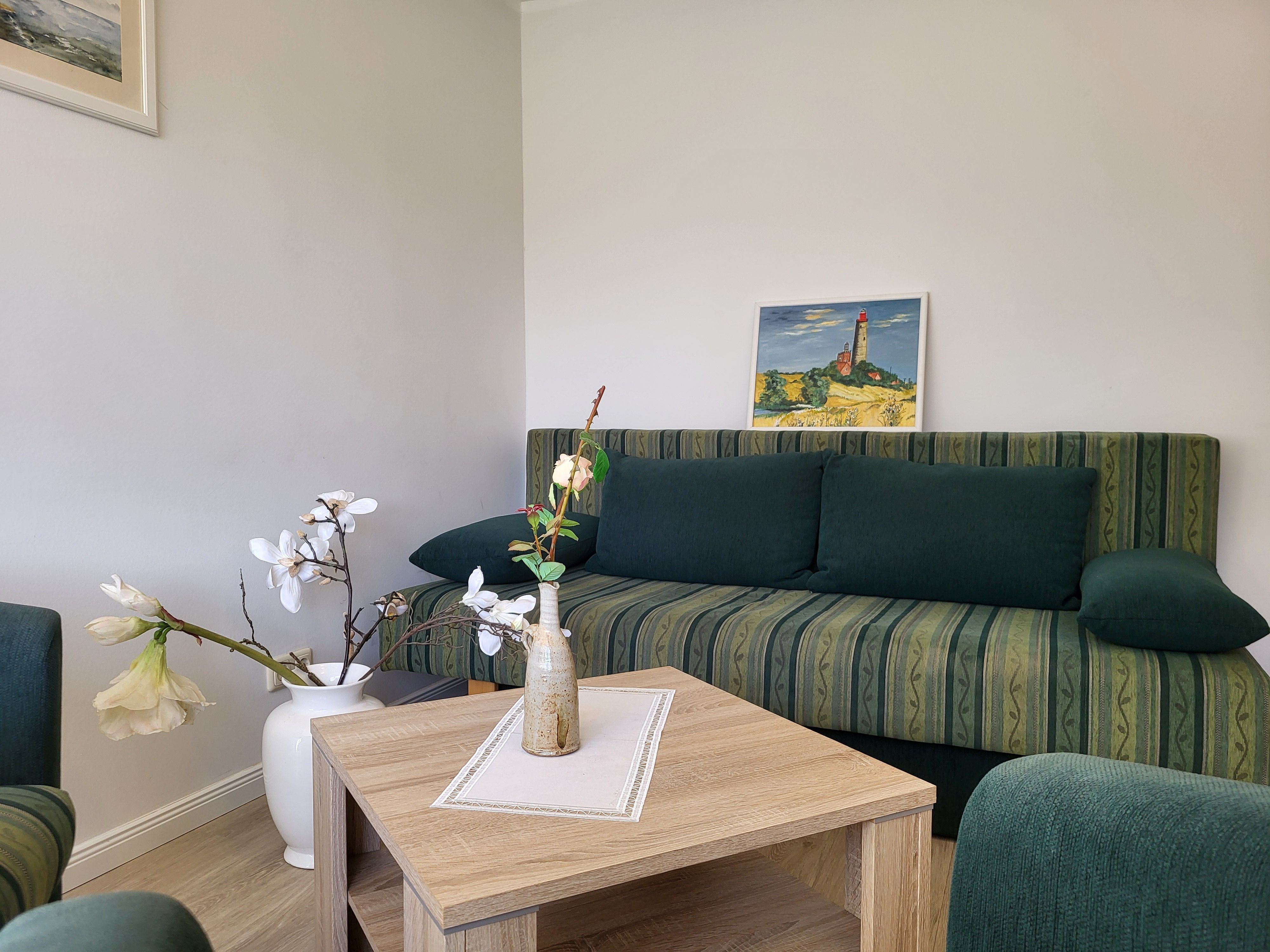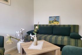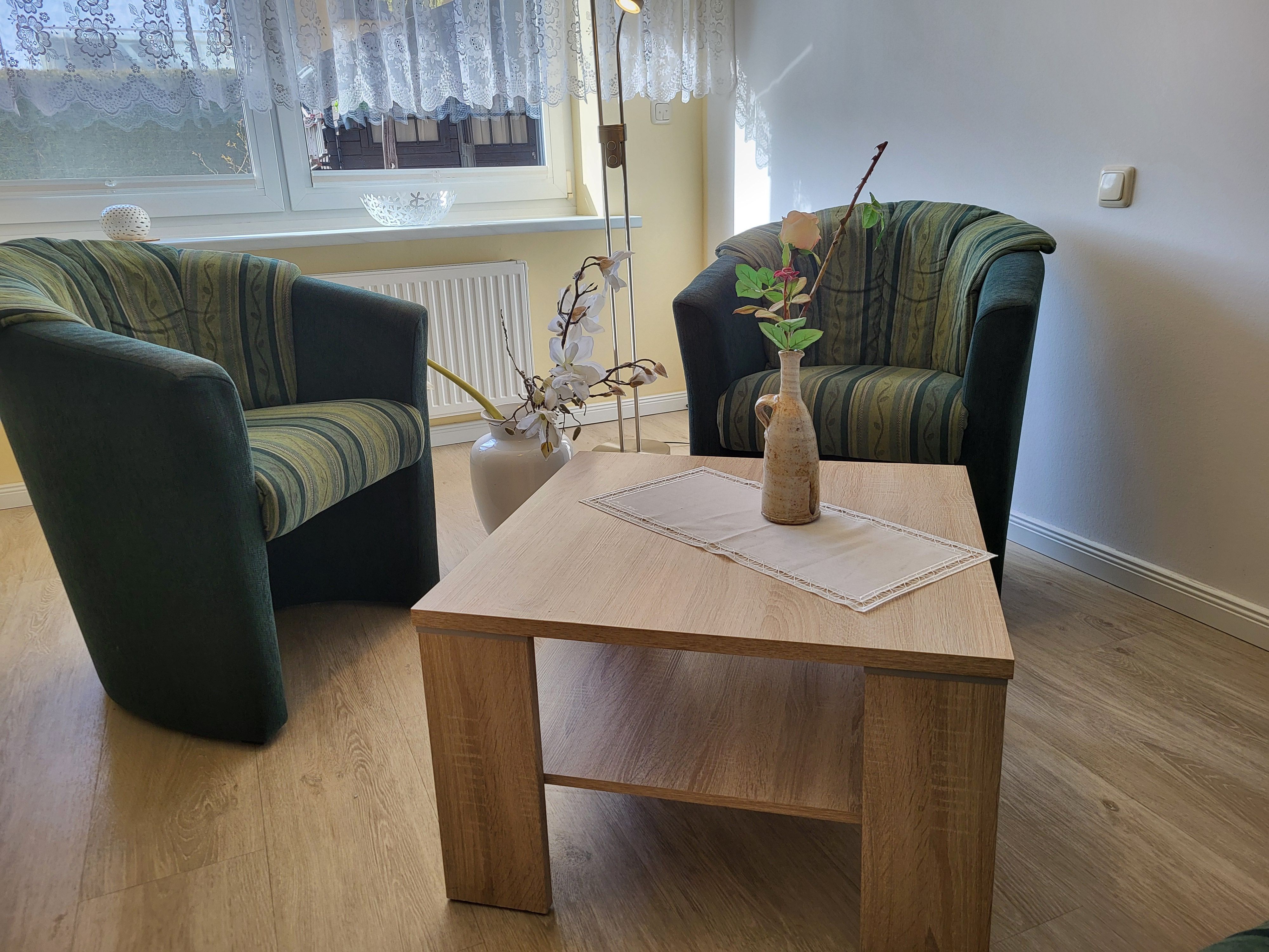 die zentral und hochwertig ausgestattete Ferienwohnung Anika 2 im Erdgeschos, liegt in ruhige Lage am Ortsrand. Der Sitzplatz mit Grillmöglichkeit befinden sich im Garten, diesen teilen Sie sich mit der Wohnung Anika 1. Die Wohnung verfügt über einen separaten Eingang und einen Parkplatz auf dem Grundstück. Im Wohnzimmer befindet sich eine Schlafcouch. Die große Wohnküche verfügt über einen Essplatz und ist ausgestattet mit einem Geschirrspüler, Kühlschrank mit Gefrierfach, Induktionskochfeld und Herd mit Backofen Das Schlafzimmer verfügt über ein Doppelbett 1,60 x 2,00 m (getrennte Matratzen). Die Bettwäsche ist inclusive, Handtücher können in der Zimmervermittlung für 7,00 € pro Person (1 Badetuch, 1 Handtuch) dazugebucht werden.Das neu sanierte Bad verfügt über eine ebenerdige Dusche.Die Ferienwohnung ist mit einem WLAN- Anschluß ausgestattet. Der Strand liegt in ca. 500 m Entfernung.