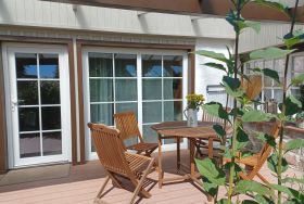 Aussenanlage: Terrasse, Parkplatz, Gartenmöbel
