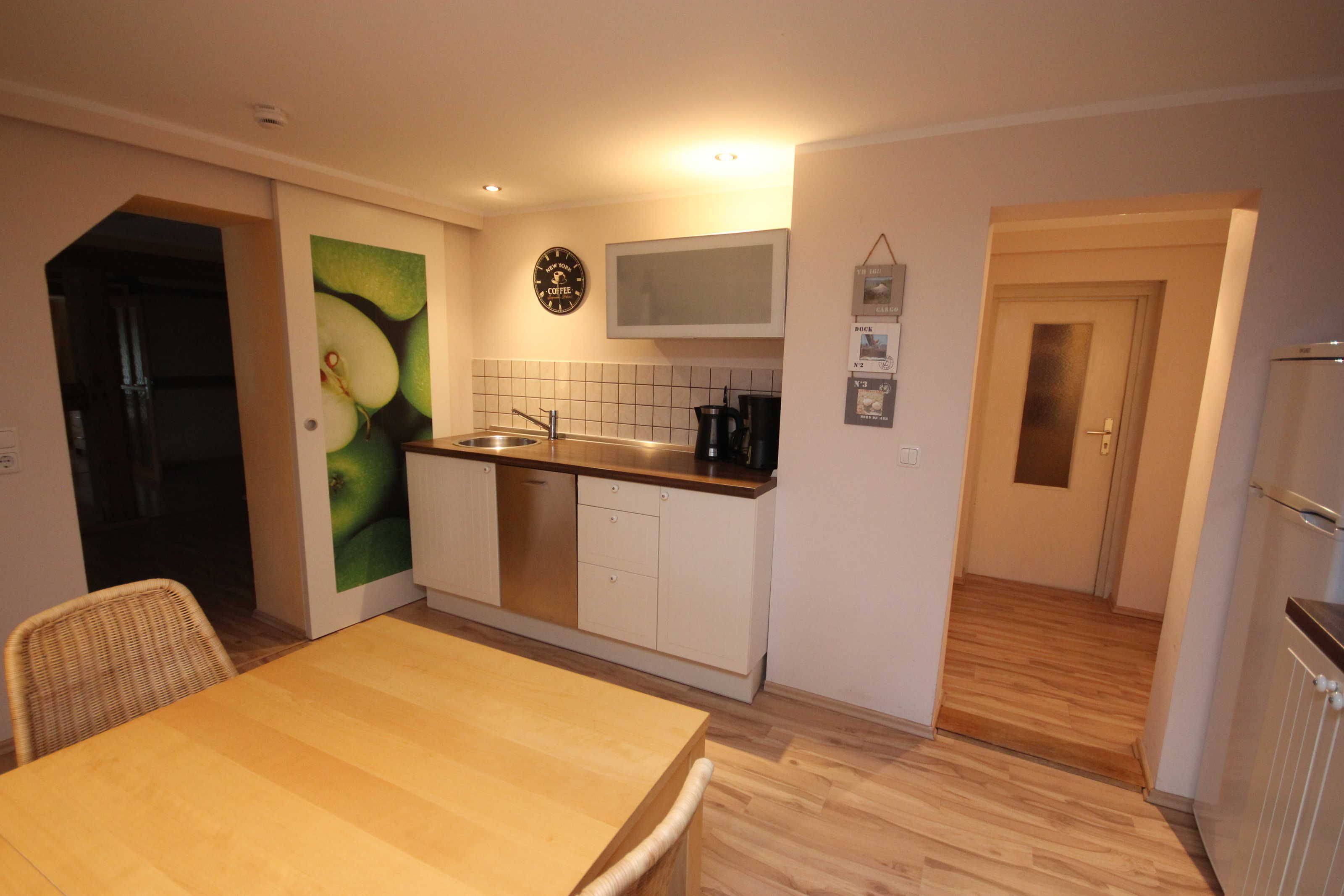 Küchenzeile, Kühlschrank, Gefrierfach im Kühlschrank, Kaffeemaschine, separater Eingang