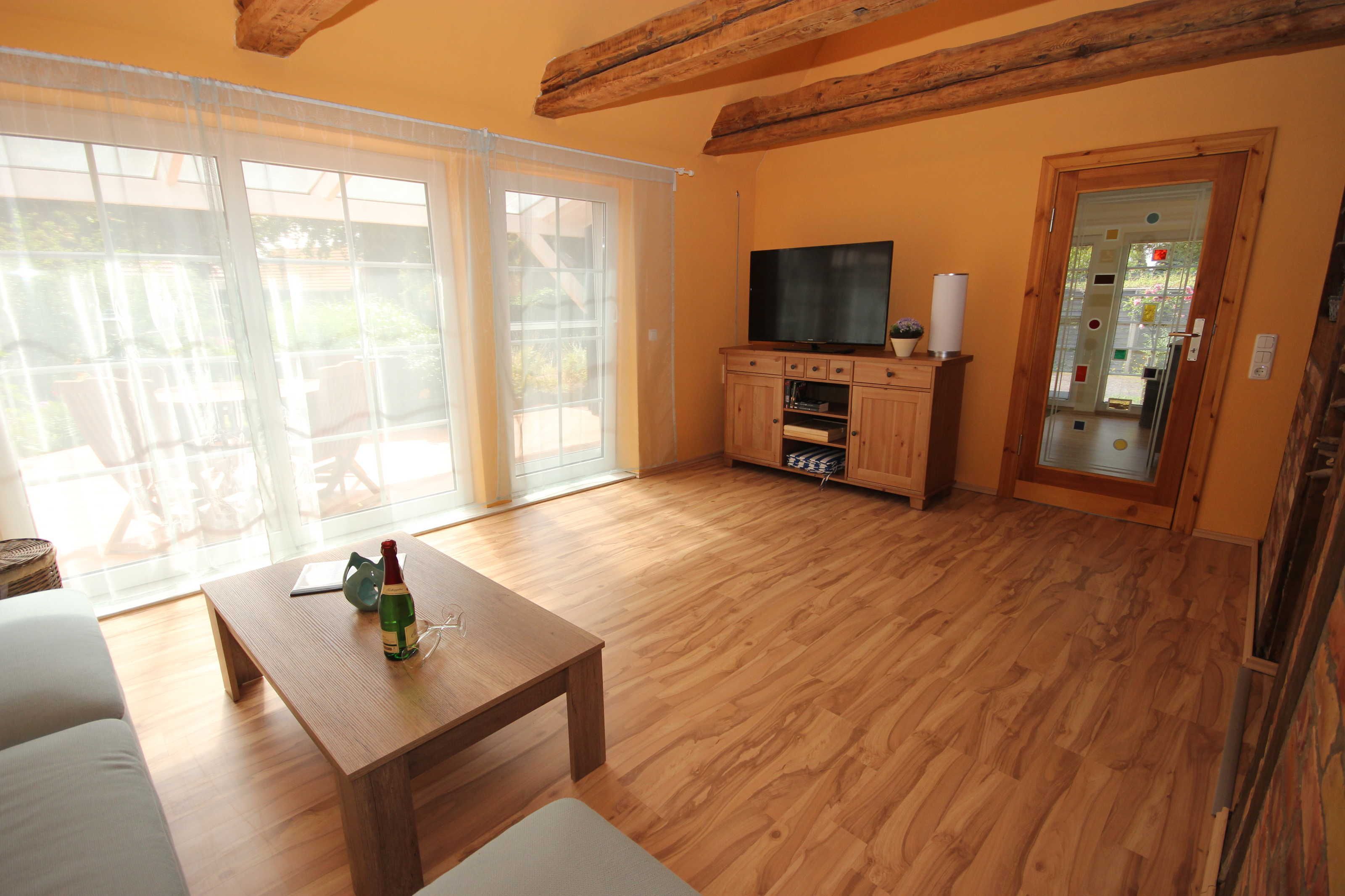 Es handelt sich hierbei um eine gemütliche Ferienwohnung für 4 Personen perfekt geeignet.Der separate Eingang ist über die überdachte Terrasse erreichbar. Das Wohnzimmer hat einen direkten Zugang zur Terrasse und lädt zum gemeinsamen Frühstück ein oder lassen Sie den Abend bei einem guten Glas Wein ausklingen. Die Wohnung wurde mit viel Liebe zum Detail saniert, das alte Fachwerk wurde wieder freigelegt Das Wohnzimmer verfügt über eine gemütliche Eckcouch, Digital TV und kostenlosem WLAN. Das reguläre Schlafzimmer hat ein Doppelbett 1,80 x 2,00 m (getrennte Matratzen). Der 2. Schlafraum wude mit einer Schlafcouch ausgestattet. Vom Wohnzimmer schließt sich eine kleine Leseecke an. Die Küche (Deckenhöhe ca. 1,90 m) wurde mit einer modernen Küchenzeile und Essplatz ausgestattet und lädt zum gemeinsamen Kochen und Beisammensein ein..Das Bad ist mit einer Wanne und DU/ WC ausgestattet. Ihr Urlaubsdomizil befindet sich in ruhiger Lage, fußläufig ca. 10 min vom feinsandigen Ostseestrand und ca. 5 min vom Wustrower Hafen entfernt.Die Bettwäsche ist inklusive, die Handtücher können für 7,00 € pro Set in der Zimmervermittlung dazugebucht werden (1 Badetuch, 1 Handtücher). Alle unsere Wohnungen sind Nichtraucherwohnungen.Haustiere sind herzlich willkommen. Grillen ist nicht erlaubt