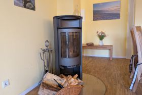 Ausstattung: Bad mit DU/WC: 1, Küchenzeile, Wasserkocher, Toaster, Geschirrspüler, Kaffeemaschine, Gefrierfach im Kühlschrank, TV mit USB/HDMI und Radio, Heizung, Kaminofen
