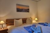 Die Ferienwohnung 2 befindet sich im Erdgeschoss und verfügt über 2 Schlafzimmer mit Doppelbetten (jeweils 1,80 x 2,00 m mit getrennten Matratzen). Die Bettwäsche und Handtücher sind für Sie inklusive.