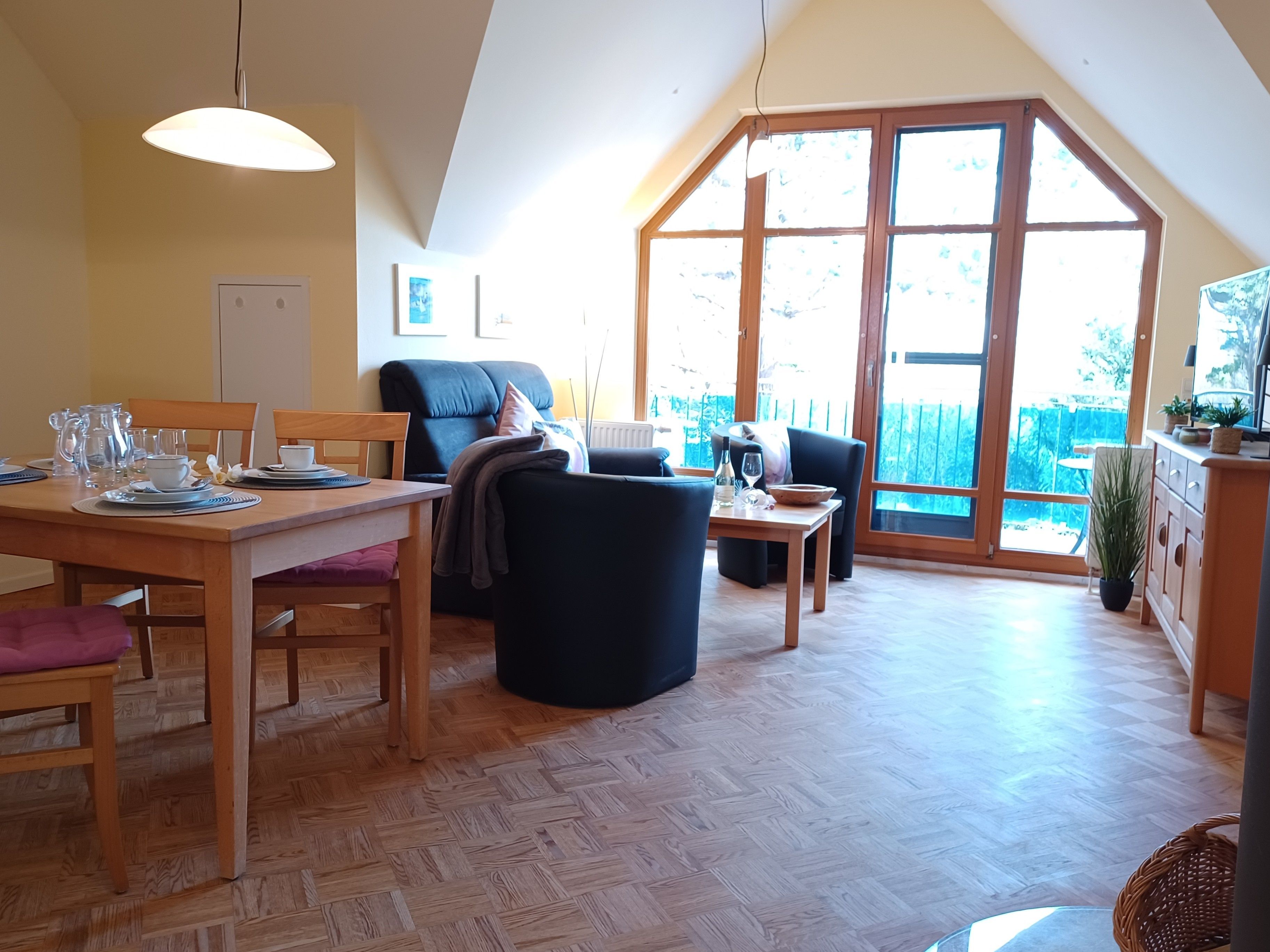 Auf dem seeseitigen Balkon können Sie ruhige Momente verbringen oder mit einem kurzen Gang über die Düne den wunderschönen feinsandigen Ostseestrand genießen. Natürlich ist auch Ihr geliebtes Haustier während Ihres Aufenthaltes herzlich eingeladen.