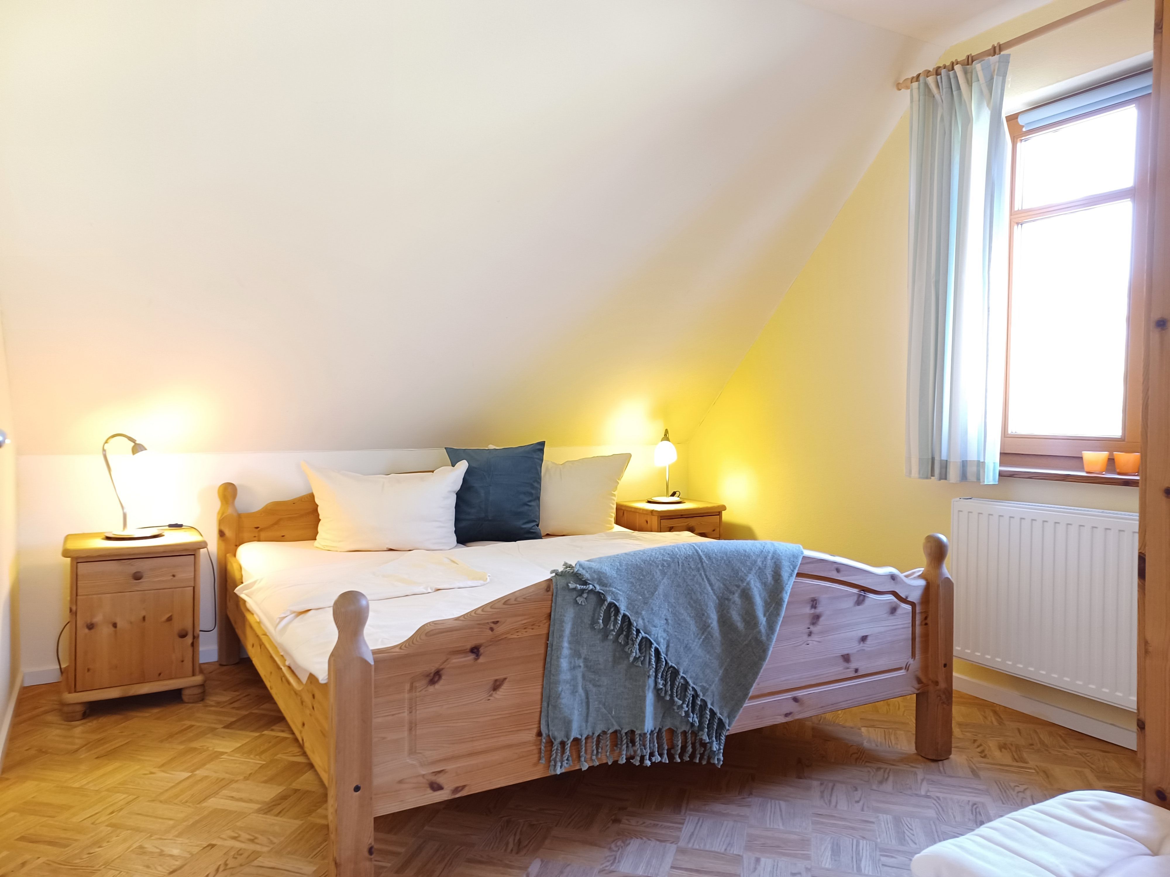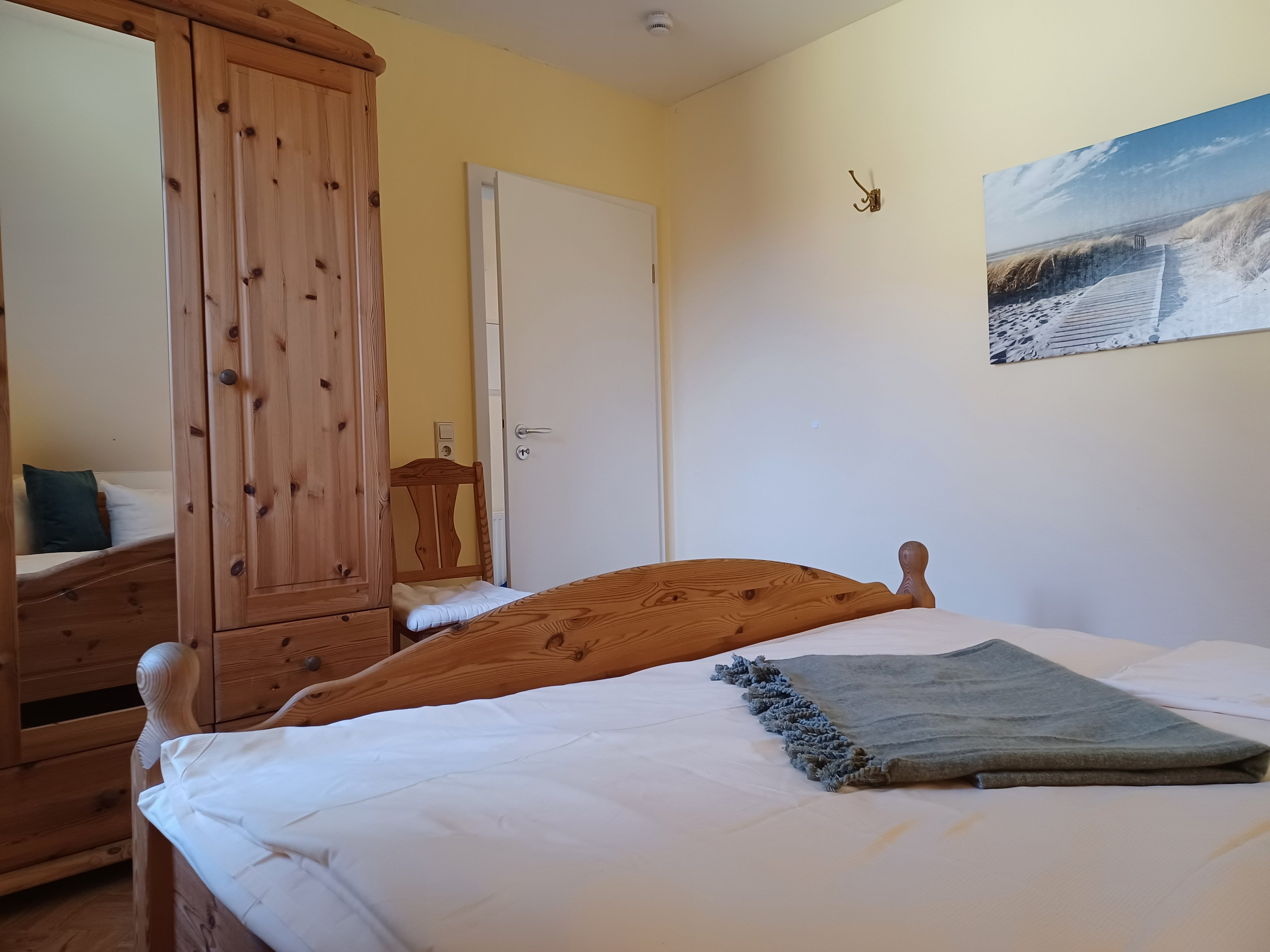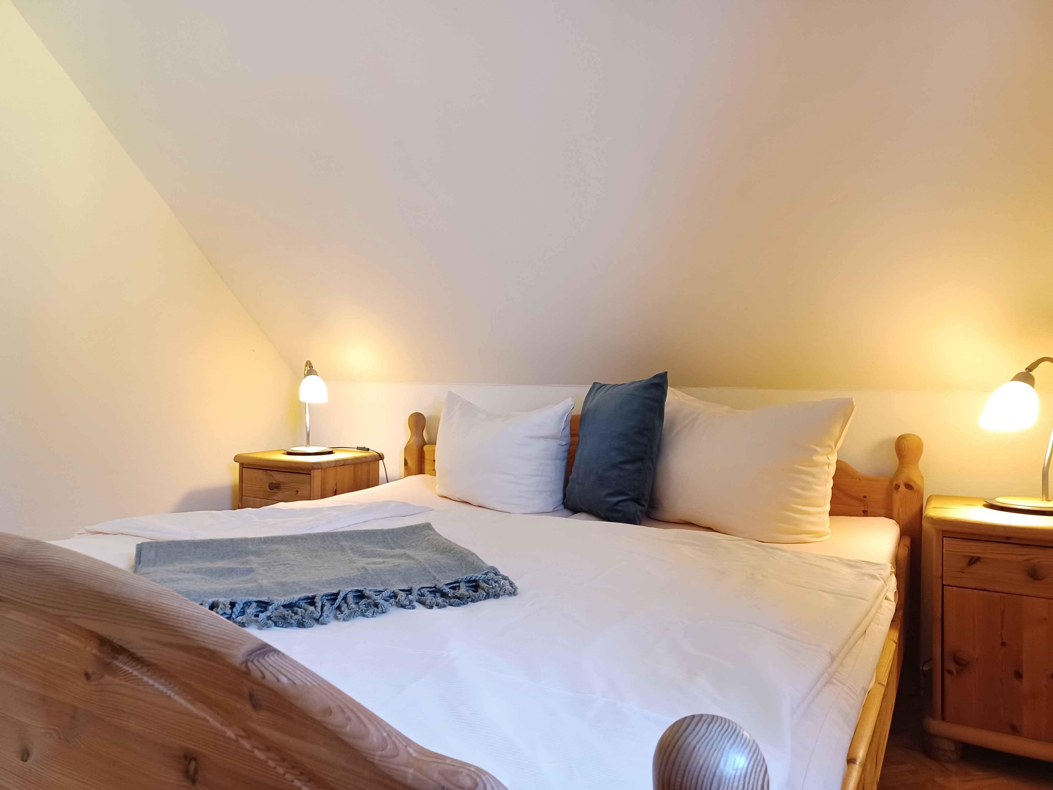 Die Ferienwohnung 4 befindet sich im Obergeschoss und verfügt über 2 Schlafzimmer mit Doppelbetten (jeweils 1,80 x 2,00 m mit getrennten Matratzen). Die Bettwäsche und Handtücher sind für Sie inklusive.