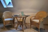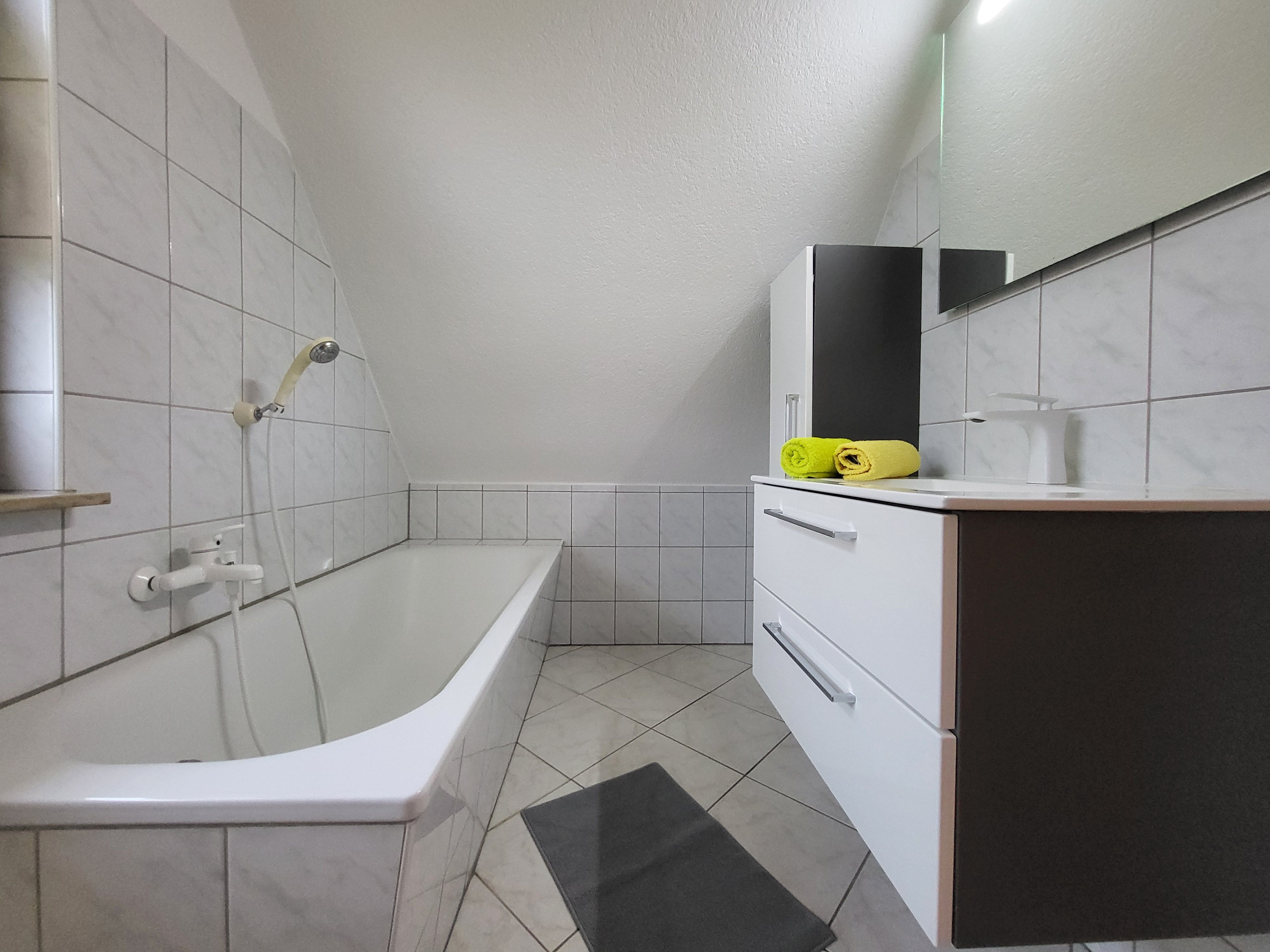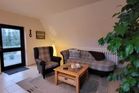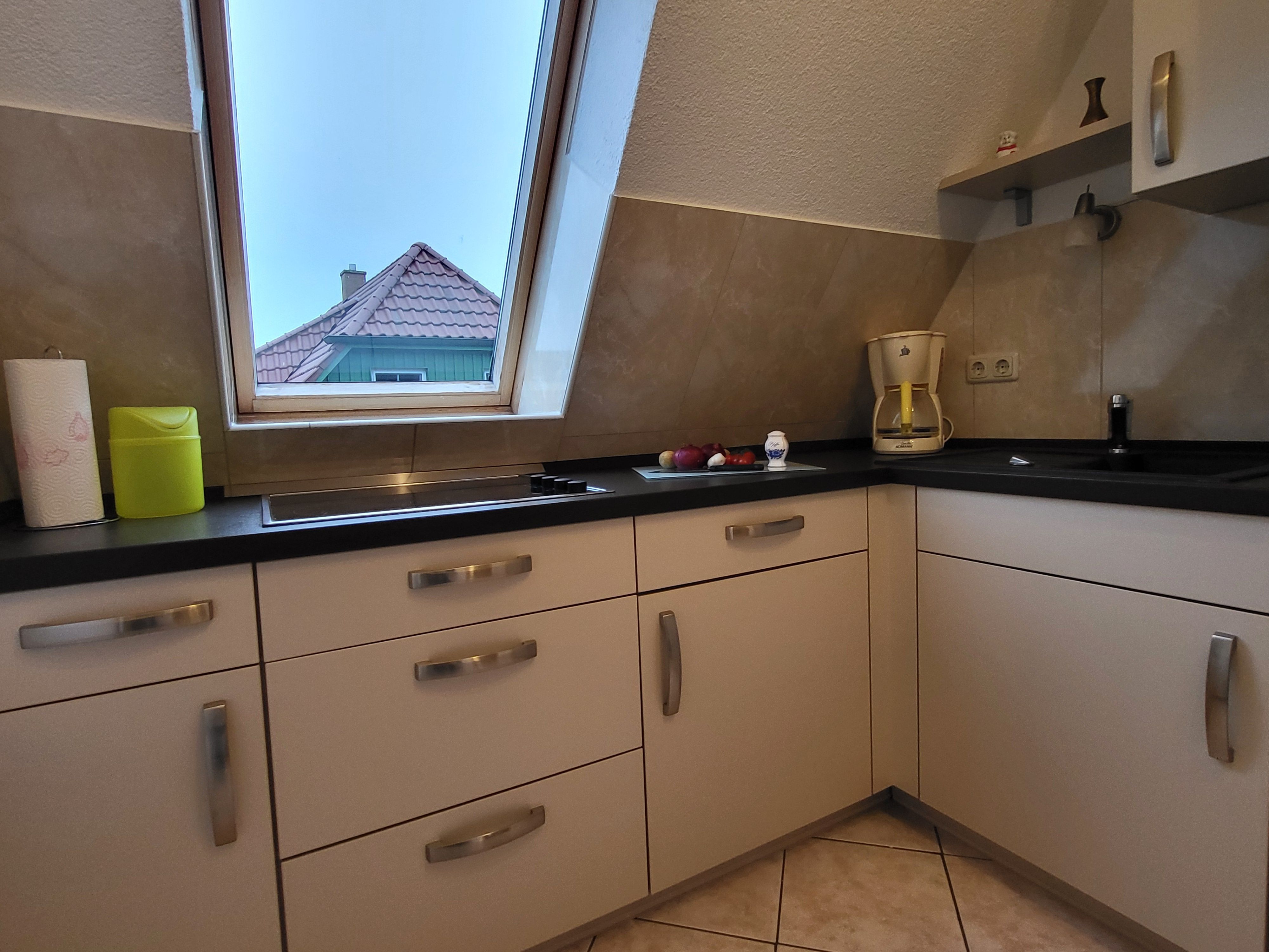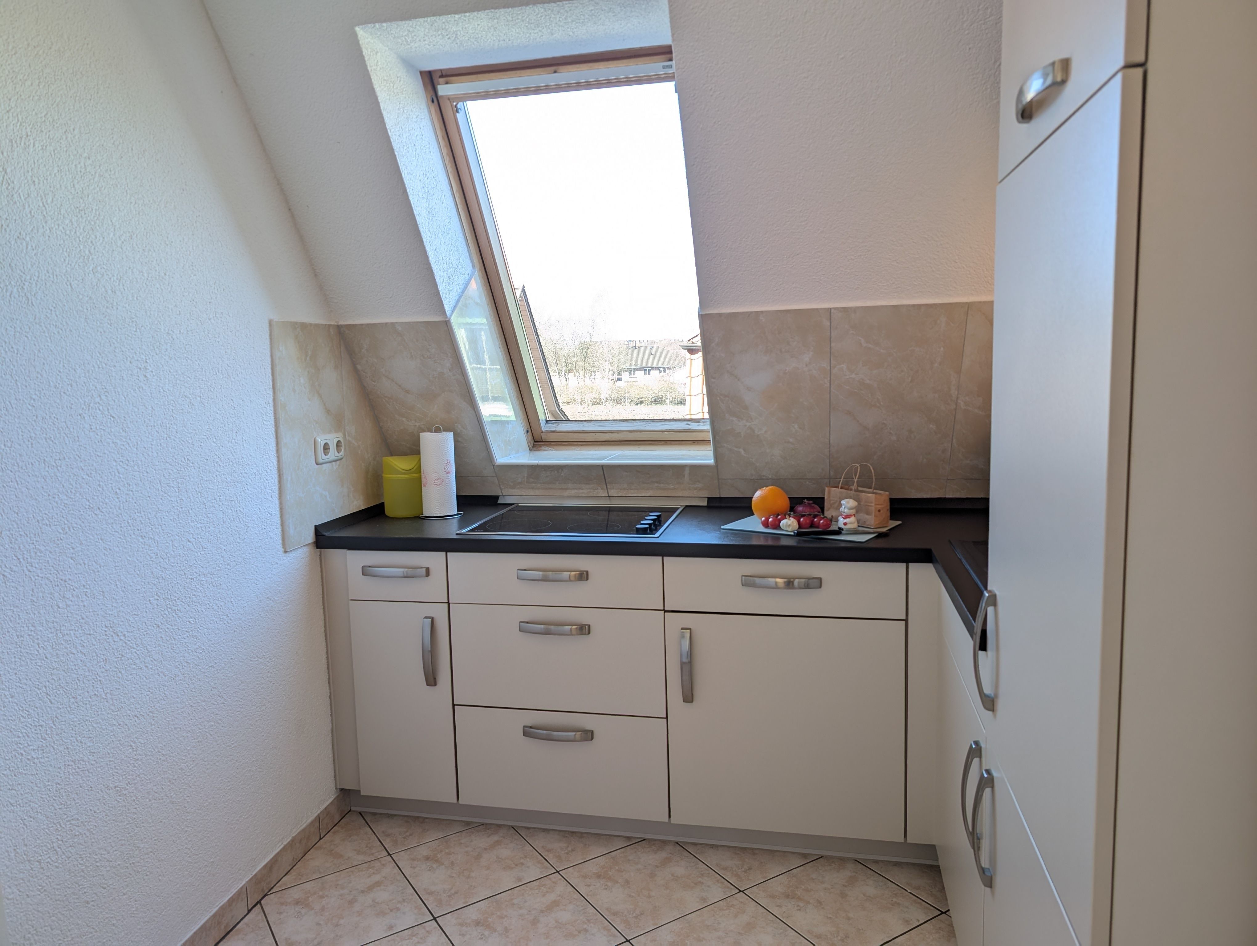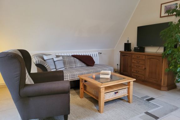 Neue modern und gemütlich eingerichtete Ferienwohnung im Obergeschoss, gelegen in ruhiger Lage am Ortsrand, mit separatem Eingang und Zugang zur Dach-Terrasse die zum entspannen einlädt. Der feinsandige Strand ist etwa 250 m entfernt. Das Wohnzimmer verfügt über eine gemütliche Couch und SAT- TV, sowie einen Essplatz. Im Schlafzimmer steht ein Doppelbett 1,80 x 2,00 m (getrennte Matratzen) bereit. In der Küchenzeile finden Sie ein Cerankochfeld mit 4- Platten, eine Mikrowelle und einen Kühlschrank. Im Bad mit gibt es eine Badewanne. Unsere Wohnung ist eine Nichtraucherwohnung. Das Schlafzimmer und Bad ist mit Mückenschutz ausgestattet. Die Bettwäsche ist inklusive, Handtücher können Sie in der Zimmervermittlung zubuchen für 7,00 € pro Person (1 Badetuch, 1 Handtuch). Ein Parkplatz befindet sich auf dem Grundstück.