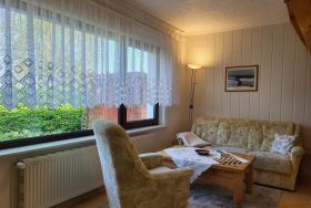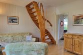 Im Erdgeschoss liegt das Wohnzimmer mit TV und Radio, ein Schlafraum mit Doppelbett 1,80 x 2,00 m (getrennte Matratzen) und die Küche mit Geschirrspüler, Spüle, E-Herd (Ceranfeld, 4 Kochplatten, Backofen) Kühlschrank mit Tiefkühlfach, Wasserkocher, Toaster, Kaffeemaschine, Mikrowelle und Essecke.Das Bad ist ausgestattet mit Dusche und WC. Im Obergeschoss finden Sie die offene Schlafgalerie mit einem Doppelbett 1,80 x 2,00 m (getrennte Matratzen). Die Bettwäsche ist inclusive, Handtücher können in der Zimmervermittlung für 7,00 € pro Person (1 Badetuch, 1 Handtuch) dazugebucht werden.