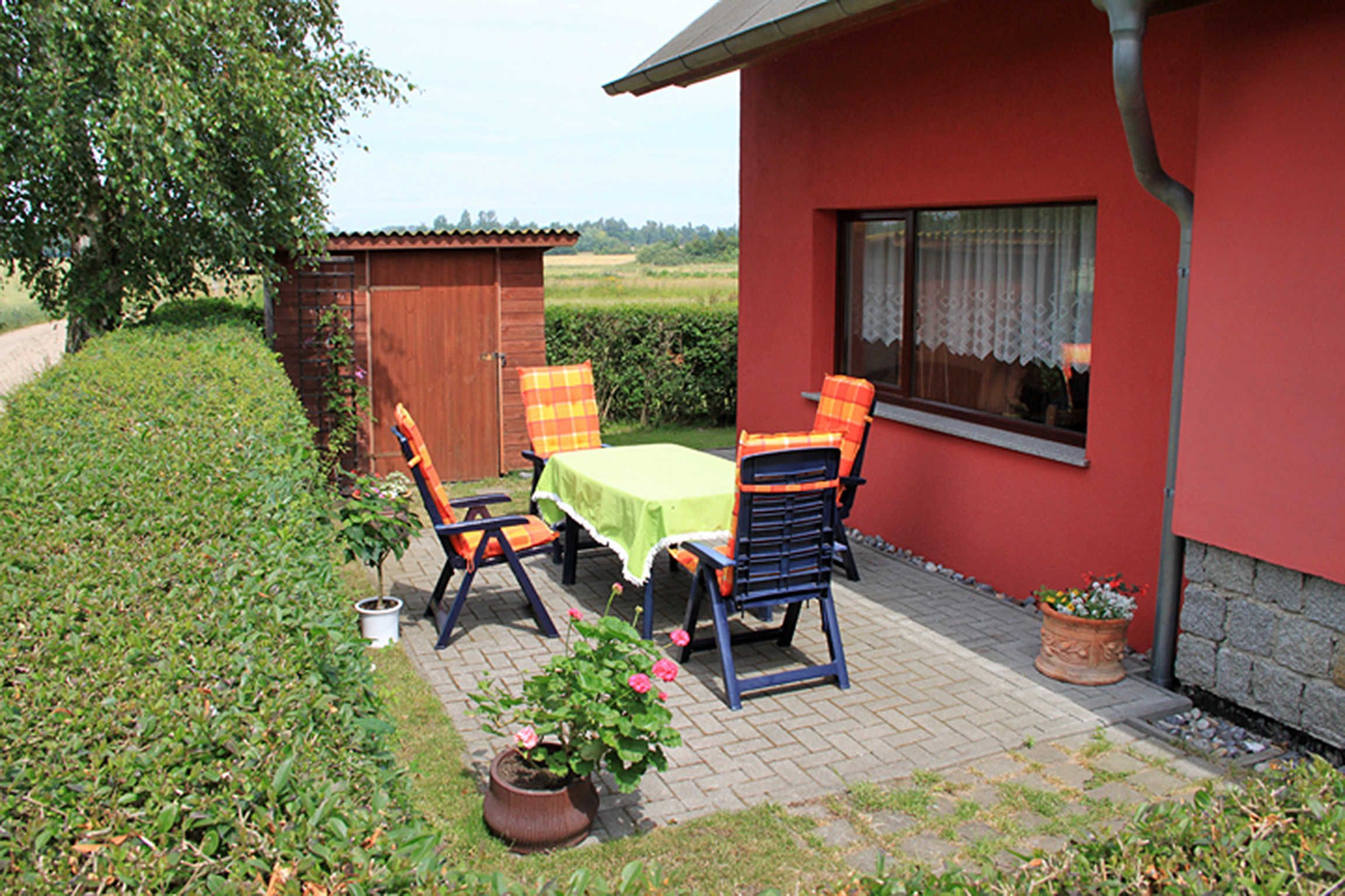 Am Ferienhaus befindet sich eine Terrasse und zusätzlich ein Sitzplatz im Garten mit Gartenmöbeln, der zum entspannen und verweilen einlädt. Lassen Sie den Abend bei einem Glas Wein ausklingen.