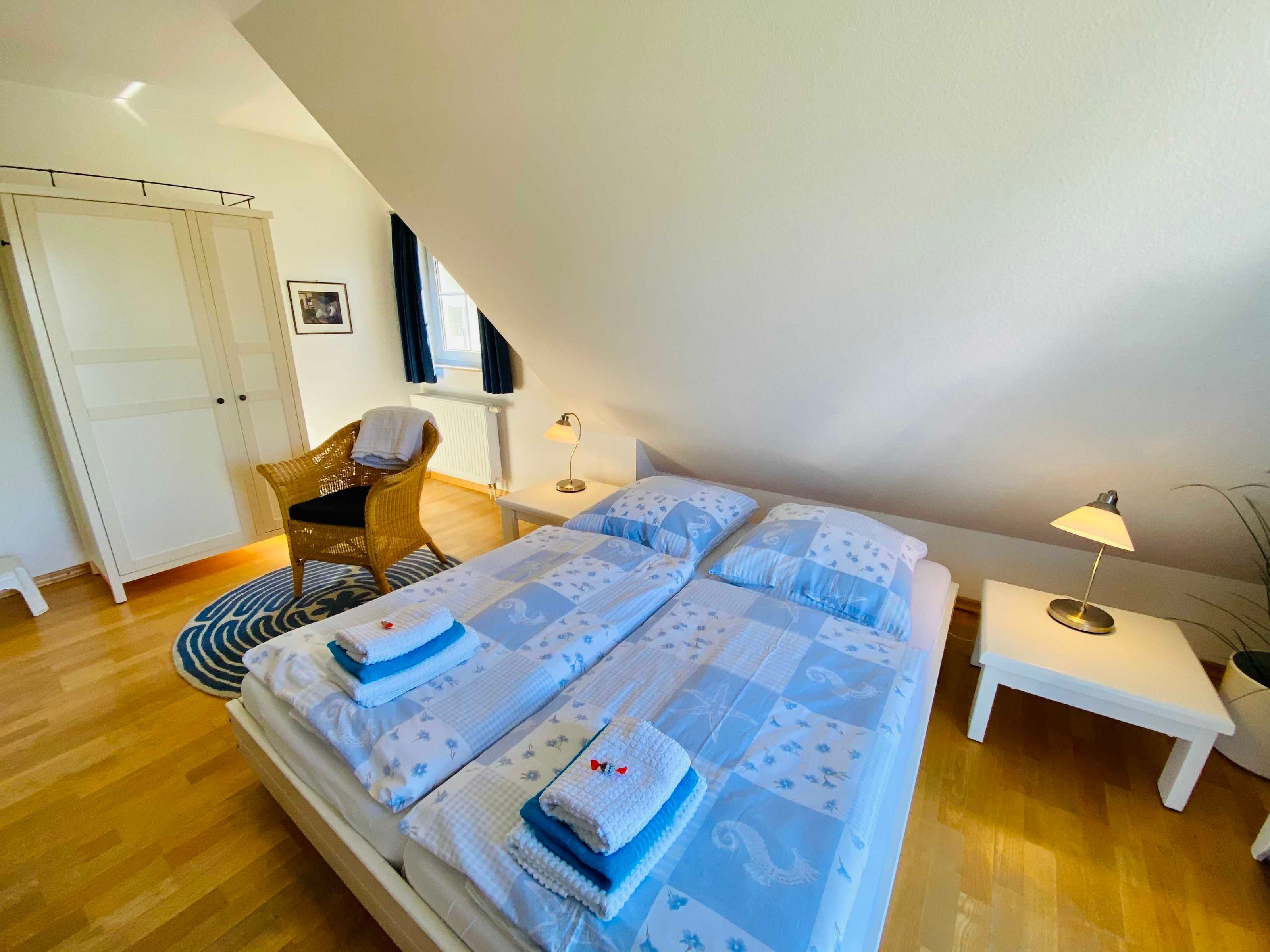 Die Ferienwohnung ist im oberen Bereich mit Echtholzparkett ausgelegt und insgesamt hochwertig ausgestattet. Zur Ferienwohnung gehört ein Stellplatz am Haus, sowie eine schöne Terrasse, von der aus man das Grundstück genießen kann.