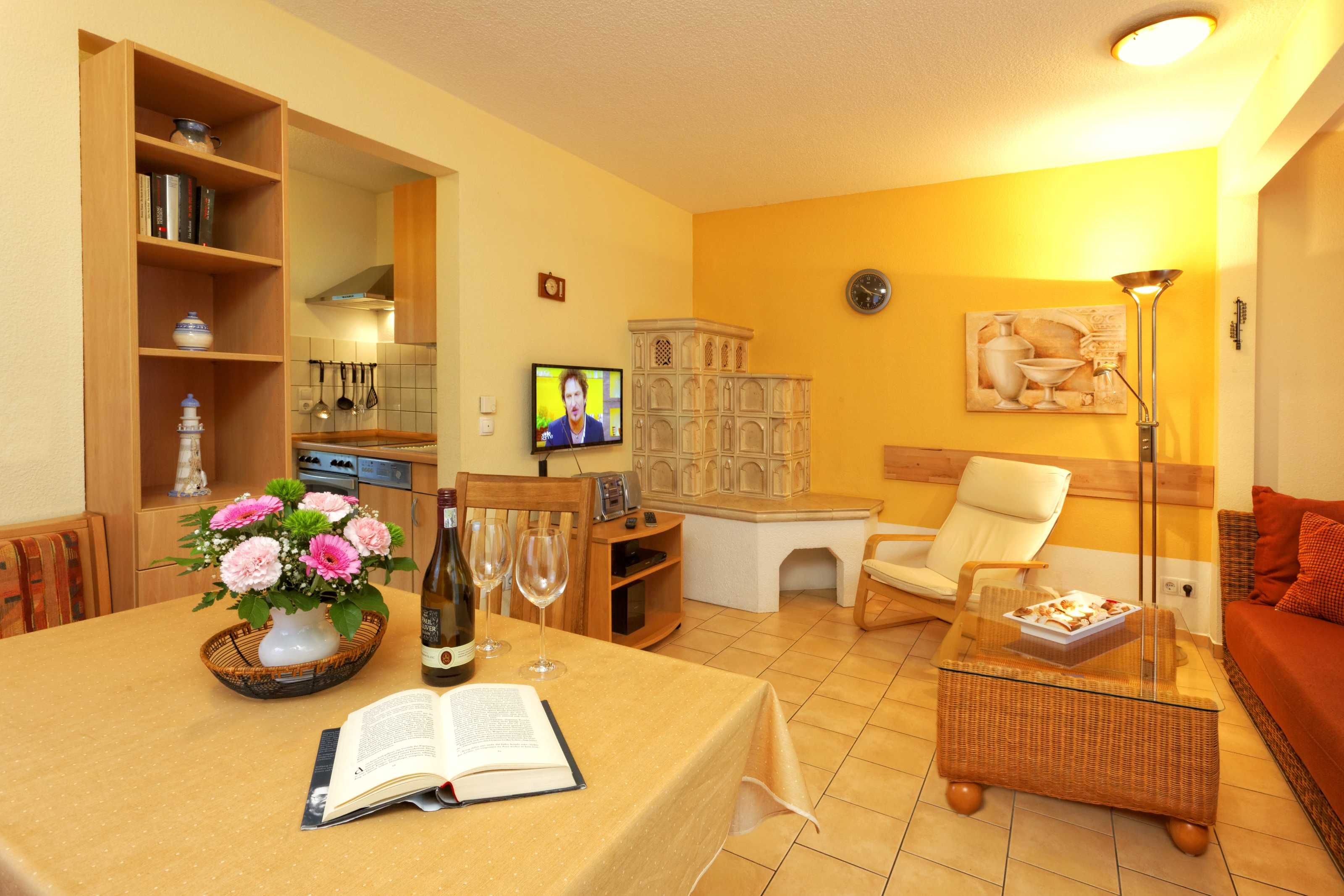 1 Wohnraum + elektr. Kaminofen & Küche mit Essbereich