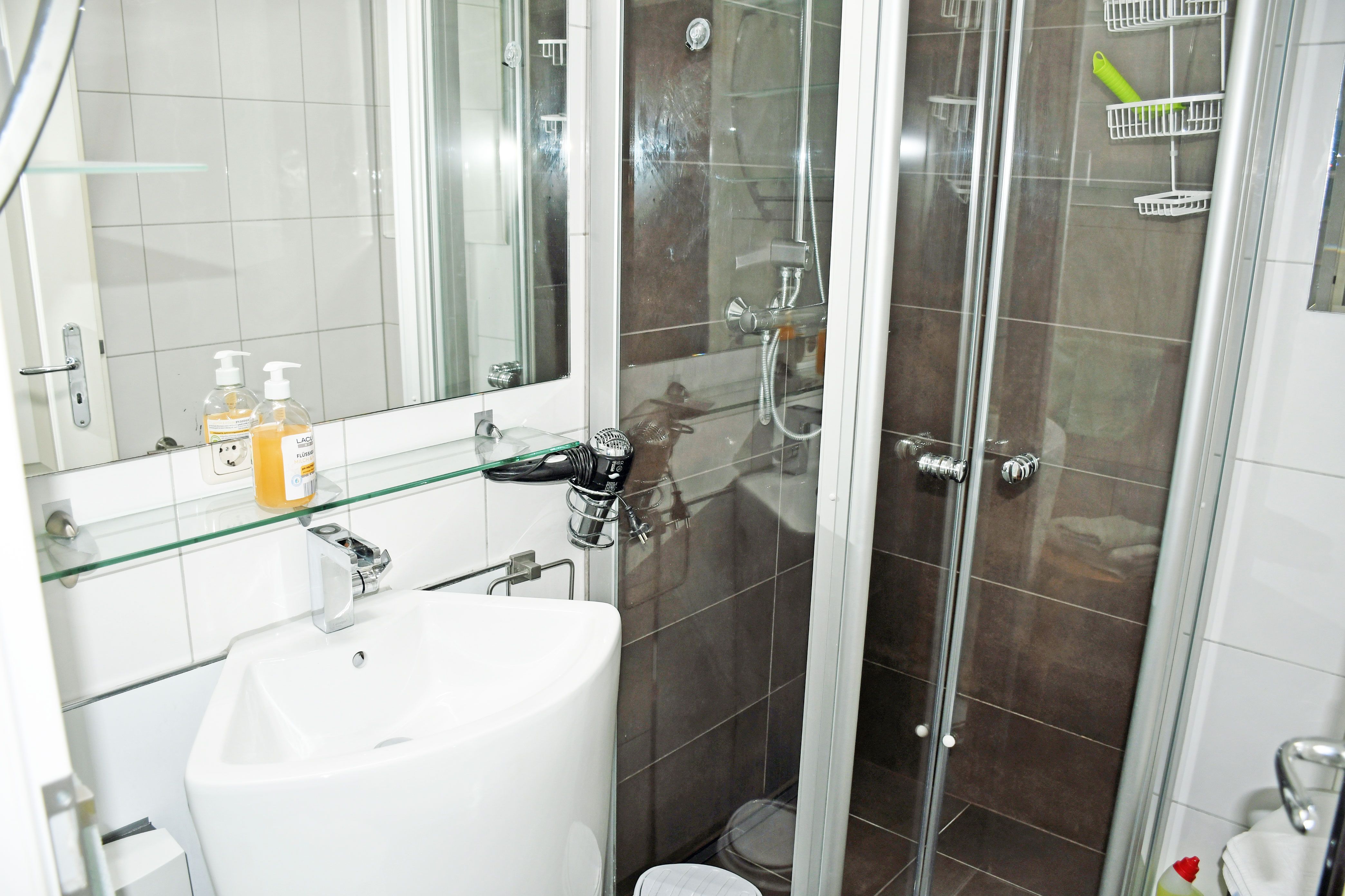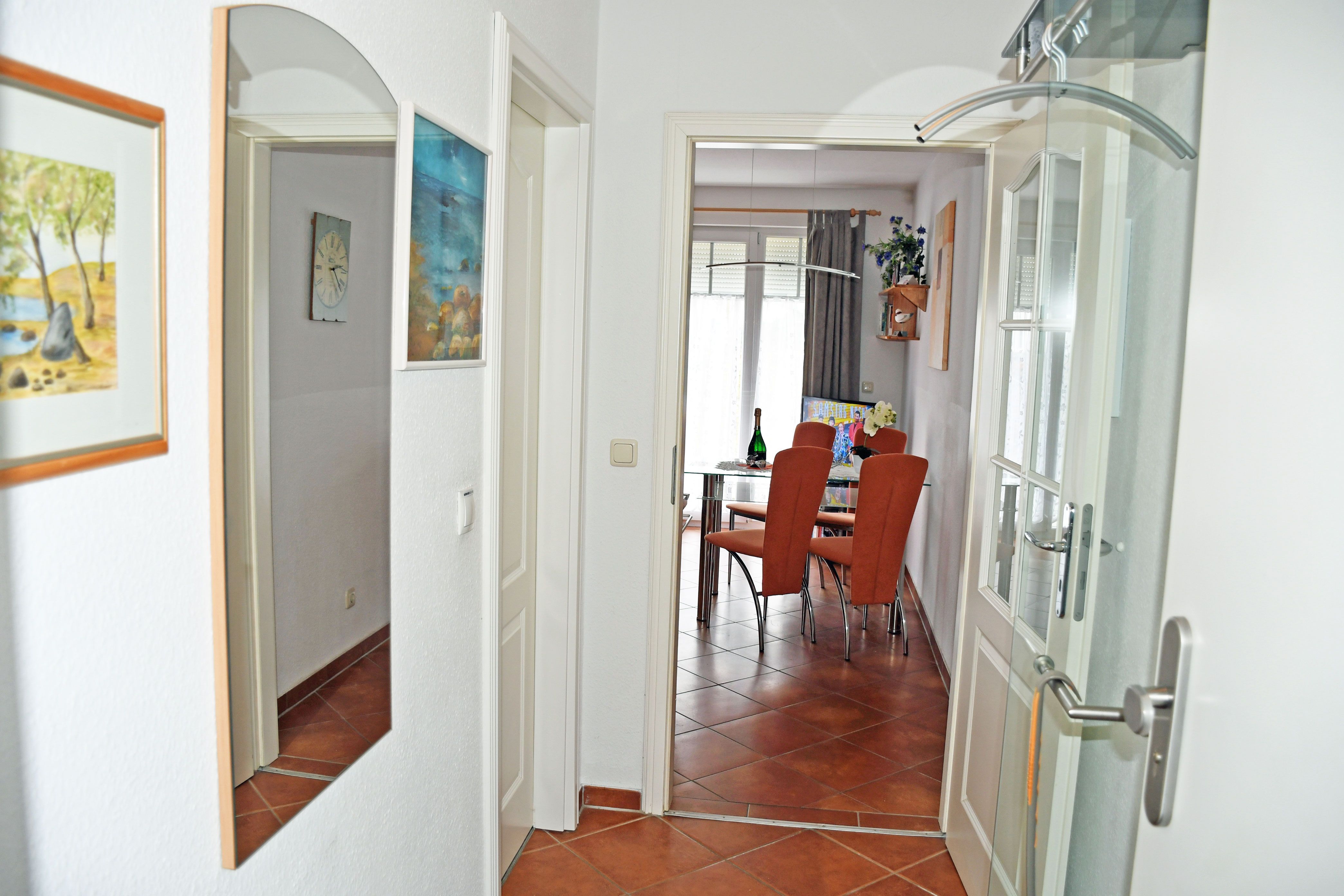 Sie werden von einer hellen und freundlichen 2-Zimmer Ferienwohnung begrüßt, die über einen kleinen Flur betreten wird. Von hier aus kommen Sie in die Du/WC und durch eine Glastür in den Wohn-Küchenbereich. WLAN ist kostenlos vorhanden.