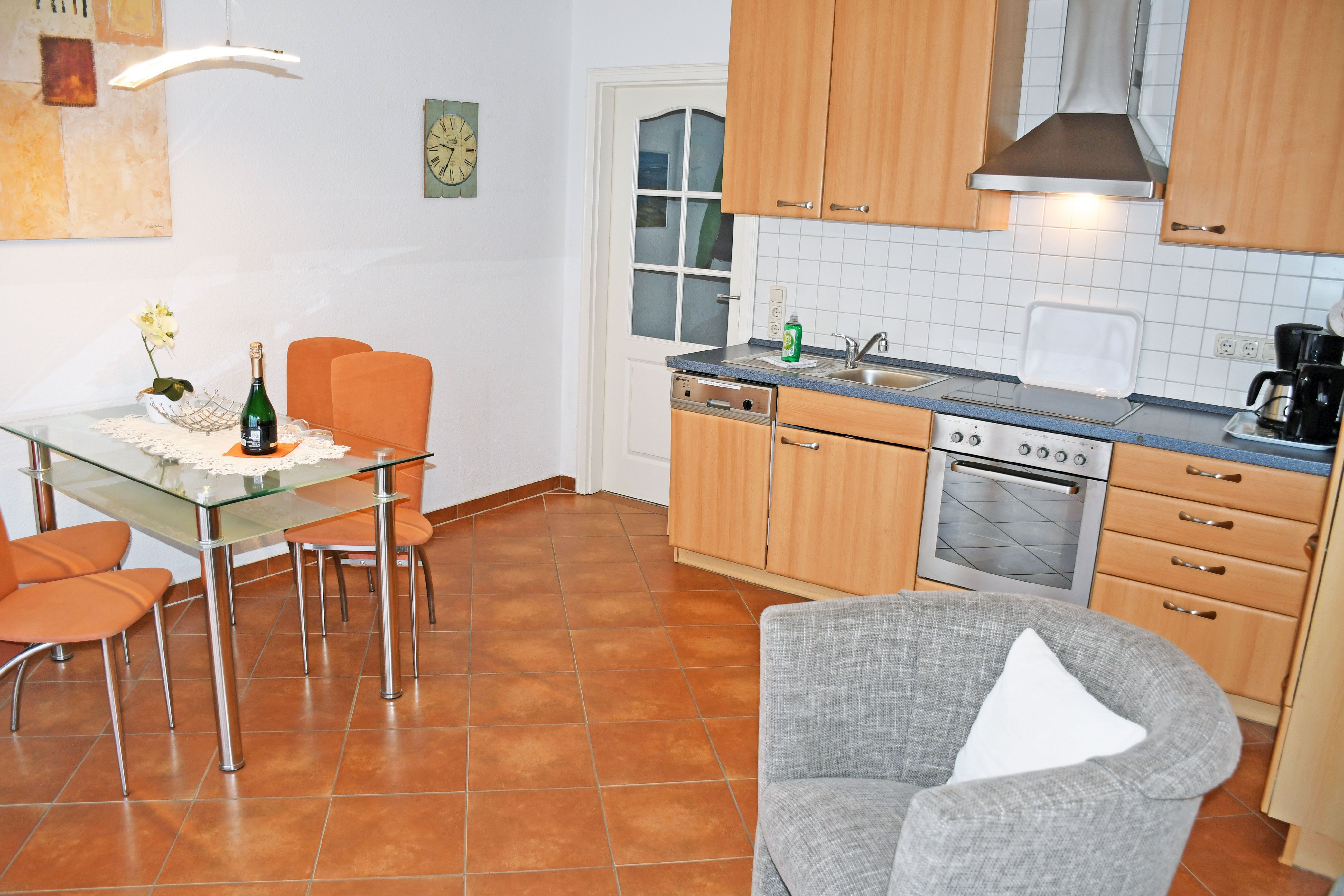 Im Wäschepaket enthalten sind, pro Person zwei Handtücher, ein Duschbadetuch sowie ein Geschirrtuch und eine Duschvorlage(Grundausstattung). Eine moderne Wohnküche mit Vollausstattung Cerankochfeld, Kühlschrank incl. TK-Fach, Geschirrspülmaschine, Mikrowelle, Kaffeemaschine, Wasser- und Eierkocher, Toaster ect.