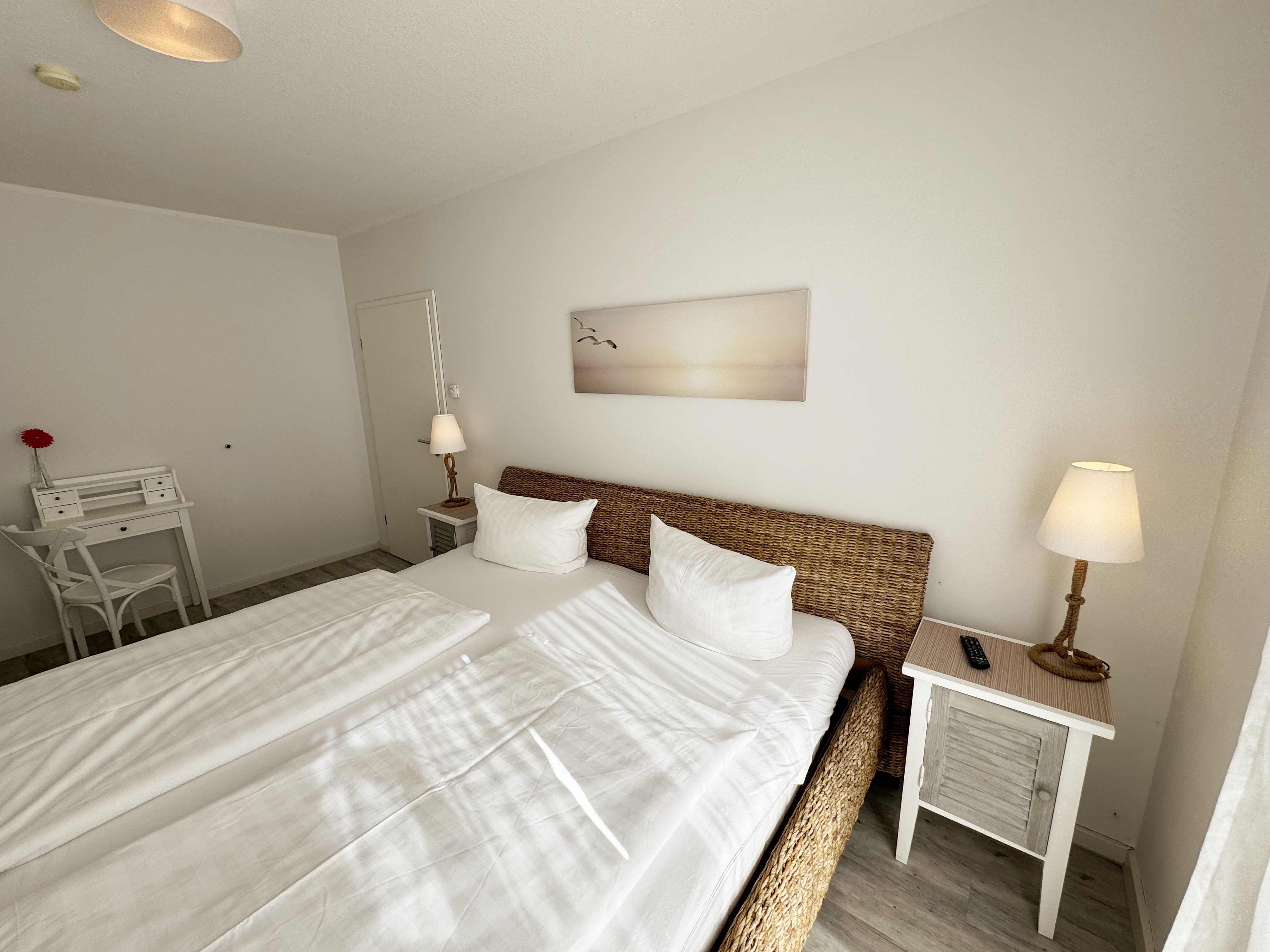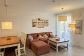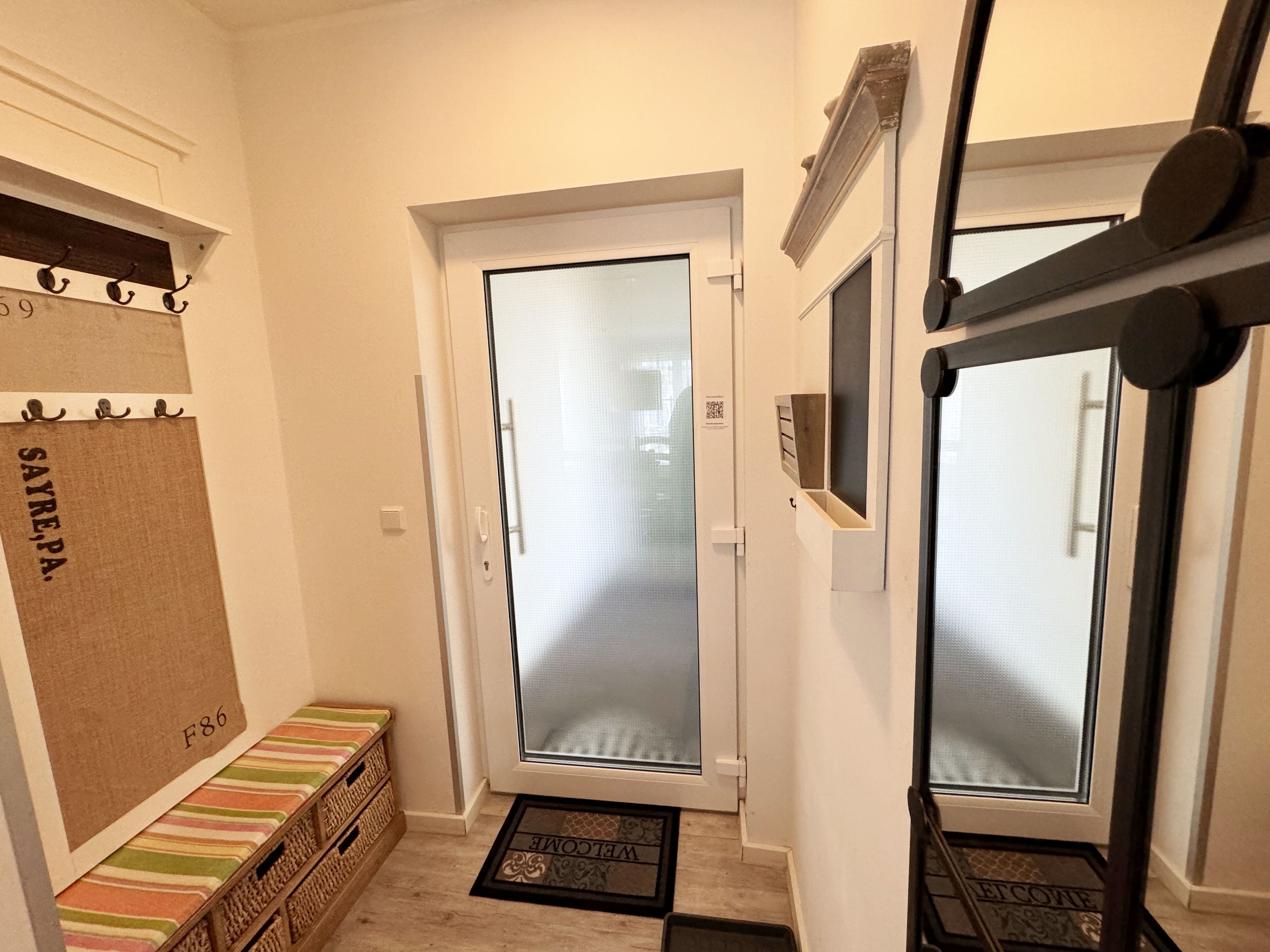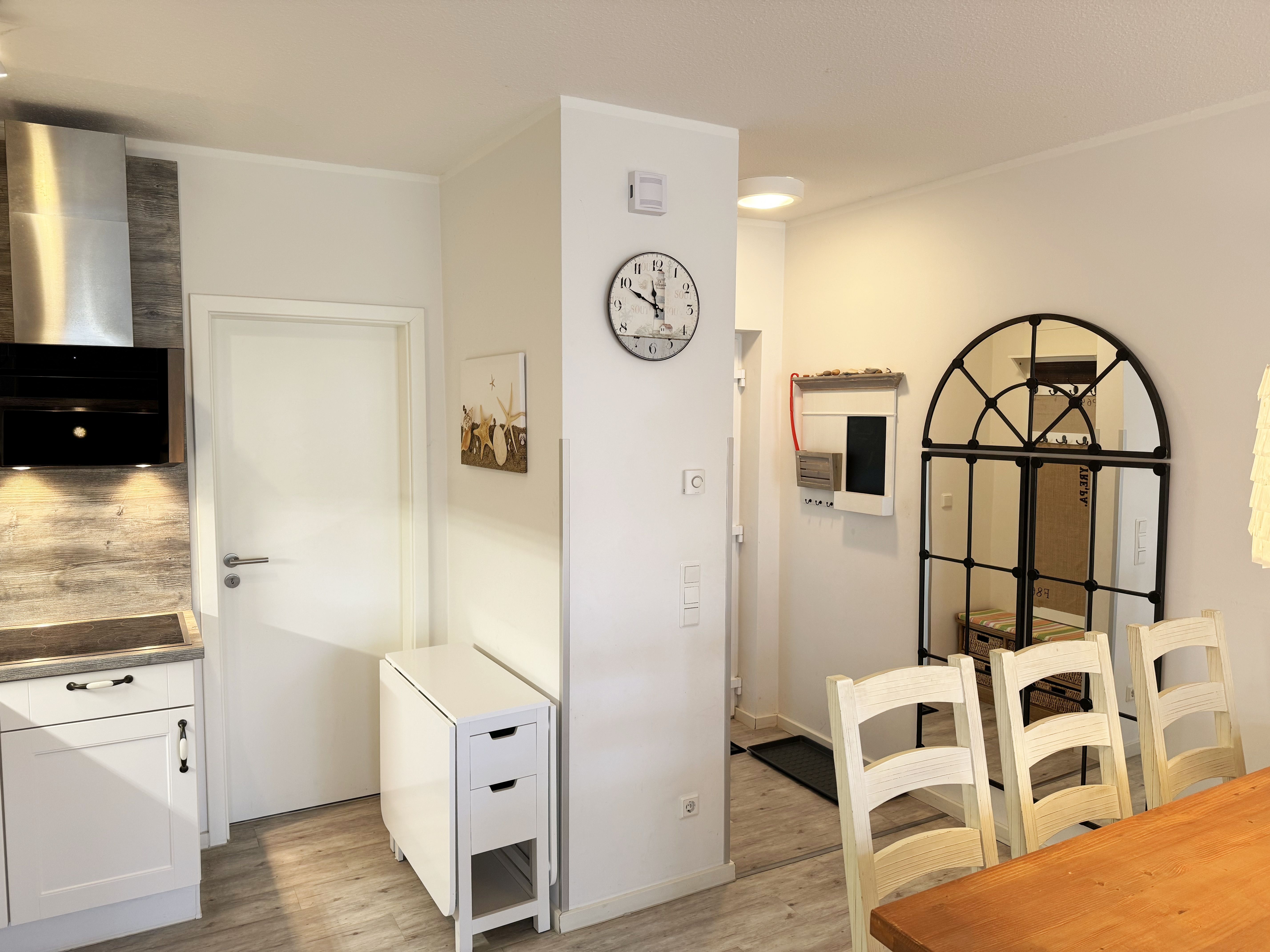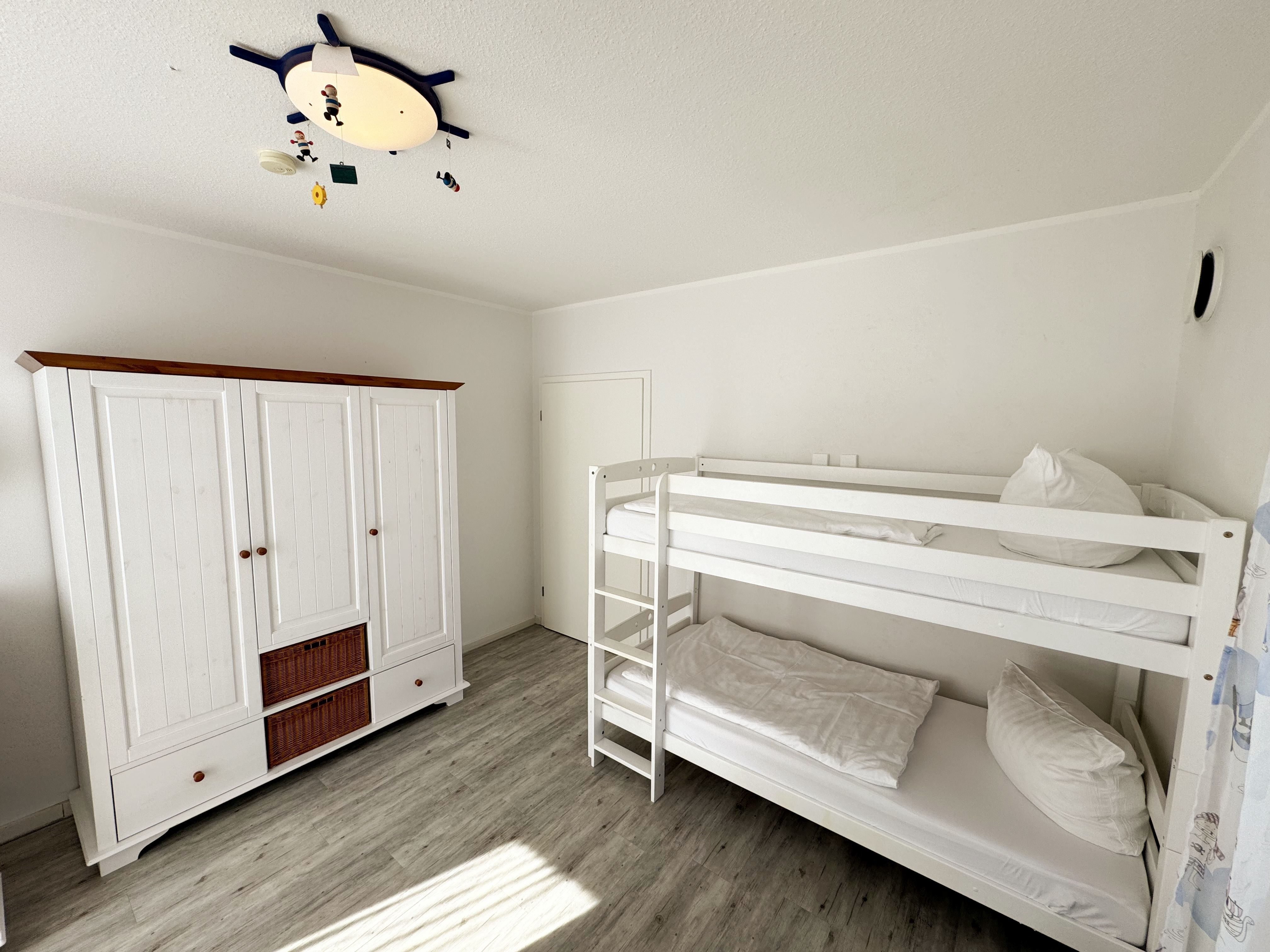 Die Ferienwohnung ist mit einer Be- und Entlüftungsanlage, elektrischen Rollläden, großen Terrassenfenstern und -Türen sowie Fußbodenheizung und in allen Räumen mit Vinylboden und Fliesen ausgestattetet. Sie ist liebevoll im maritimen Stil mit hochwertigen Massivholzmöbeln eingerichtet. Die Wohnung ist für max. 4 Erwachsene und 2 Kinder bis 17 Jahre. Dem freundlichen Eingangsbereich mit Garderobe, Sitzbank, Spiegel und Memoboard schließt sich das Wohn-Esszimmer mit offener Küchenzeile an. Die komfortable Küchenzeile verfügt über einen Backofen, eine Kühl-Gefrierkombination, Geschirrspüler, Spüle, Mikrowelle, Kaffeemaschine, Wasserkocher, Toaster, Cerankochfeld sowie diverse Küchenutensilien. Im angrenzenden Hauswirtschaftsraum befindet sich eine Waschmaschine zur Inklusiven Nutzung. Der großzügige Essbereich besticht durch einen großen Tisch mit 6 Stühlen sowie zwei Kinderhochstühle. Im gemütlichen Wohnbereich lädt das große Ecksofa zum Entspannen und Fernsehen ein. Dafür stehen ein 4K-TV mit Soundbar, Smart-TV und Blue-Ray/DVD-Player und Leselampe bereit. Auch im Urlaub brauchen Sie auf einen Internetanschluß (WLAN) nicht verzichten. Dieser ist für Sie inklusive. Die Vitrine beherbergt eine kleine Spiele- und Filmeauswahl. Das große Schlafzimmer bietet neben einem Sekretär und einem großen Kleiderschrank ein King-Size Doppelbett mit zwei 1,00m x 2,00m Matratzen sowie einer Komforthöhe von 60cm mit verstellbaren Lattenrosten, Nachttisch-Konsolen und einen Smart-TV. Das abenteuerliche Kinderschlafzimmer hält vier kuschelige Kojen in zwei Etagenbetten für wagemutige Piraten oder Prinzessinnen bereit. Genügend Stauraum für das Hab und Gut sind in der Wickelkommode und dem großen Kleiderschrank zu finden. Eine große Schatzkiste mit Spielsachen lädt zum Entdecken ein. Alle Betten sind ausgestattet mit Komfort-Kaltschaum-Matratzen. Zwei Kinderreisebetten mit zusätzlichen Matratzen sind inklusive. Das Tageslicht - Bad hat neben einem Waschtisch, Handtuchheizung, Fön, beleuchtetem Spiegel, Kosmetikspiegel, WC und begehbarer Dusche eine zusätzliche Belüftung. Die nahezu barrierefrei zu erreichenden, drei großen Terrassen in Ost- oder Südausrichtung mit Terrassenmöbeln bieten genügend Platz zum gemeinsamen Spielen, Erholen und Grillen. Zur komfortablen, Allergiker freundlichen Ferienwohnung gehören neben eigenem PKW-Stellplatz Nr. 03, ein eigener Schuppen mit Unterstellmöglichkeiten für Fahrräder, ein mobiler Kugelgrill und ein Bollerwagen. Haustiere sind nicht erlaubt. Die Erstausstattung eines Wäschepaketes (komplette Bettwäsche, 1 Duschhandtuch, 2 kleine Handtücher) können Sie bis 14 Tage vor Anreise gegen einen Aufpreis dazu buchen oder durch eigene ergänzen. Ab 2 gebuchten Paketen erhalten Sie einmalig 1 Geschirrhandtuch und 1 Duschvorleger hinzu. Wir freuen uns auf Ihren Besuch.