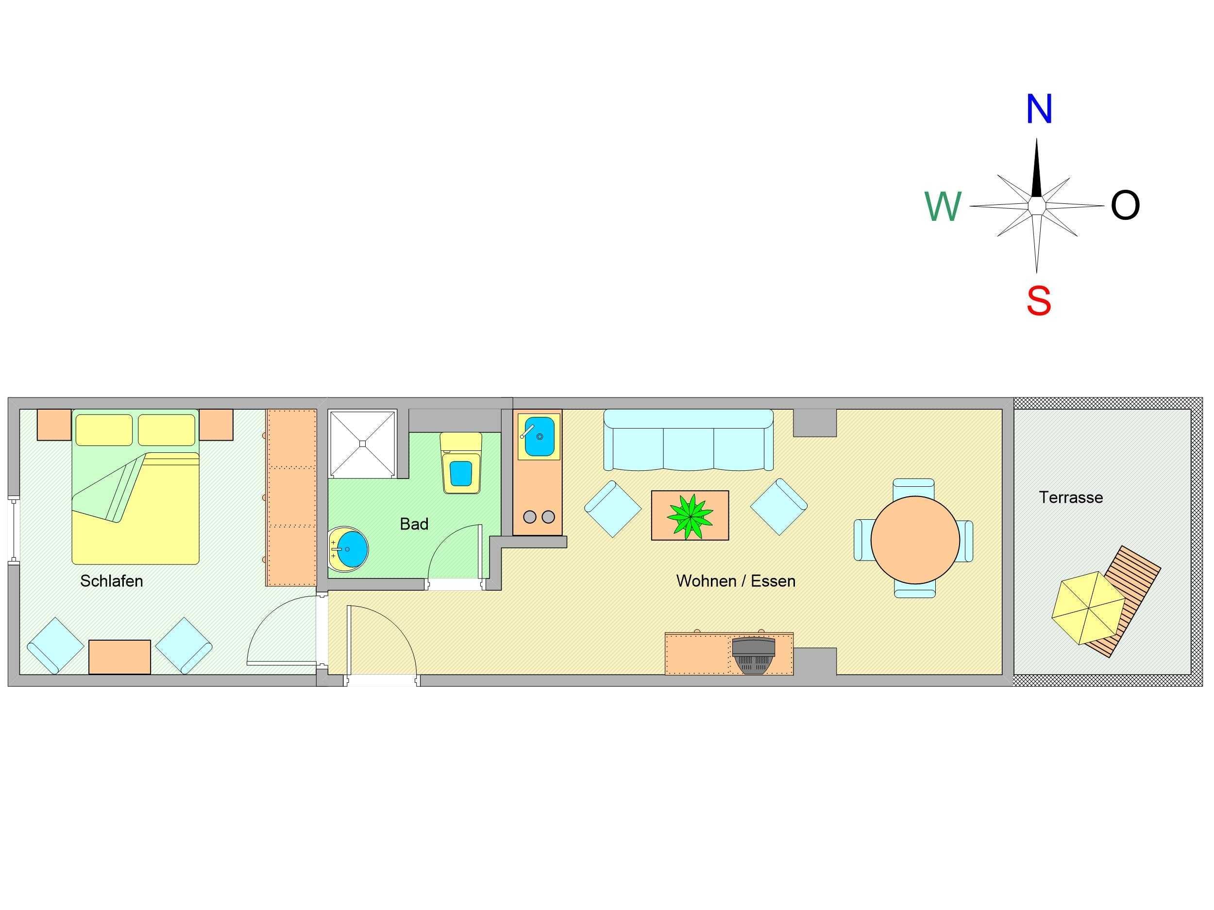 HELLE FREUNDLICHE 2-RAUM-FEWO FÜR 2-3 PERSONEN MIT OST-TERRASSE