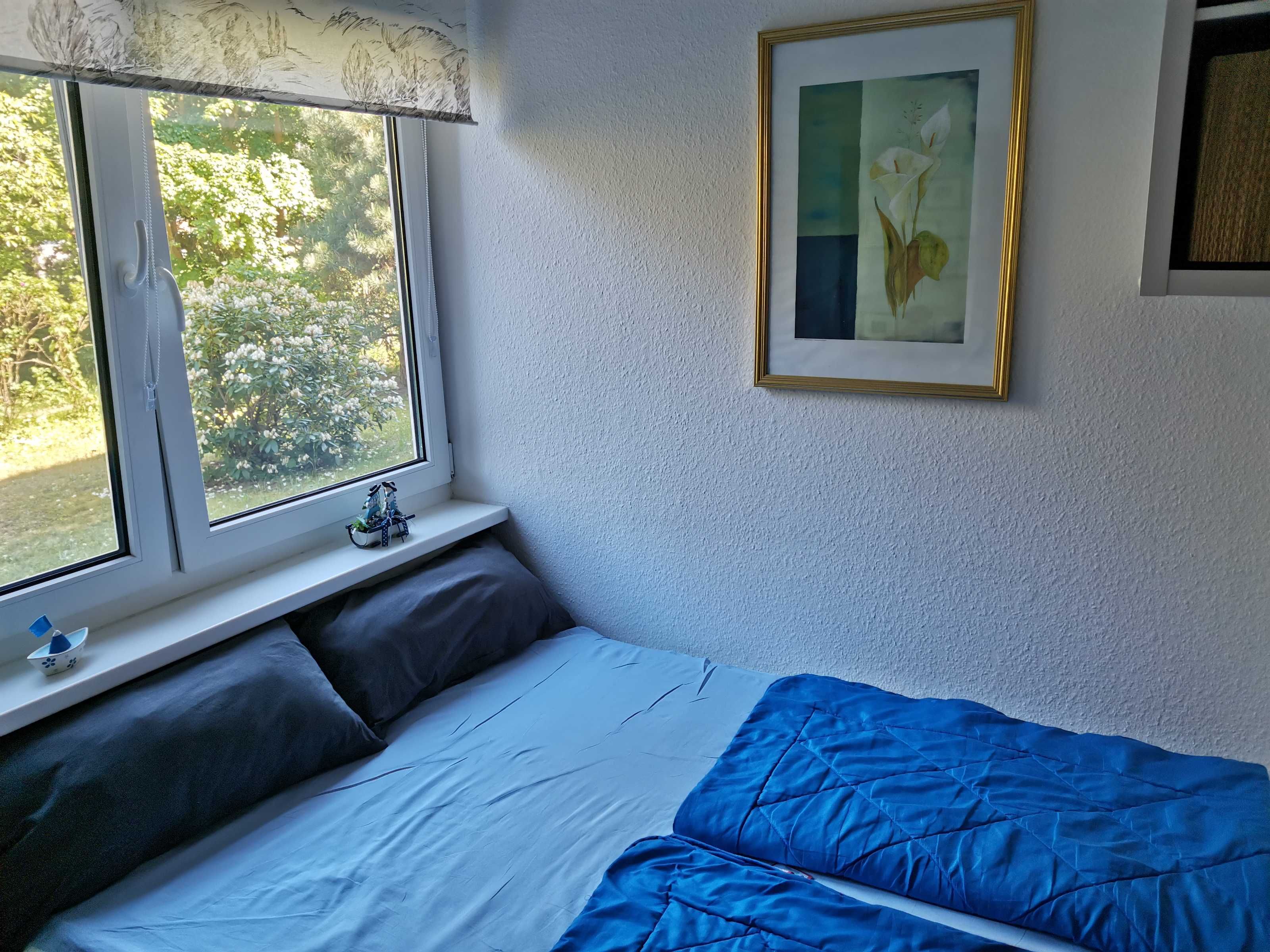 Im kleinen Schlafzimmer steht Ihnen ein Polsterbett (Liegefläche 1,40 x 2,00 m) und ein Kleiderschrank zur Verfügung.
