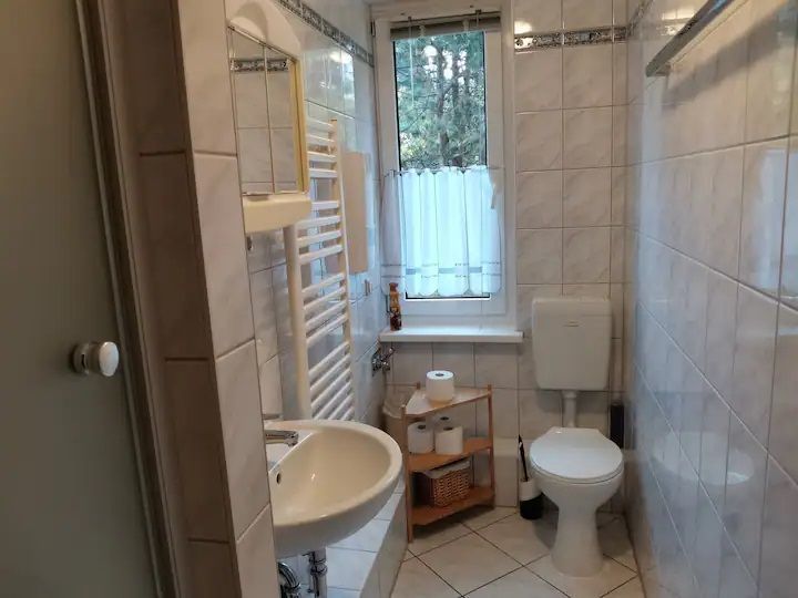 Ein Duschbad mit Zugang vom Flur aus ist vorhanden.