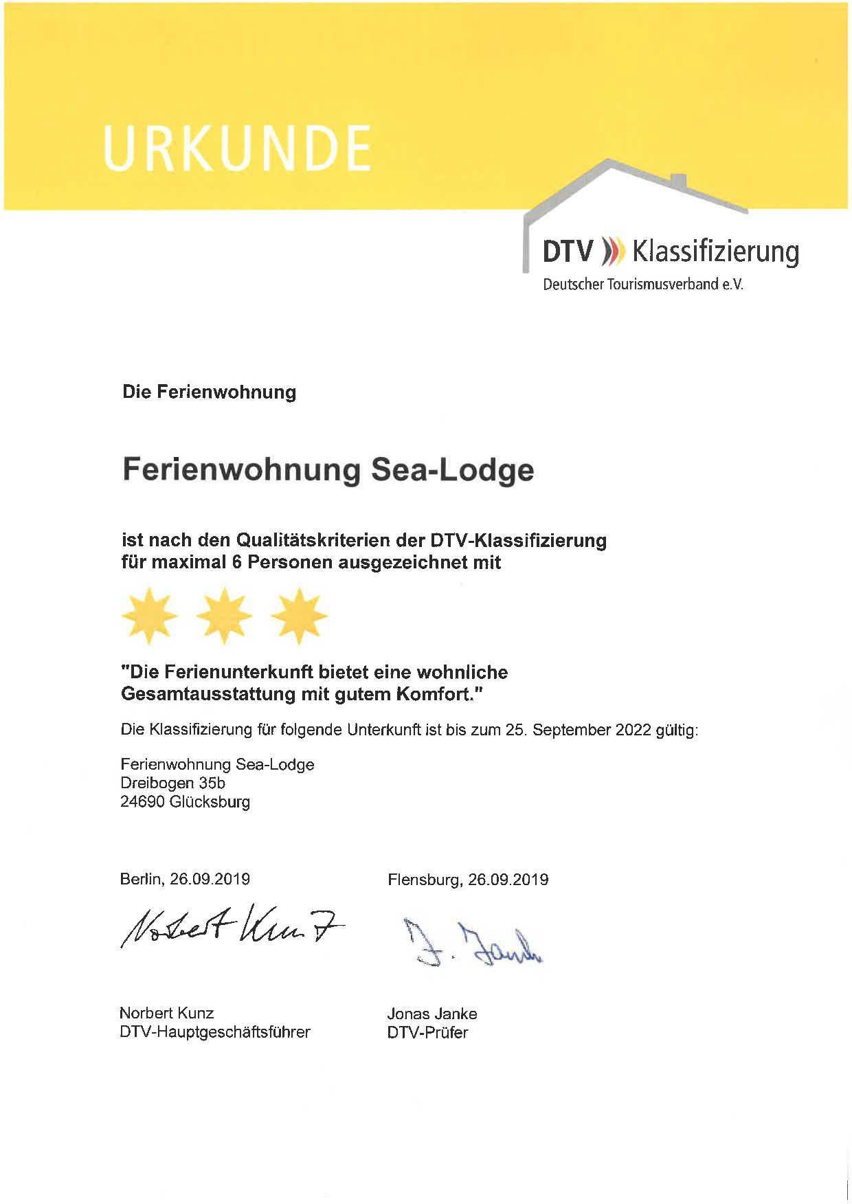 • Ferienwohnung Sea-Lodge 3 Sterne DTV-Klassifizierung