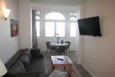 Unsere Appartements des Typ 2 bestehen aus einem Wohnzimmer mit einer komplett eingerichteten Einbauküche mit Eierkocher, Filterkaffemaschine, Kaffepadmaschine, Toaster, Wasserkocher, 4 Platten-Cerankochfeld, Backofen,Kühlschrank, Geschirrspülautomat, ausreichend Geschirr und Besteck, Salz und Pfeffer, Zucker, Geschirrtuch, u.v.m. .Sie finden bei ihrer Anreise auch diverse Getränke im Kühlschrank, die Sie gegen Entgeld gerne nutzen können.Im Wohnzimmer befindet sich ein Schreibtisch, eine gemütliche Wohnlandschaft, die dann auch für 2 Aufbettungen genutzt werden kann, einen grossen Flatscreen-TV und eine Multifunktionanlage, mit der Sie auch CD' s & DVD's abspielen können. Wir leihen Ihnen auch gerne eine DVD über die schöne Insel Rügen aus.