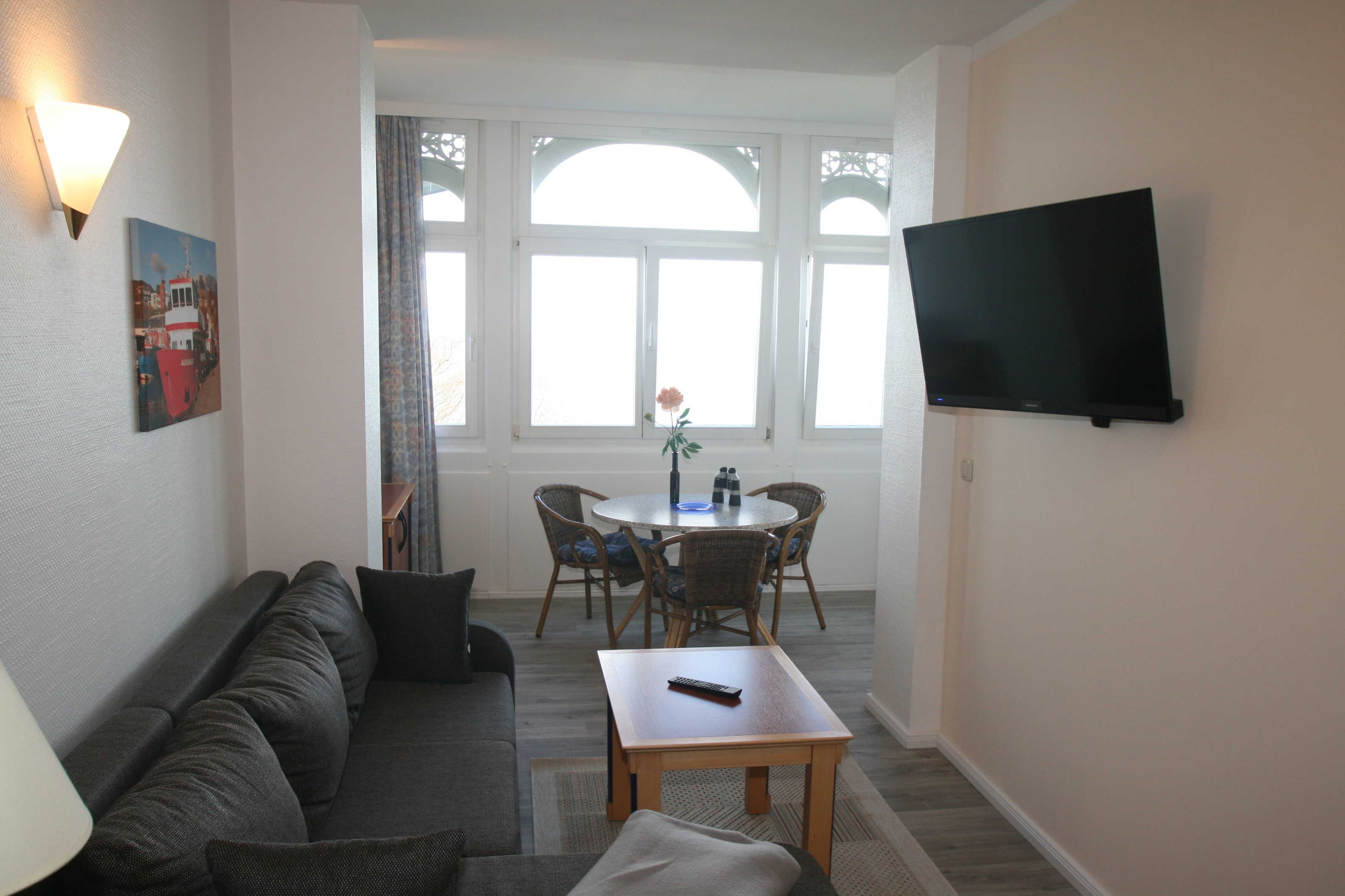 Das Appartement Granitz verfügt über einem Wohnzimmer mit einer komplett eingerichteten Einbauküche mit Eierkocher, Filterkaffemaschine, Kaffepadmaschine, Toaster, Wasserkocher, 4 Platten-Cerankochfeld, Backofen,Kühlschrank, Geschirrspülautomat, ausreichend Geschirr und Besteck, Salz und Pfeffer, Zucker, Geschirrtuch, u.v.m. .Sie finden bei ihrer Anreise auch diverse Getränke im Kühlschrank, die Sie gegen Entgeld gerne nutzen können.Im Wohnzimmer befindet sich ein Schreibtisch, eine gemütliche Wohnlandschaft, die dann auch für 2 Aufbettungen genutzt werden kann, einen grossen Flatscreen-TV und eine Multifunktionanlage, mit der Sie auch CD' s & DVD's abspielen können. Wir leihen Ihnen auch gerne eine DVD über die schöne Insel Rügen aus.