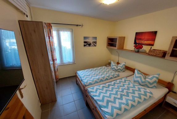 Unser Ferienbungalow ist ein kleines freistehendes Haus mit eigener Terrasse. Es hat ein Schlafzimmer mit einem Doppelbett (1,80x2,00m) , zwei Nachtschränkchen, einen grossen Kleiderschrank, einen Wohn- und Essbereich mit einer komplett eingerichteten Einbauküche mit Eierkocher, Kaffeevollautomat, Toaster, Wasserkocher, 4 Platten-Cerankochfeld, kleiner Backofen, Kühlschrank, Geschirrspülautomat, ausreichend Geschirr und Besteck, Salz und Pfeffer, Zucker, Geschirrtuch, u.v.m. .Sie finden bei ihrer Anreise auch diverse Getränke im Kühlschrank, die Sie gegen Entgeld gerne nutzen können.I