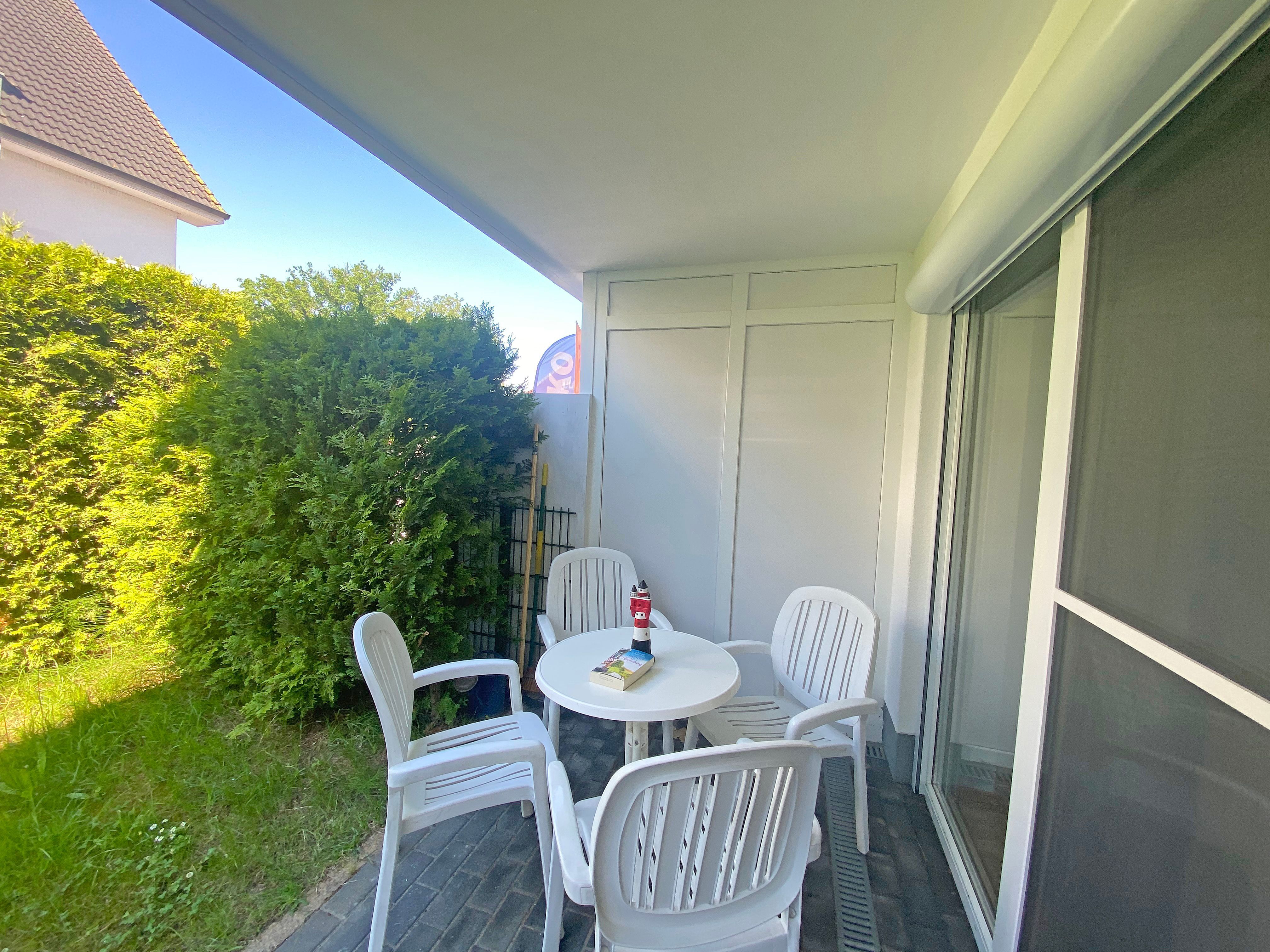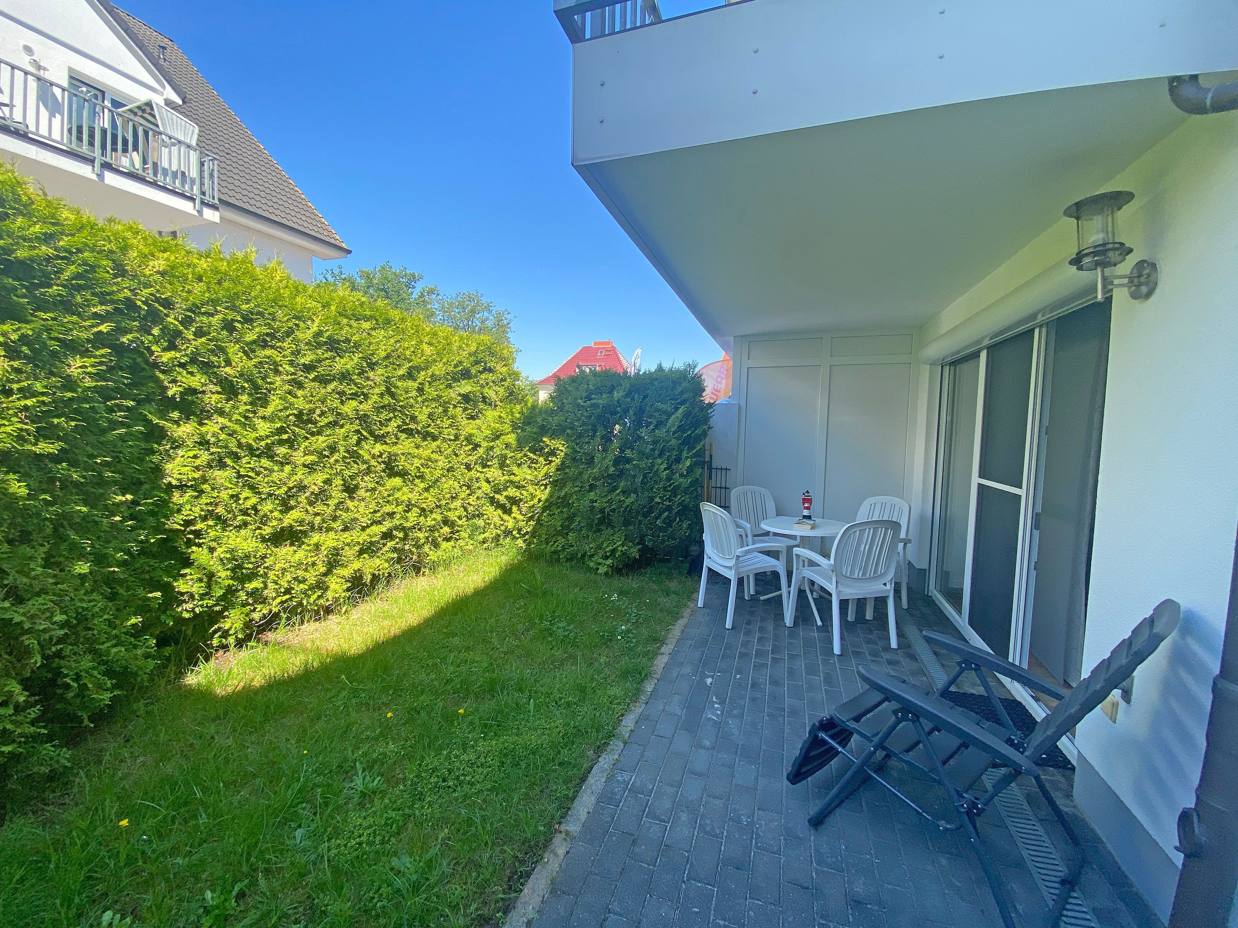 Die freundliche Nichtraucherferienwohnung Möwennest Nr. 02 liegt im Parterre, eines ruhigen, gepflegten Appartementhauses, an der Strandstraße im Ostseebad Baabe. Mit ca. 49 m² ist die Ferienwohnung ideal für 2 Personen und bis max. 4 Personen ausgelegt. Außerdem ist sie auch gut für ältere oder gehbehinderte Gäste geeignet, da sich vom Hauseingang bzw. Parkplatz bis in die Wohnung keine Stufen befinden. Der Fußboden ist komplett gefliest bzw. wurde Laminat verlegt. Die Wohnung ist in eine Diele, einem Wohn- und Essbereich, einer separaten Küche, Schlafzimmer, einem Duschbad und einer geräumigen Terrasse mit Grünfläche eingeteilt. Der Dielenbereich verfügt über eine Garderobe mit Schuhschrank und Spiegel. Vom Dielenbereich gelangen Sie durch eine Glastür in den offenen Wohn- und Essbereich, beginnend mit einem ausziehbaren Esstisch und 4 Stühlen sowie einem Sideboard. Hier können Sie in Ruhe Ihren nächsten Urlaubstag planen oder aber auch gesellige Spieleabende genießen. Der sich anschließende Wohnbereich ist mit einer großzügigen Eckcouch (mit wenigen Handgriffen haben Sie hier den 3. und 4. Schlafplatz, 1,50m x 2,30m), mit Couchtisch, einem Sessel, Leselampe sowie ein Bücherbord eingerichtet. Abgerundet wird der Wohnbereich durch eine Mini-Stereo-Anlage mit CD-Player + DAB-Radio sowie einem Smart-TV, Blu-Ray-Player sowie ergänzend durch geschmackvolle Accessoires und Bilder. Auch auf einen Internetanschluss (WLAN) müssen Sie im Urlaub nicht verzichten, dieser ist für Sie inklusive! Vom Essbereich aus kommen Sie direkt in die separate und komplett ausgestattete Küche, die mit Ceran-Kochfeld, Backofen, Geschirrspüler, Mikrowelle, Kühlschrank mit Eisfach, Kaffeemaschine, Wasserkocher, Toaster und anderen praktischen Helfern eingerichtet ist und keine Wünsche offen lassen. Das Schlafzimmer ist mit einem Doppelbett und verstellbaren Lattenrost (2 x 0,80 m x 2,00 m), Nachttischkonsolen mit Beleuchtung und einem geräumigen Kleiderschrank ausgestattet. Insektenschutztüren sowie elektrische Rollläden sorgen für eine geruhsame Nacht. Für den Wohn- und Schlafbereich stehen Ihnen zusätzlich elektrische Außenrollo´s zur Verfügung. Der Sanitärbereich mit Dusche, Waschplatz, WC, Handtuchheizkörper und Fön runden die Einrichtung ab. Vom Wohnbereich und vom Schlafzimmer kommen Sie direkt auf die geräumige und bestuhlte Terrasse (Süd/West). 1 Haustier ist gegen eine Gebühr ein gern gesehener Gast. Auch eine Liege lädt Sie direkt zum Relaxen ein. Ein eigener PKW-Stellplatz (Nr.02) befindet sich direkt am Haus. Die Erstausstattung eines Wäschepaketes (komplette Bettwäsche, 1 Duschhandtuch, 1 kleines Handtuch) können Sie bis 14 Tage vor Anreise gegen einen Aufpreis dazu buchen oder durch eigene ergänzen. Ab 2 gebuchten Paketen erhalten Sie einmalig 1 Geschirrhandtuch und 1 Duschvorleger hinzu.