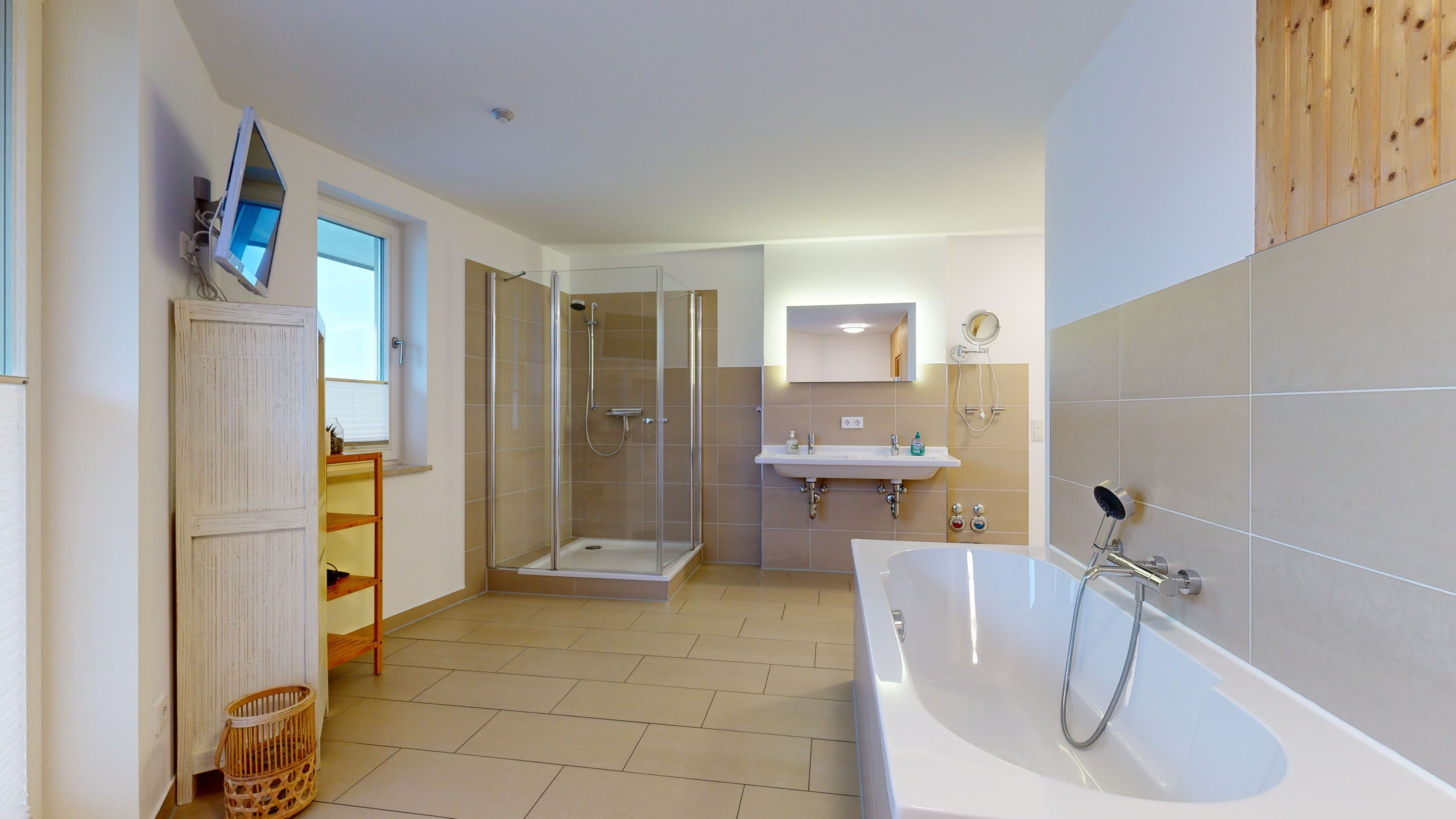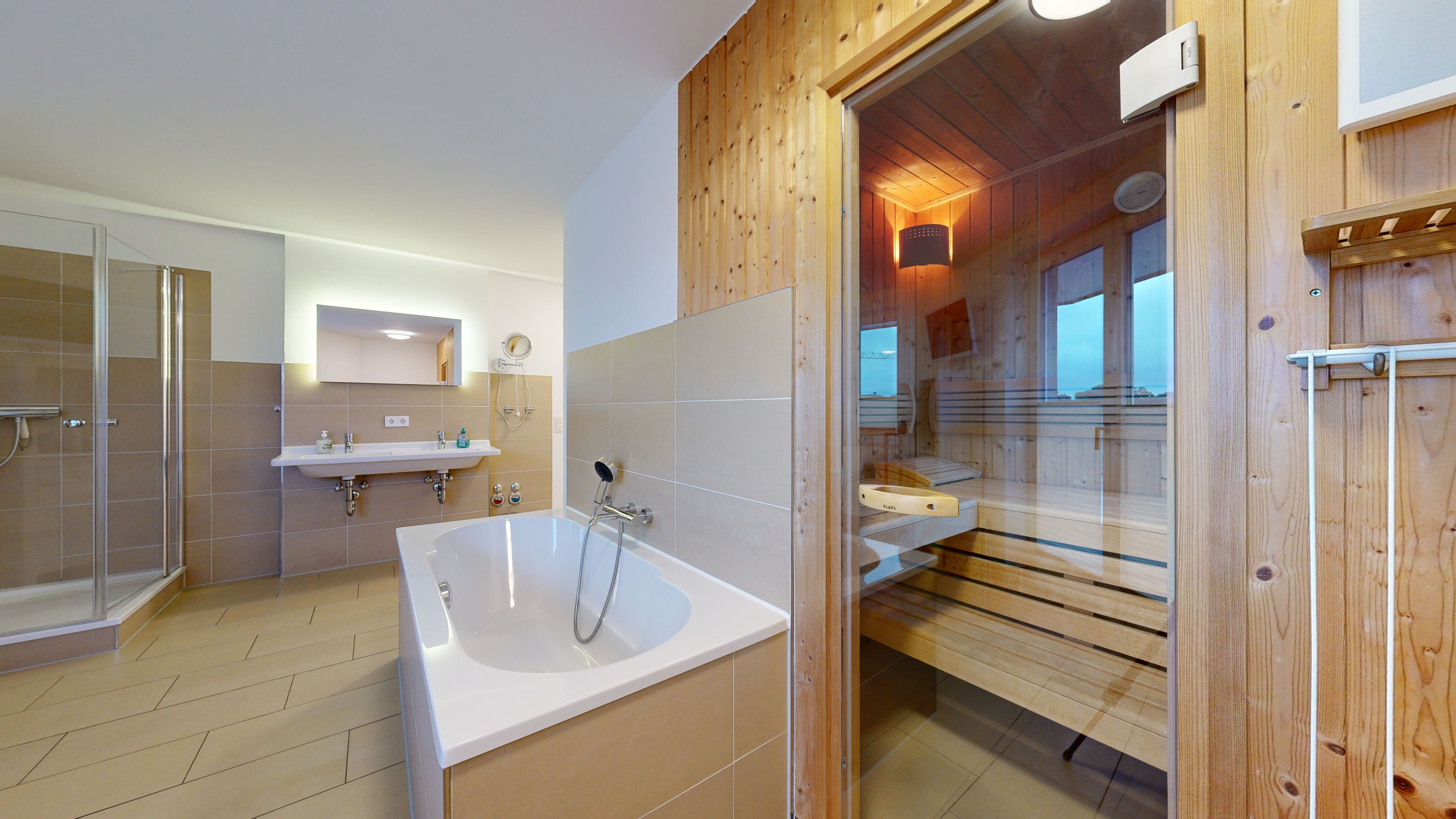 * 1 Badezimmer mit Dusche, Sauna, WC und Föhn