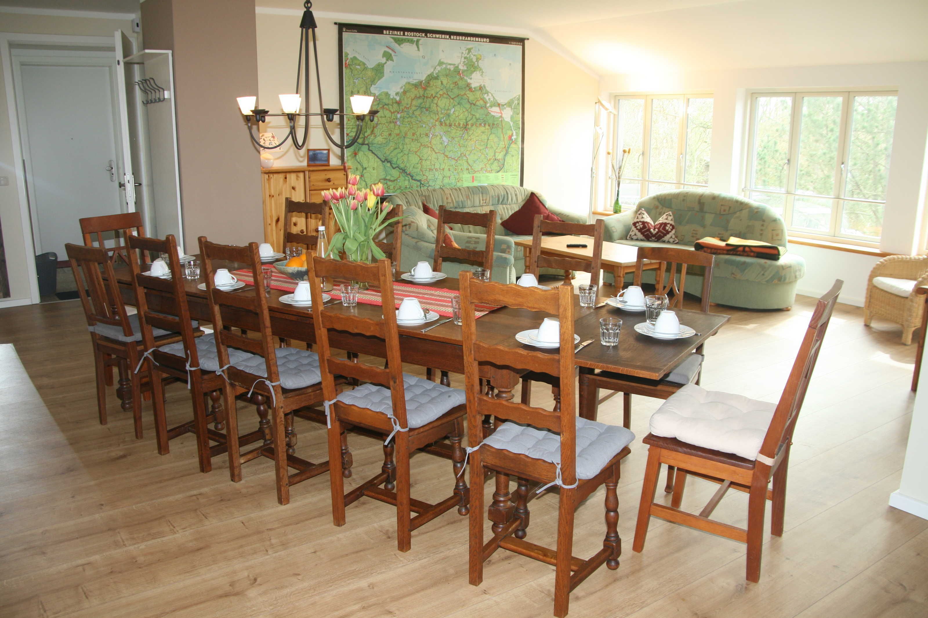 XL-Urlaub im Landhaus (200m², 5 Schlafräume, 2 Duschbäder, max. 12 Personen). Zwei benachbarte Fewos im Ober- und Dachgeschoss mit gemeinsamem Hauseingang im Landhaus kombiniert als XL-Unterkunft für Großfamilien und Kleingruppen: