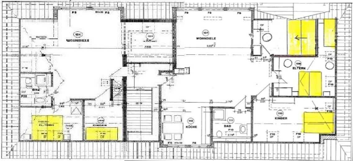 Fewo 3 - im Obergeschoss (110m²; 3 Schlafräume, max. 6 Pers.)