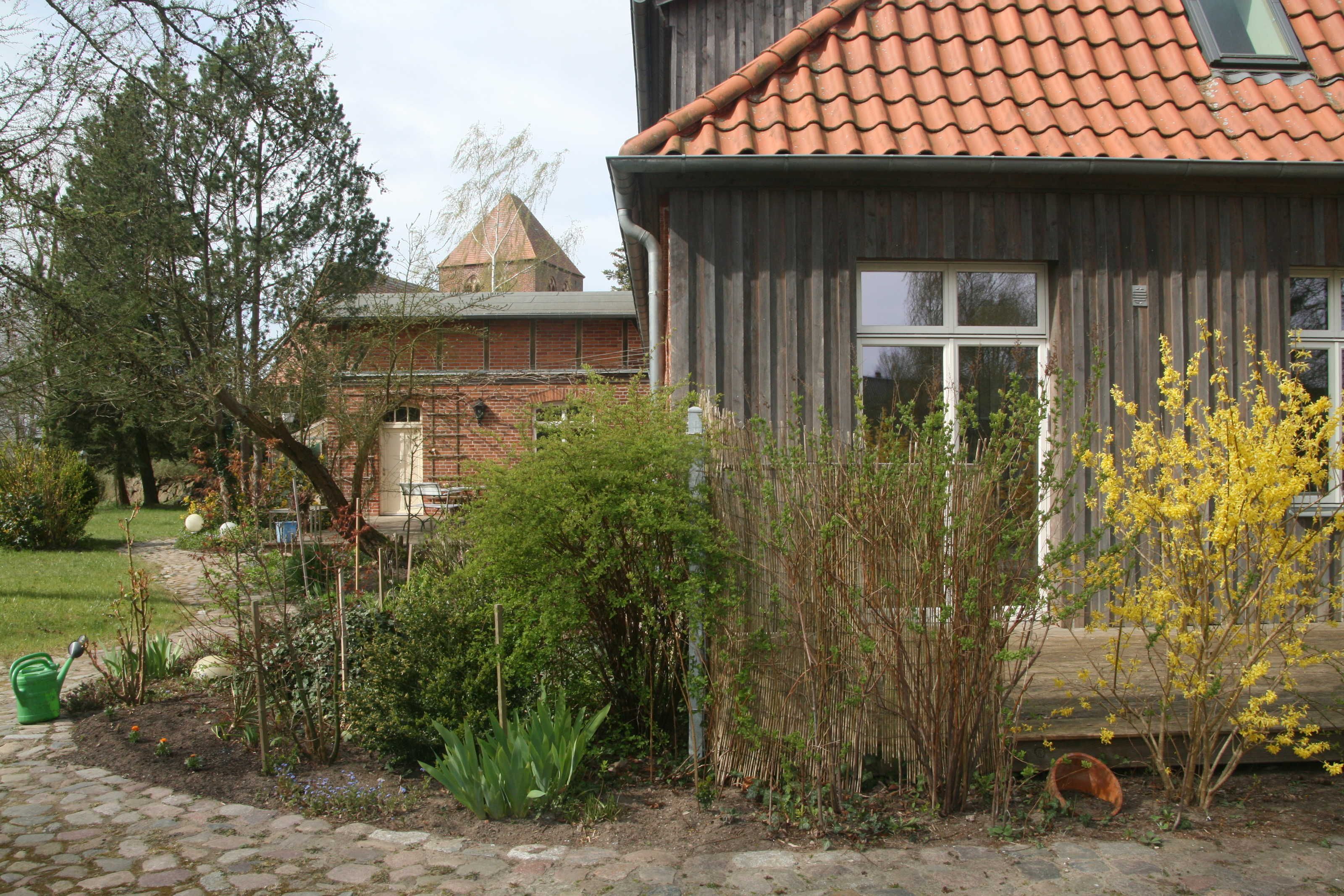 Vom gepflegten und naturbelassenen Gartengrundstück mit alten Bäumen gibts einen herrlichen Blick auf die Dorfkirche, Pferdekoppeln und Felder. Ein perfekter Ferientag klingt nach einer Radtour, einem Strandtag, einem Ausflug, Ausritt oder einer Wanderung entspannt und stressfrei aus.