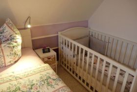 Die Wohnung verfügt über 2 Schlafzimmer, beide jeweils mit Doppelbett. In dem einen Schlafzimmer befinden sich außerdem ein Schreibtisch und ein massives Kinderbettchen. Hochstuhl und ein Babykostwärmer stehen auch bereit.