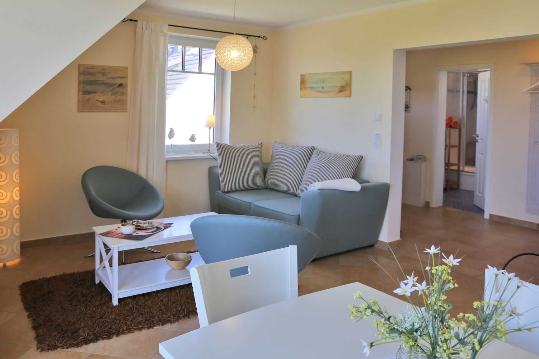 Diese exklusive 3-Raum Maisonette befindet sich nur 250 Meter vom wunderschönen Naturstrand entfernt und bietet Platz für bis zu 4 Personen. In der gesamten Wohnung finden Sie eine Fußbodenheizung. Bis zum Vitalpark mit Kinderspielplatz sind es nur 50m. Ein Backshop und einen Fahrradverleih sind auch gleich um die Ecke fußläufig erreichbar.  Der offene Wohnbereich mit Kamin und Kuschelecke sowie Essecke und Küche laden zum Verweilen ein. Die offene hochwertige Küche ist komplett ausgestattet mit Kühlschrank inkl. Gefrierfach, Mikrowelle, Spülmaschine, Herd inkl. Backofen sowie Kaffeemaschine und Toaster. Damit Sie sich wie zuhause fühlen, können sie wahlweise auf dem Balkon in Richtung Ostsee, oder dem Balkon auf der Südseite entspannen. Das große Bad mit Dusche und Badewanne verwandelt sich für Sie in eine Wohlfühloase. Über eine geradläufige Aussentreppe ist das Appartement im 1. OG erreichbar. Hier befindet sich das Schlafzimmer Nr. 01 mit einem großen Doppelbett. In der großzügigen Schlafgalerie (Schlafzimmer Nr. 02) im Dachgeschoss gibt es weitere 2 Einzelbetten. Für unsere kleinsten Gäste stellen wir kostenlos ein Reisebettchen sowie einen Kinderhochstuhl zur Verfügung. Ein PKW-Stellplatz befindet sich für Sie kostenfrei am Haus. Unsere Unterkunft ist für Monteure nicht geeignet.